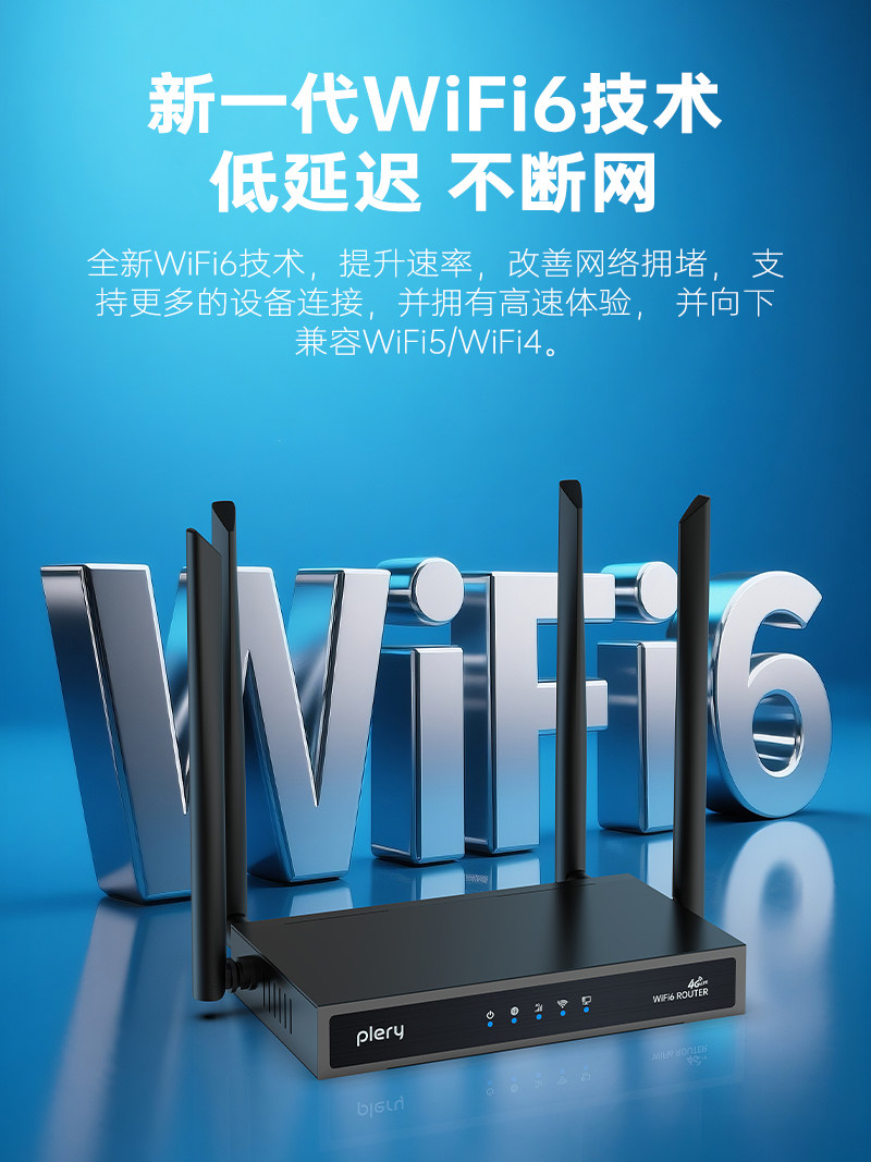 [Industrial-Grade 4 Network Ports] Plery R608 Can Support Sim Card 4g Wireless Router Cpe with Enhanced 6 Antennas, Wifi 6, Wall-Penetrating Signal, Compatible with China Unicom, China Telecom, China Mobile, China Broadcasting and Television, All-Network Sim Card Slot, Lte