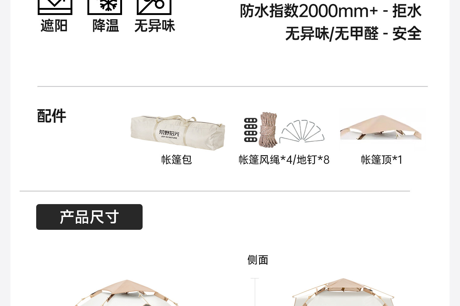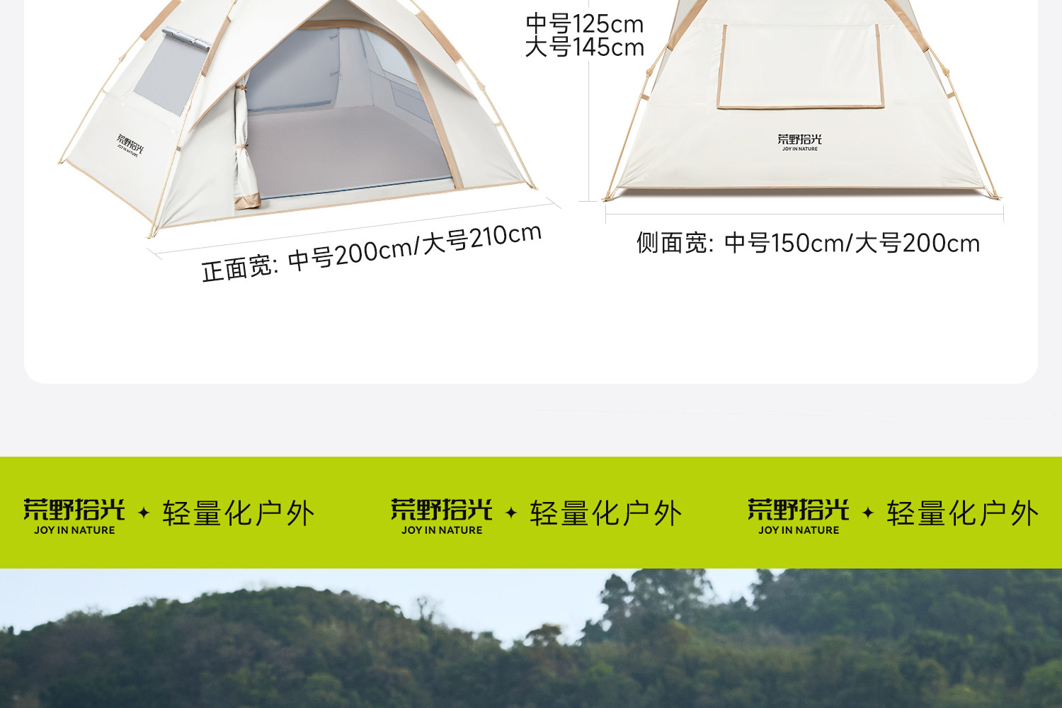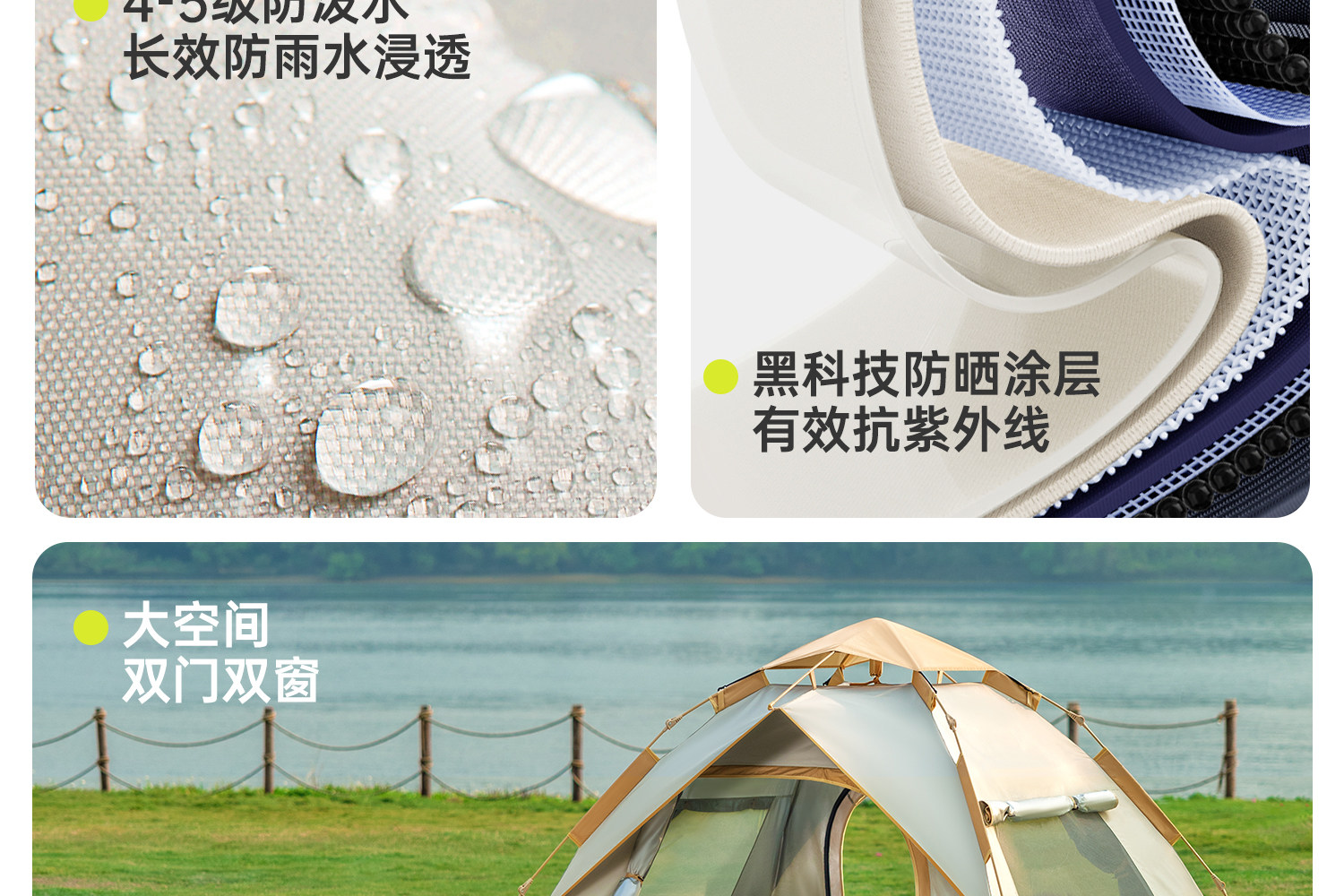 | Color Classification | Silver Glue[One Door and One Window]2-3 People,Silver Glue[One Door and One Window]2-3 People + Moisture-Proof Mat,✅Thickened Silver Glue✅Multi-Layer Protection✅Two Doors and Two Windows✅Healthy Material (Information Description Defaults to 2-3 People),Thickened Silver Glue[Two Doors and Two Windows]2-4 People,Thickened Silver Glue[Two Doors and Two Windows]2-4 People + Moisture-Proof Mat,Thickened Silver Glue[Two Doors and Two Windows]2-4 People + Picnic Mat + Moisture-Proof Mat,Thickened Silver Glue[Two Doors and Two Windows]2-4 People + Thickened Inflatable Bed + Camping Light + Moisture-Proof Mat,Thickened Silver Glue[Two Doors and Two Windows]5-6 People,Thickened Silver Glue[Two Doors and Two Windows]5-6 People + Moisture-Proof Mat,Thickened Silver Glue[Two Doors and Two Windows]5-6 People + Picnic Mat + Moisture-Proof Mat,Thickened Silver Glue[Two Doors and Two Windows]5-6 People + Thickened Inflatable Bed + Camping Light + Moisture-Proof Mat,[Comfortable Picnic Set]Thickened 3cm Automatic Air Mattress + Picnic Mat + Moisture-Proof Mat,[Light Travel Kit]Moon Chair X 2 + Camping Cart (with Tabletop) + Picnic Blanket + Moisture-Proof Mat,[Exquisite Sun Protection Set]Canopy + Moon Chair*2 + Camping Cart (Including Table) + Picnic Mat + Moisture-Proof Mat,New Color★Thickened Silver Glue[Two Doors and Two Windows]2-4 People + Moisture-Proof Mat,New Color★Thickened Silver Glue[Two Doors and Two Windows]5-6 People + Moisture-Proof Mat,←Shopping Guide[The Difference between Silver Glue and Vinyl],Vinyl Reinforced Sun Protection[Two Doors and Two Windows]2-4 People + Moisture-Proof Mat,Vinyl Reinforced Sun Protection[Two Doors and Two Windows]2-4 People + Picnic Mat + Moisture-Proof Mat,Vinyl Reinforced Sun Protection[Two Doors and Two Windows]2-4 People + Thickened Inflatable Bed + Camping Light + Moisture-Proof Mat,Vinyl Reinforced Sun Protection[Two Doors and Two Windows]5-6 People + Moisture-Proof Mat,Vinyl Reinforced Sun Protection[Two Doors and Two Windows]5-6 People + Picnic Mat + Moisture-Proof Mat,Vinyl Reinforced Sun Protection[Two Doors and Two Windows]5-6 People + Thickened Inflatable Bed + Camping Light + Moisture-Proof Mat,[Comfortable Sun Protection Suit]Thickened 3cm Automatic Air Mattress + Picnic Mat + Moisture-Proof Mat,[Lightweight Sun Protection Set]Moon Chair X 2 + Camping Cart (with Tabletop) + Picnic Blanket + Moisture-Proof Mat,[Exquisite Sun Protection Set]Canopy + Moon Chair*2 + Camping Cart (Including Table) + Picnic Mat + Moisture-Proof Mat.,Rainproof Model-Vinyl Quicksand Gold[Double Layer Quick Opening]5-6 People + Moisture-Proof Mat,Rainproof Model-Vinyl Quicksand Gold[Double Layer Quick Opening]5-6 People + Automatic Air Mattress + Camping Light + Moisture-Proof Mat,Getting Started[Free to Open Quickly]Fully Blackout Vinyl for 2~4 People (Comes with Thickened Dirt-Proof Mat),Picnic Set[Free to Open Quickly]Fully Blackout Vinyl for 2~4 People (Comes with Thickened Dirt-Proof Mat),⭐️Overnight Kit[Free to Open Quickly]Fully Blackout Vinyl for 2~4 People (Comes with Thickened Dirt-Proof Mat),Comfort Enlarged[Insulated and Ventilated]Fully Blackout Vinyl for 4~5 People (Comes with Thickened Dirt-Proof Mat),Picnic Set[Insulated and Ventilated]Fully Blackout Vinyl for 4~5 People (Comes with Thickened Dirt-Proof Mat),⭐️Overnight Kit[Insulated and Ventilated]Fully Blackout Vinyl for 4~5 People (Comes with Thickened Dirt-Proof Mat),✅Double Layer Rainproof✅Strengthen Sun Protection✅Two Doors and Two Windows✅Double-Layer Tents Can Be Used Separately.,Upgraded Rainproof[Double Layer Protection]Fully Blackout Vinyl for 4~5 People (Comes with Thickened Dirt-Proof Mat),Picnic Set[Double Layer Protection]Fully Blackout Vinyl for 4~5 People (Comes with Thickened Dirt-Proof Mat),⭐️Overnight Kit[Double Layer Protection]Fully Blackout Vinyl for 4~5 People (Comes with Thickened Dirt-Proof Mat) |