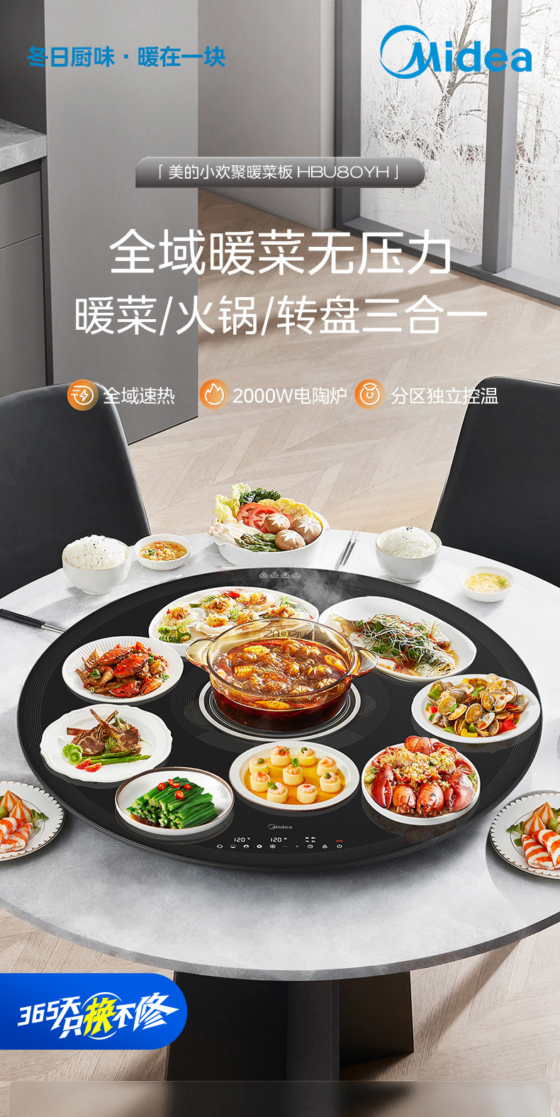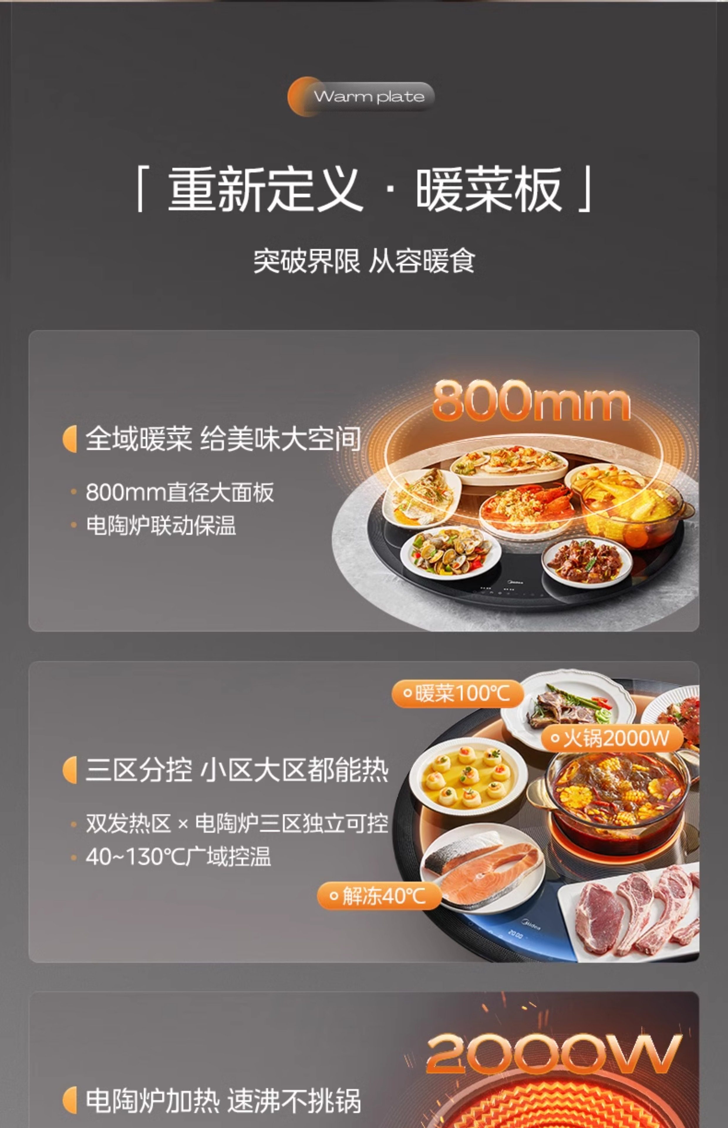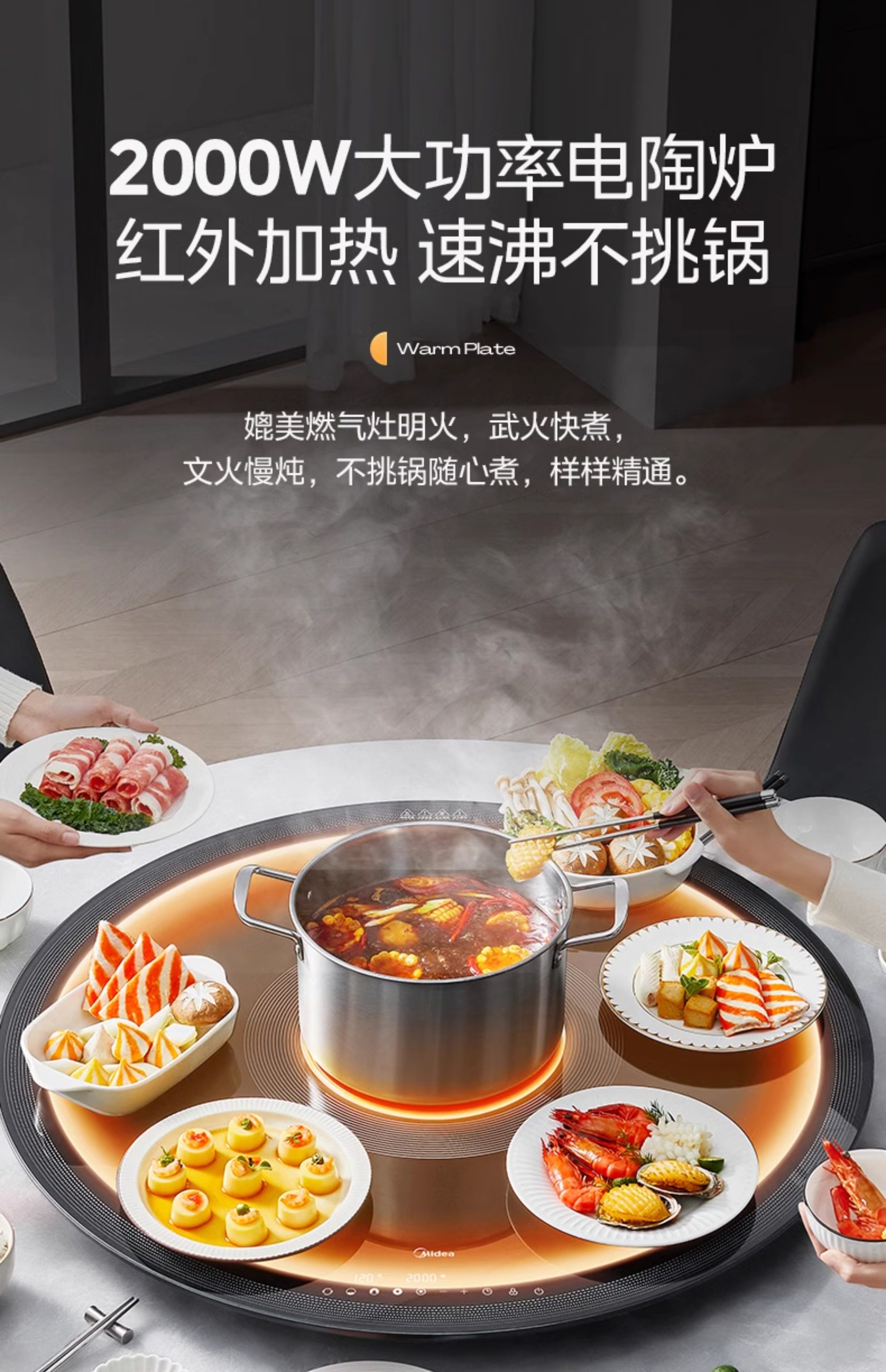Midea Warming Plate for Home Use, Multifunctional Heating and Insulation Food Warmer, Electric Rotating Plate with Hot Pot, 2025 New Model