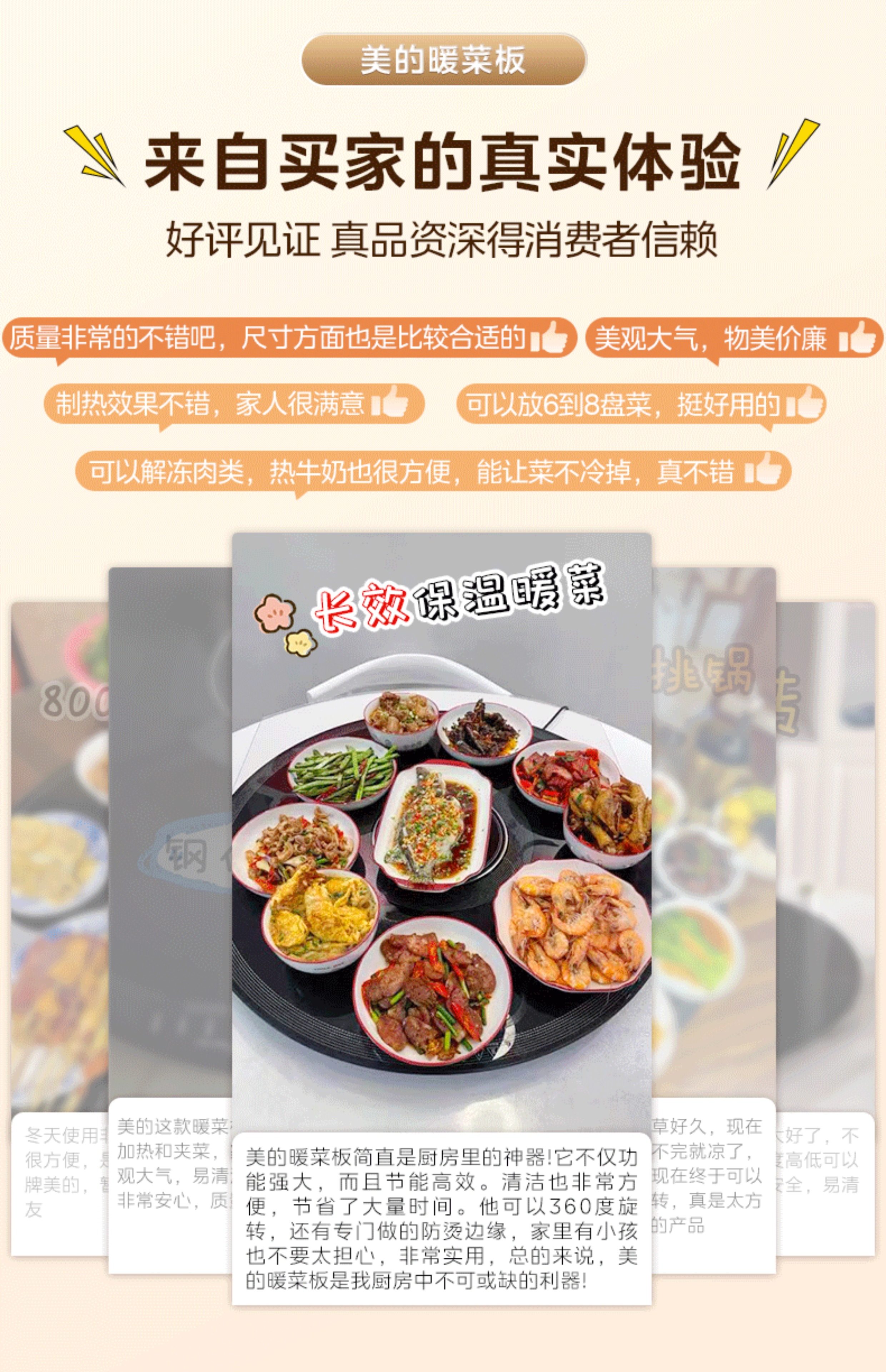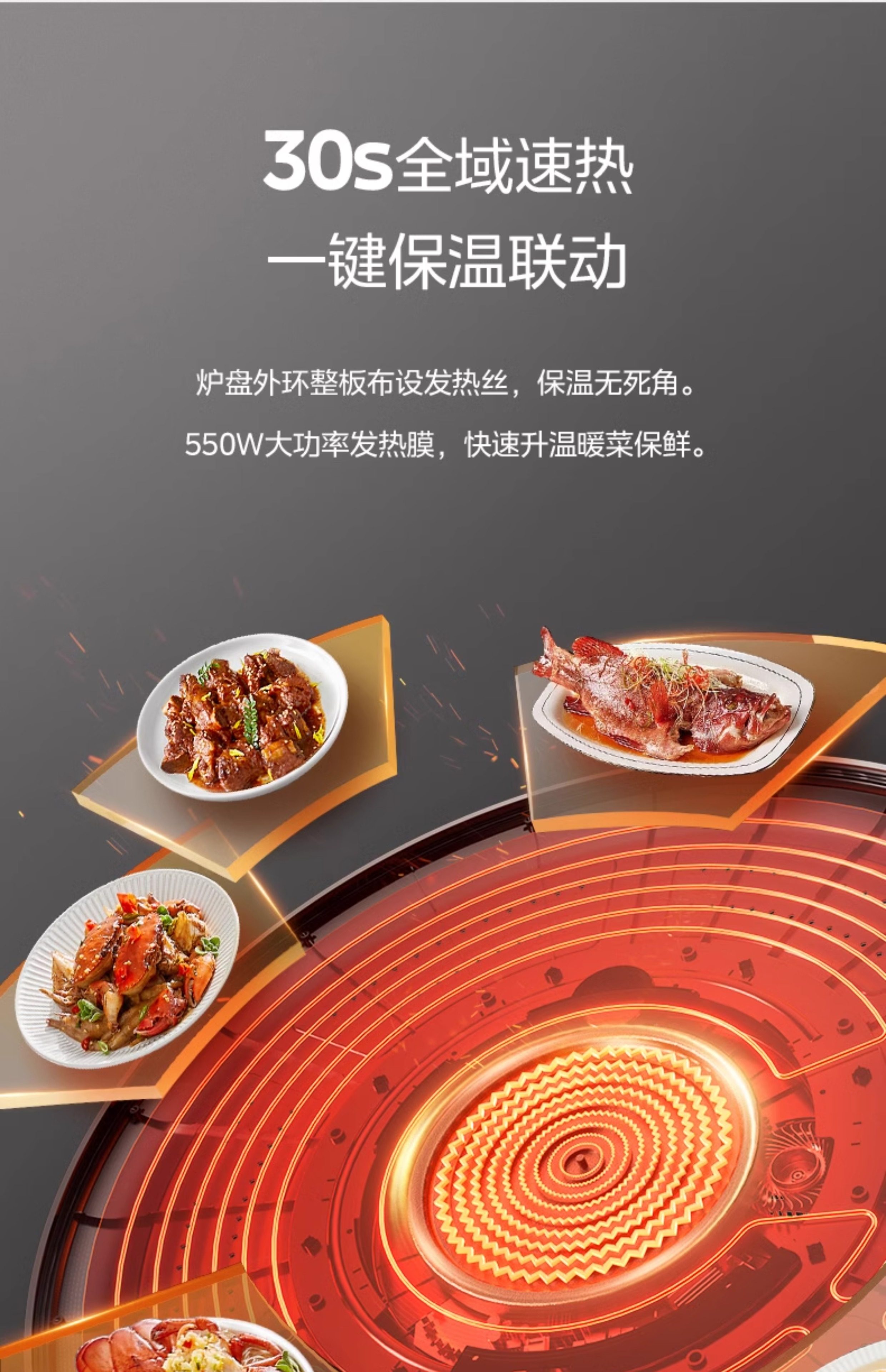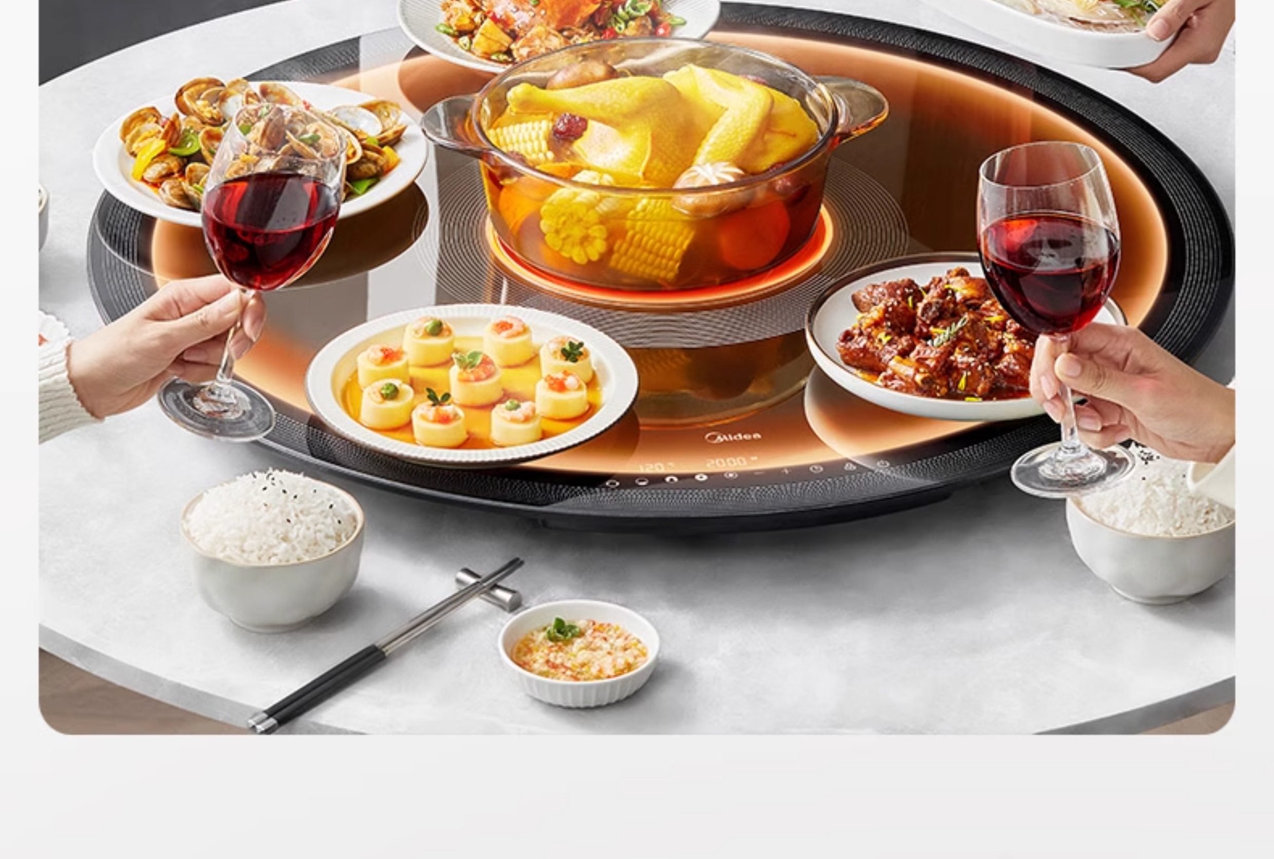 Midea Warming Plate for Home Use, Multifunctional Heating and Insulation Food Warmer, Electric Rotating Plate with Hot Pot, 2025 New Model