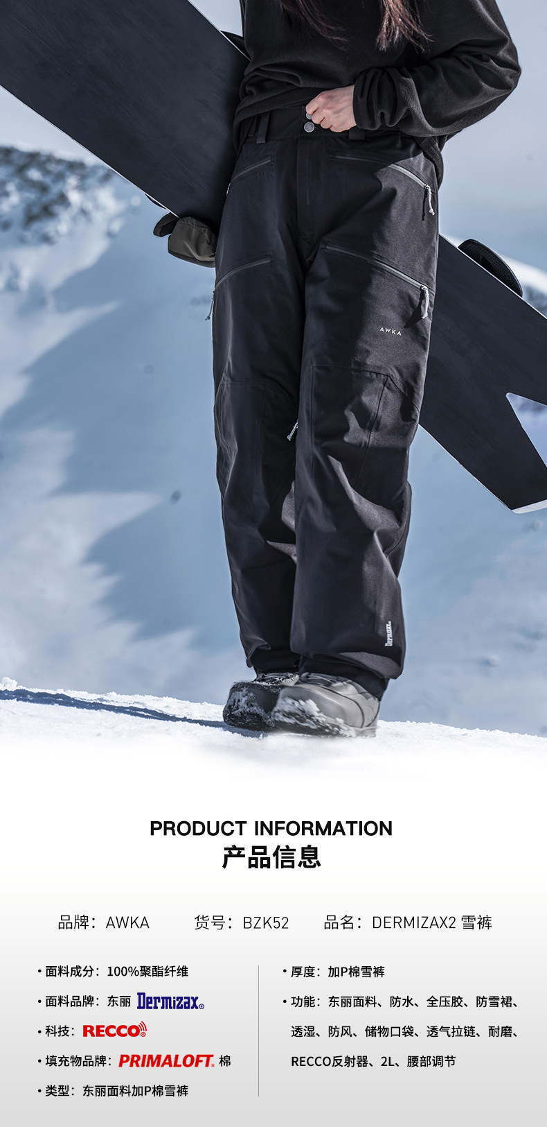 Awka Snowboarding Pants for Women 2025 New Men's Professional Waterproof, Windproof, Snowproof, Cold-Proof, Quilted Warm Pants