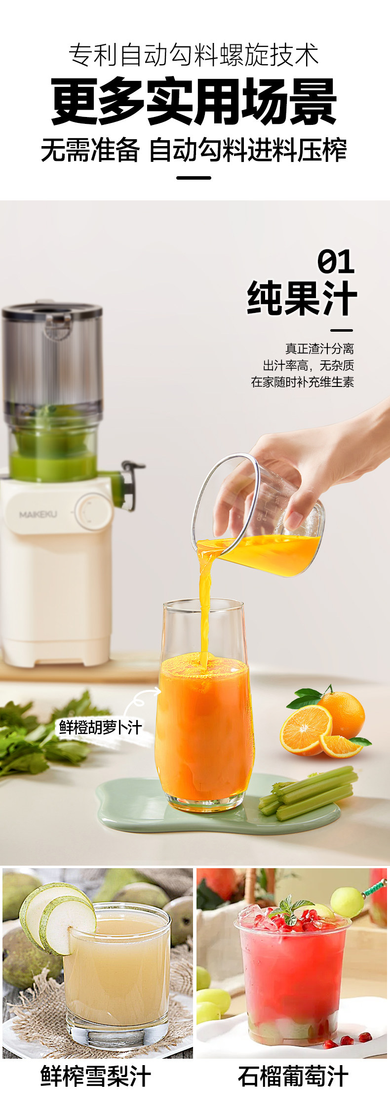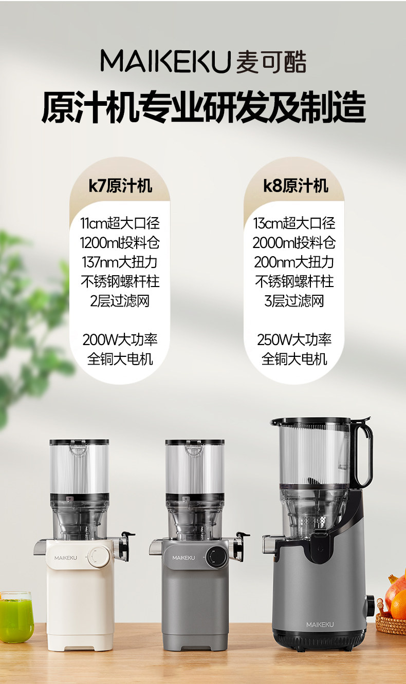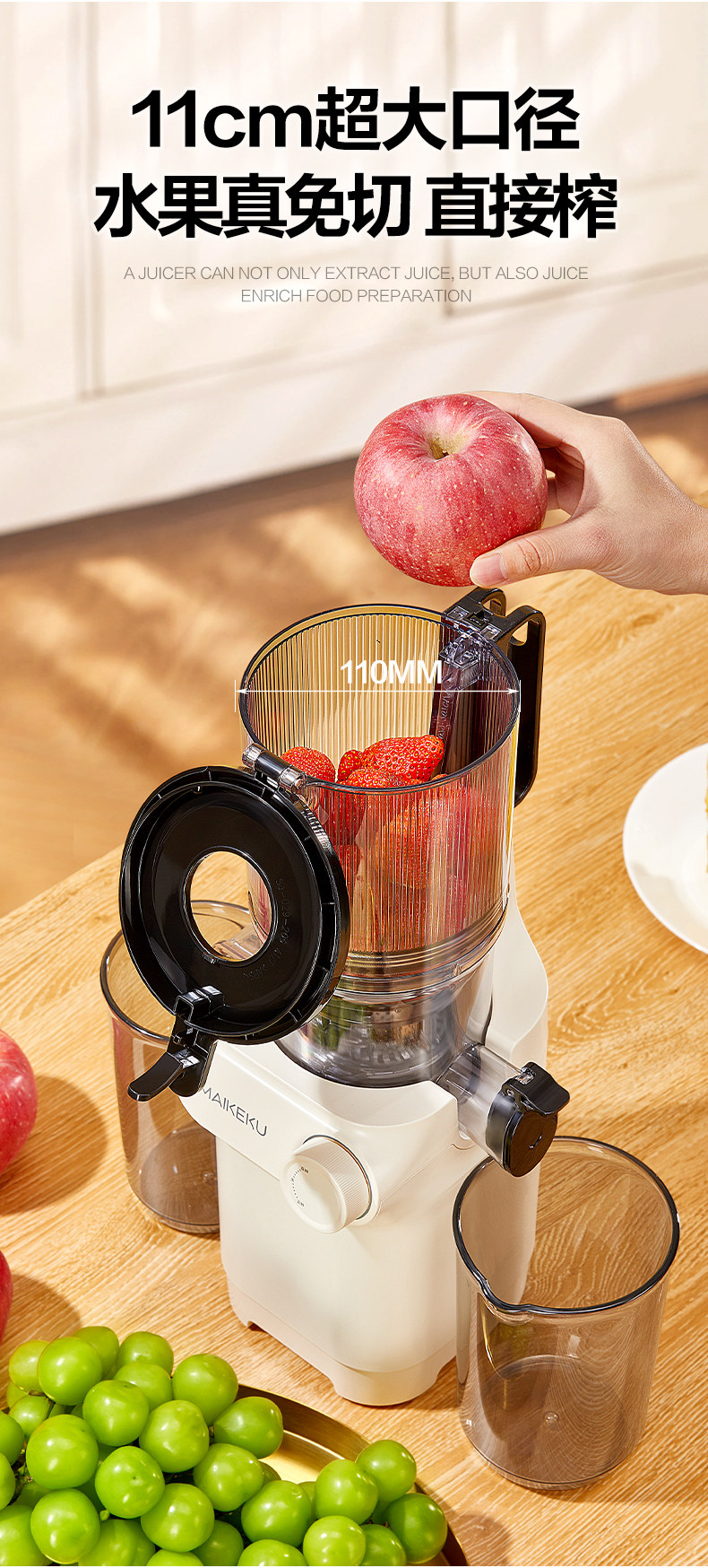Michael Cool Juicer, Pulp Separation, Original Juice Machine, Household Automatic Pulp Juice Separator, Slow Grinding, Large-Caliber Juicer, No Need to Cut