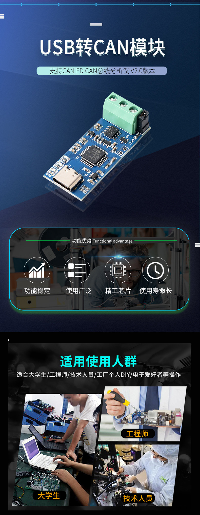 USB to Can Module Supports Can Fd Can Bus Analyzer V2.0 Version