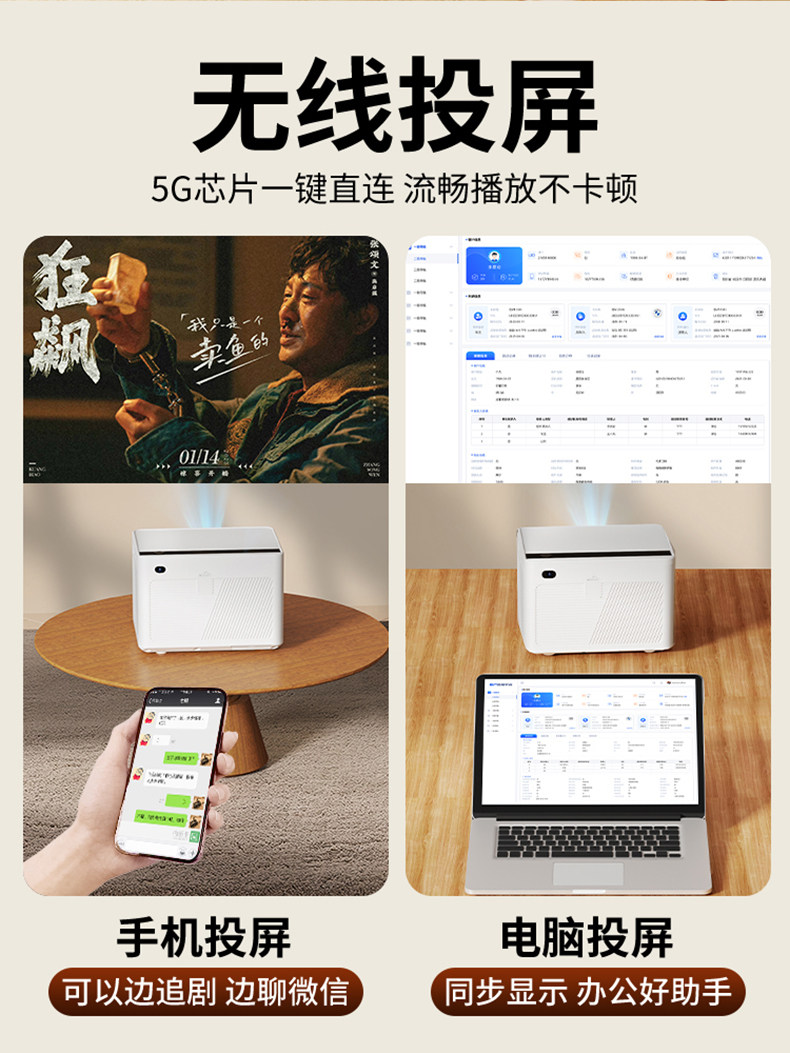 2026 New Model Projector for Home Use, Ultra-High Definition, Wireless Wifi, Can Project on Ceiling, Compatible with Mobile Phones, Universal Projection on White Walls, Home Theater, 4K Decoding, Small Mini 5g Projector for Bedroom, Student Dormitory