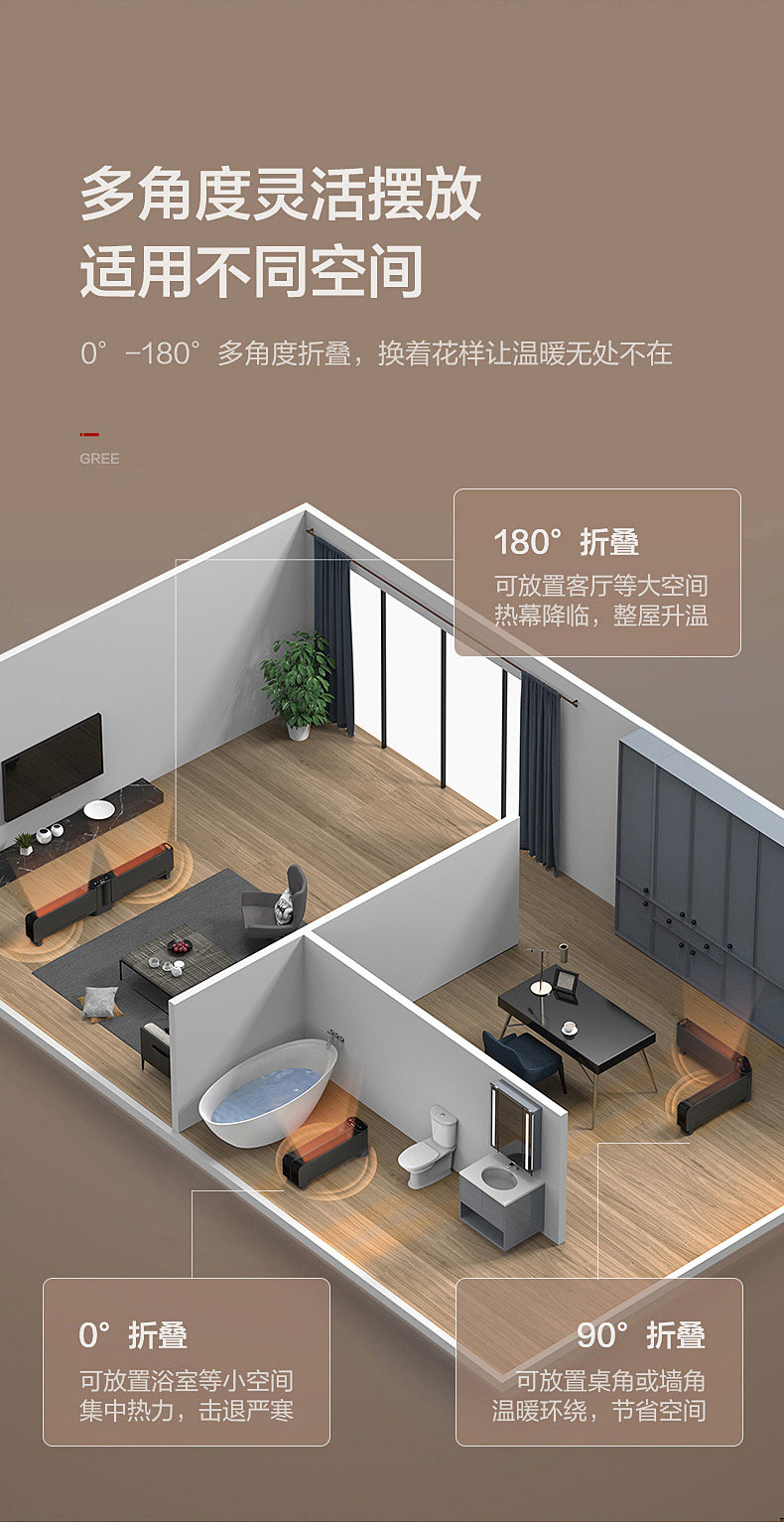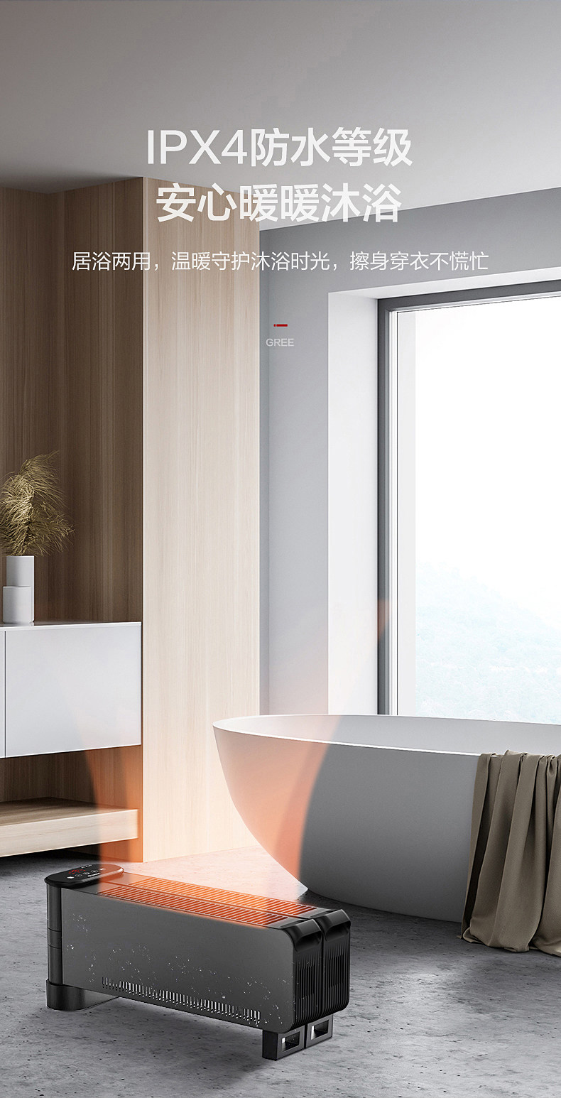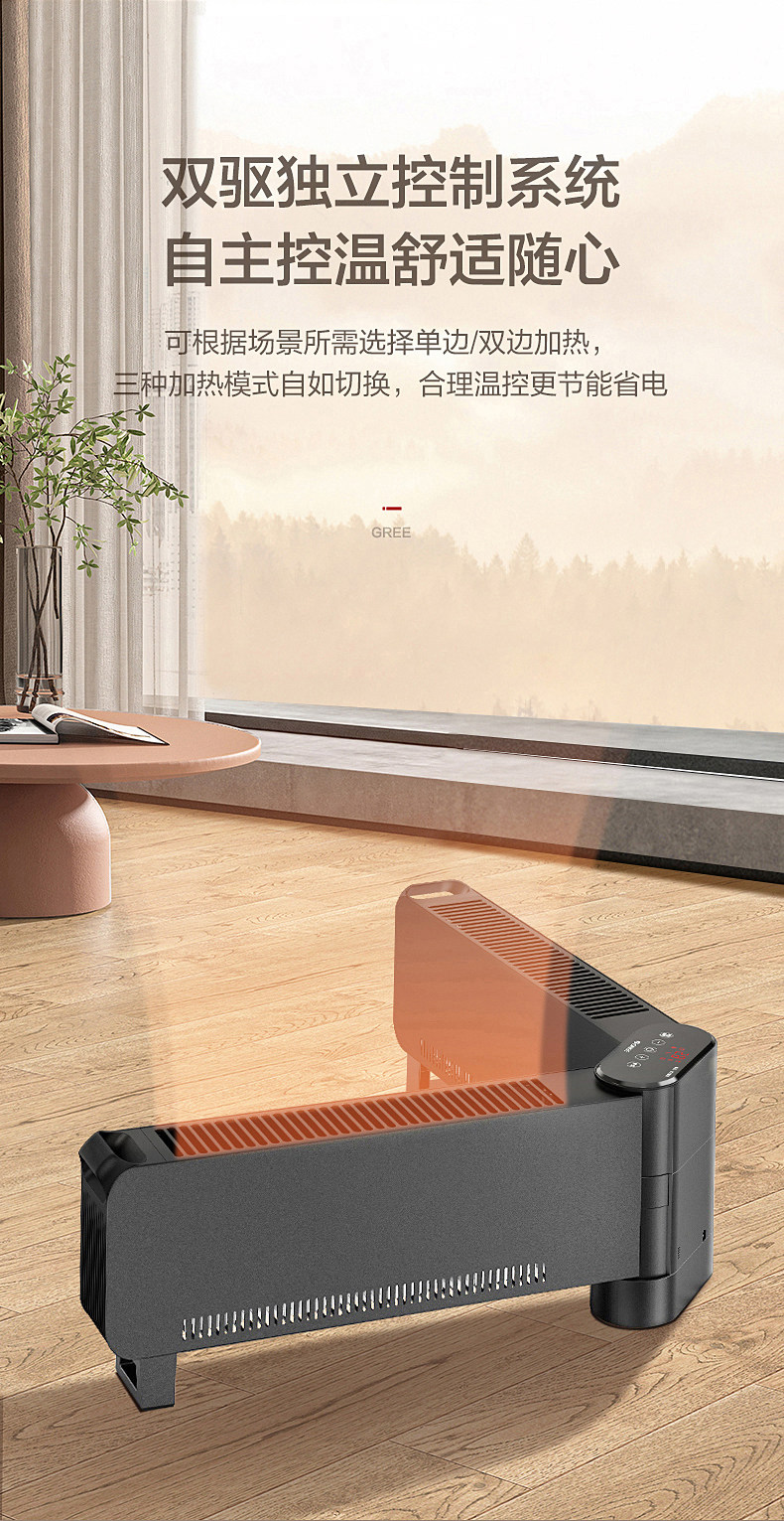 Gree Graphene Baseboard Heater for Home Use in Bedrooms, Foldable, Large Area Heating, Waterproof, Fast Heating, Energy-Saving Fan Heater