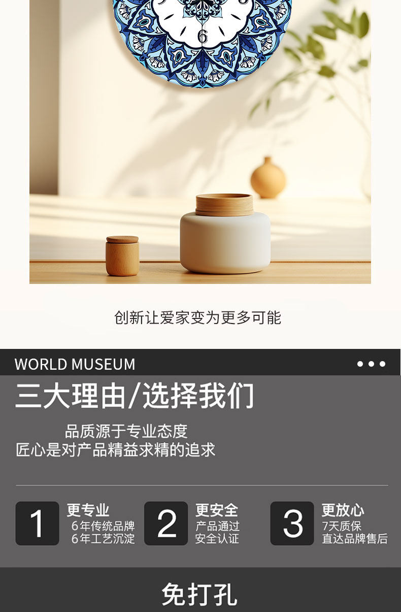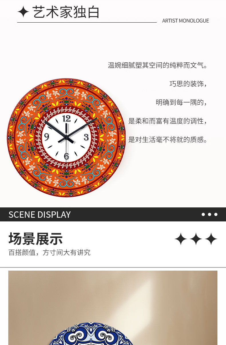 Dunhuang Decorative Wall Hanging Creative No-Drill Glass Clock Wall Clock for Bedroom and Living Room 2026 Model Simple Home Clock
