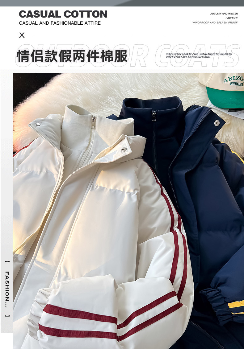 Tangshi Group Desso Fake Two-Piece American-Style Cotton Coat for Women, New Winter Thickened Cotton Jacket, Loose Cotton Padded Jacket, Trendy Brand