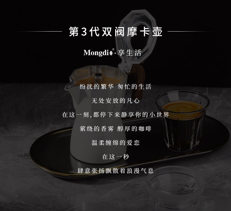 Mongdio Third-Generation Double-Valve Moka Pot for Making Coffee, Small Household Moka Coffee Pot, Espresso Machine
