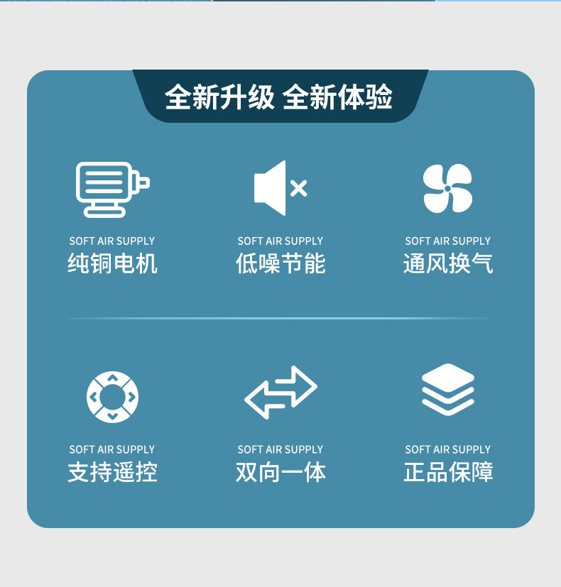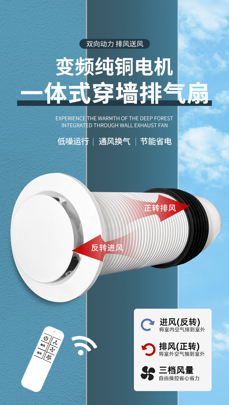 Wall-Mounted Integrated Exhaust Fan for Home Bathroom, Two-Way Ventilation Fan, Powerful and Quiet Wall-Mounted Fresh Air Fan