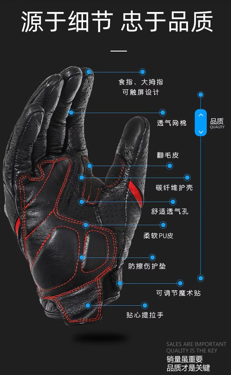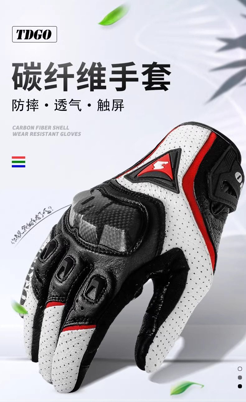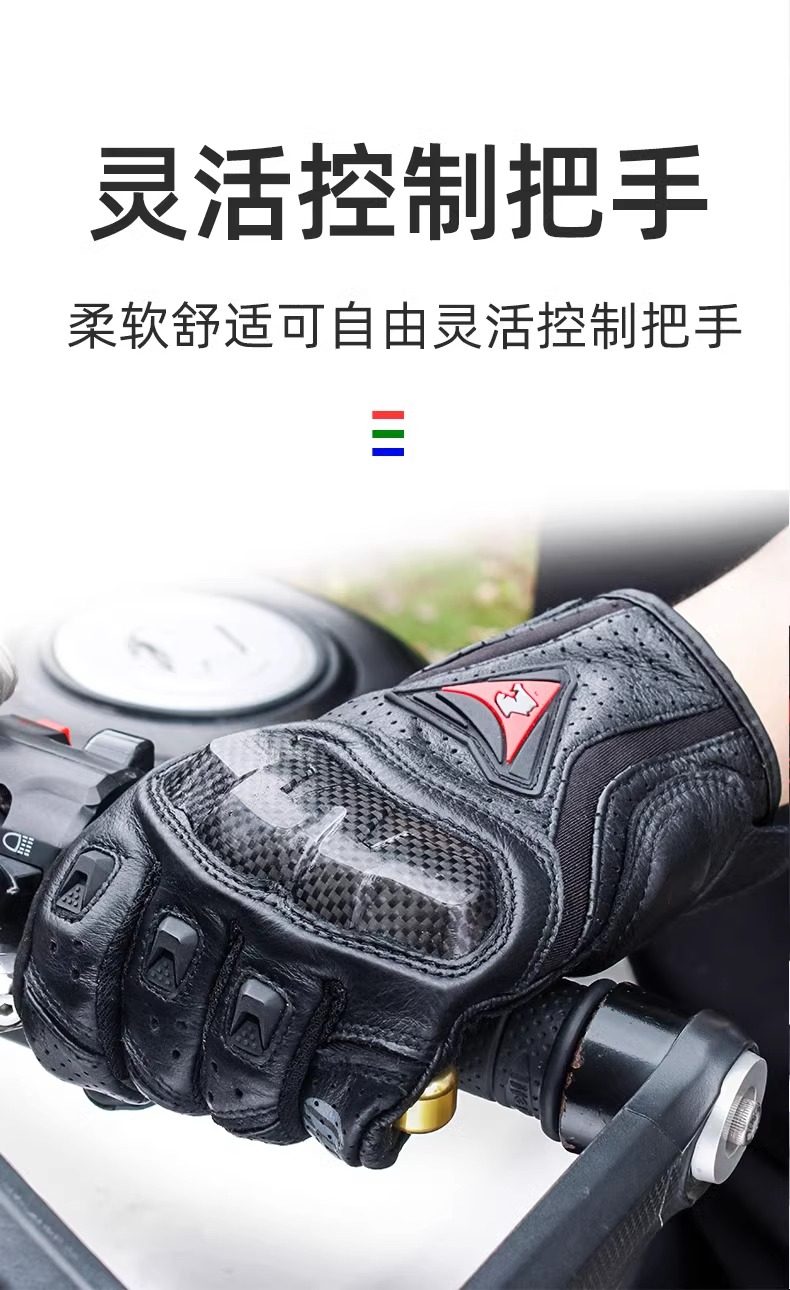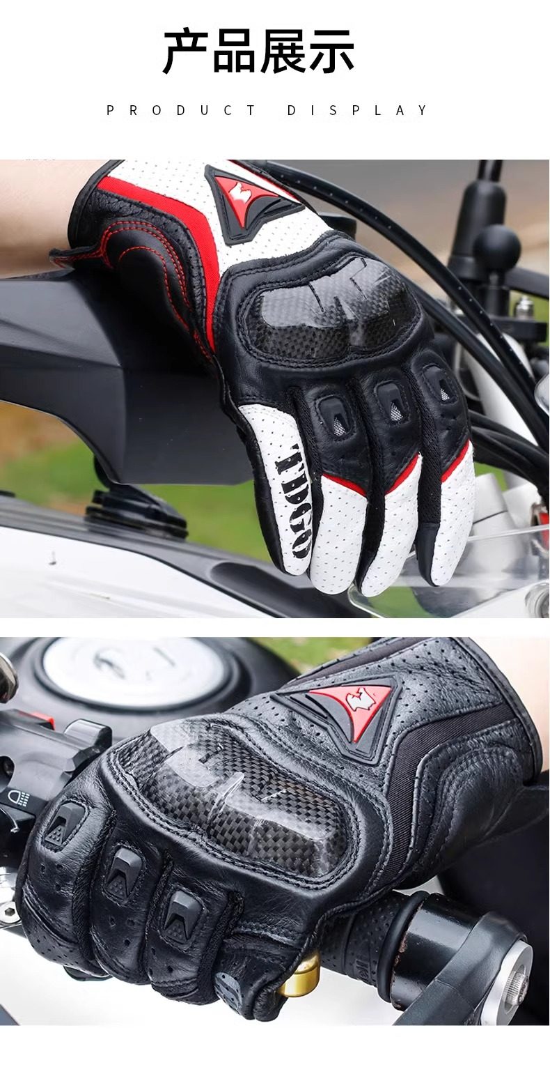 Motorcycle Summer Riding Full-Finger Gloves, Carbon Fiber Motorcycle Touring Breathable Anti-Fall Gear for Men and Women, Suitable for All Seasons