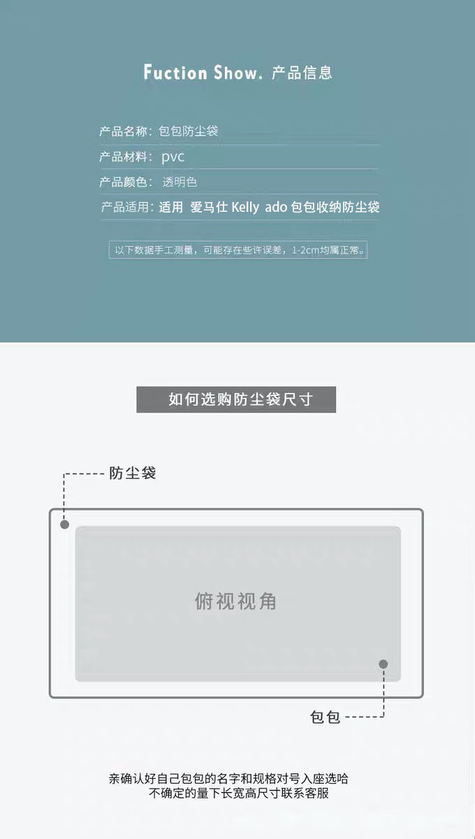 Suitable for Hermès Kelly Ado 22 26 Dustproof Bag, Bag Protective Cover, Moisture-Proof Transparent Storage Bag