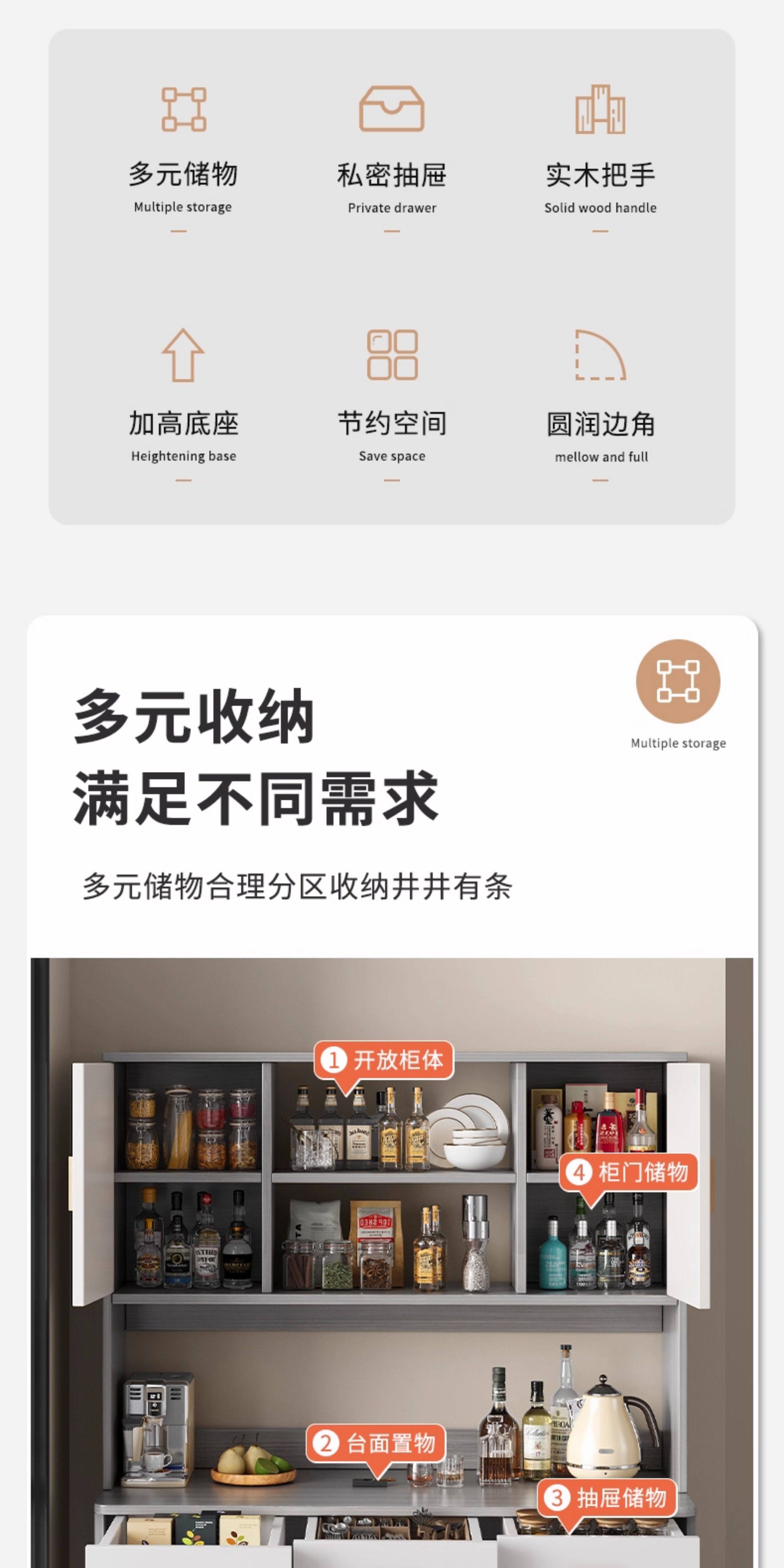 Living Room Sideboard Against the Wall, Integrated Small Apartment Storage Cabinet, Kitchen Multi-Functional Storage Rack, Cabinet, Wine Cabinet, Tea Cabinet