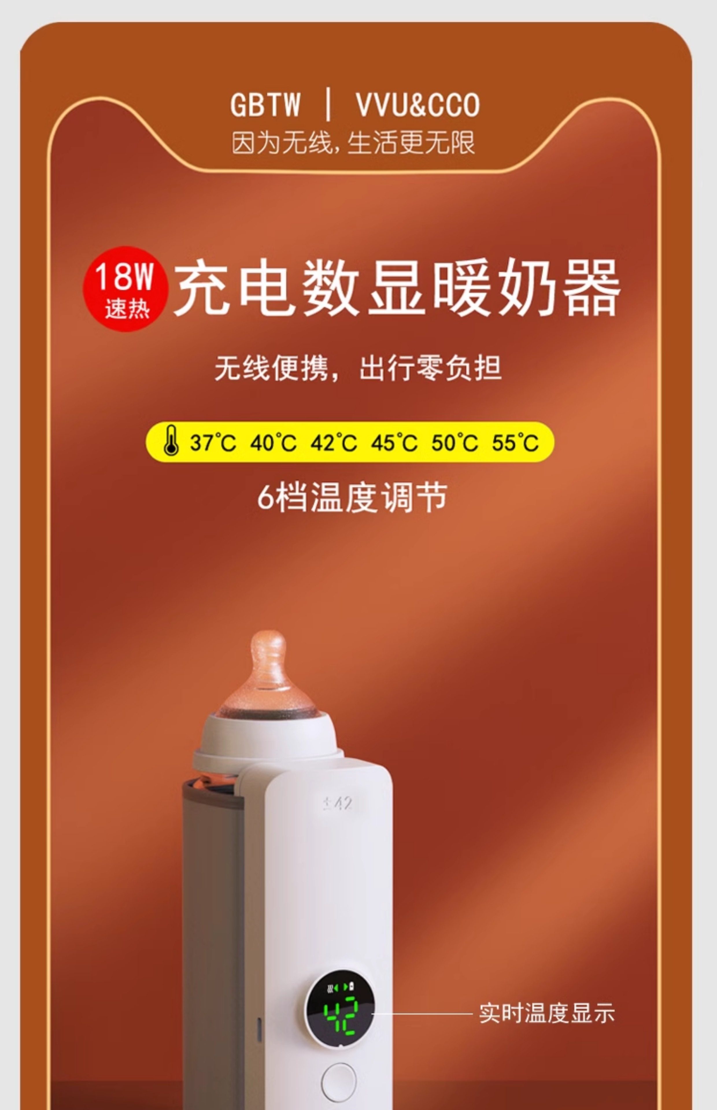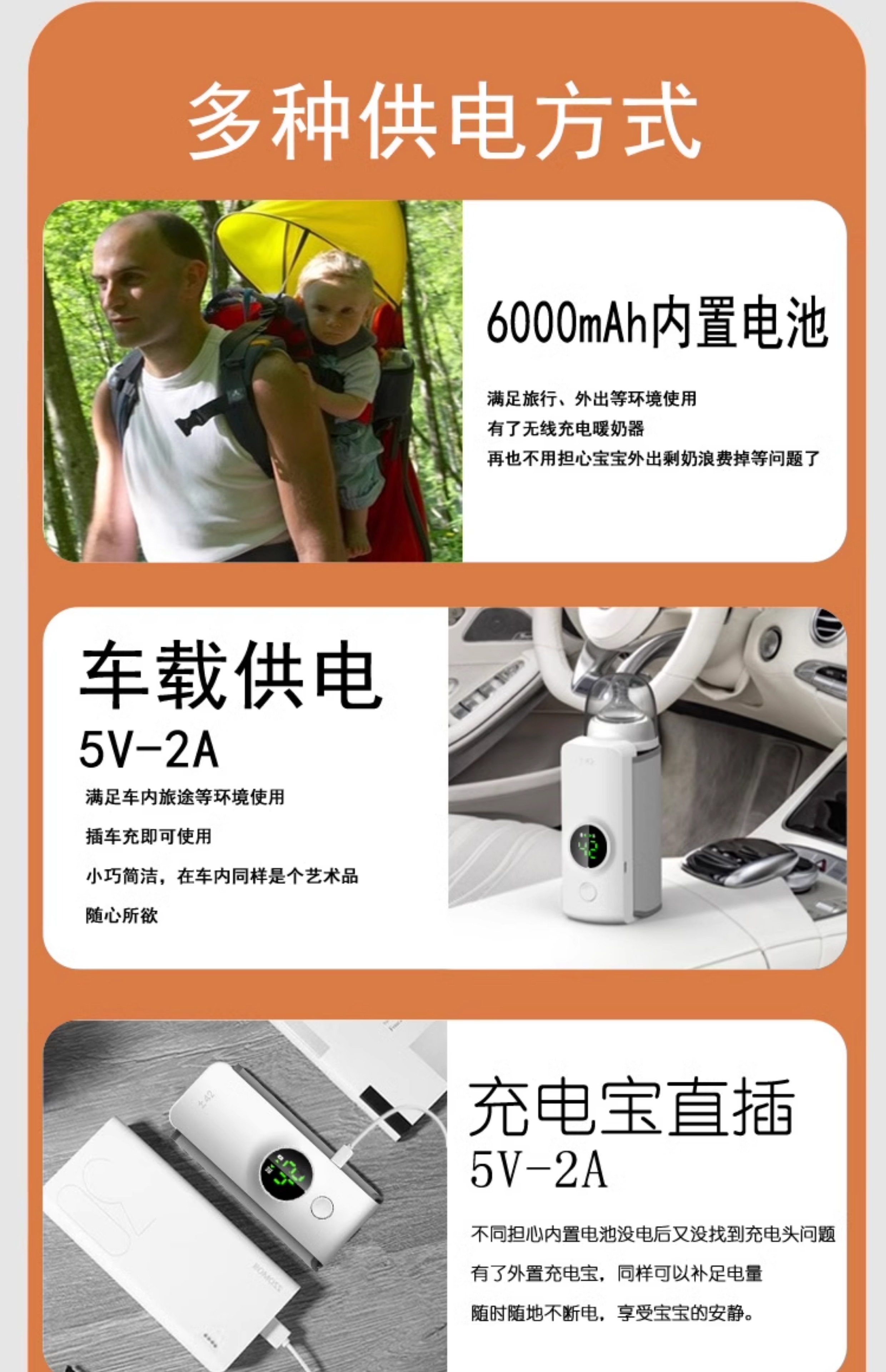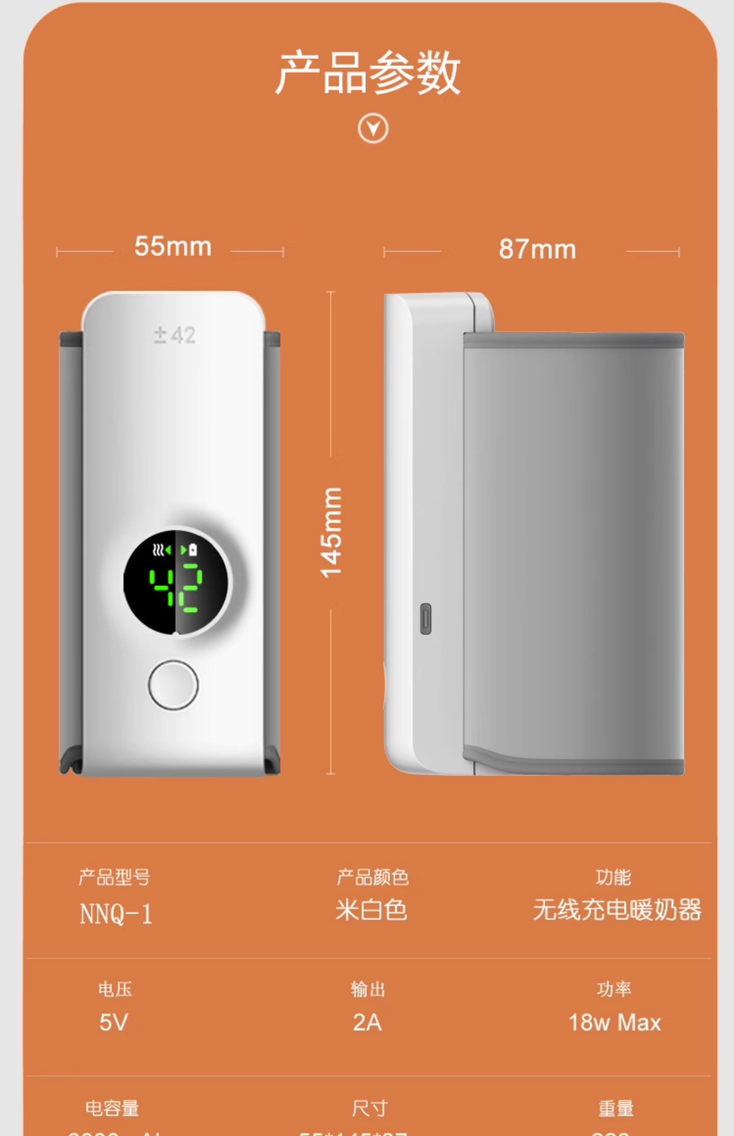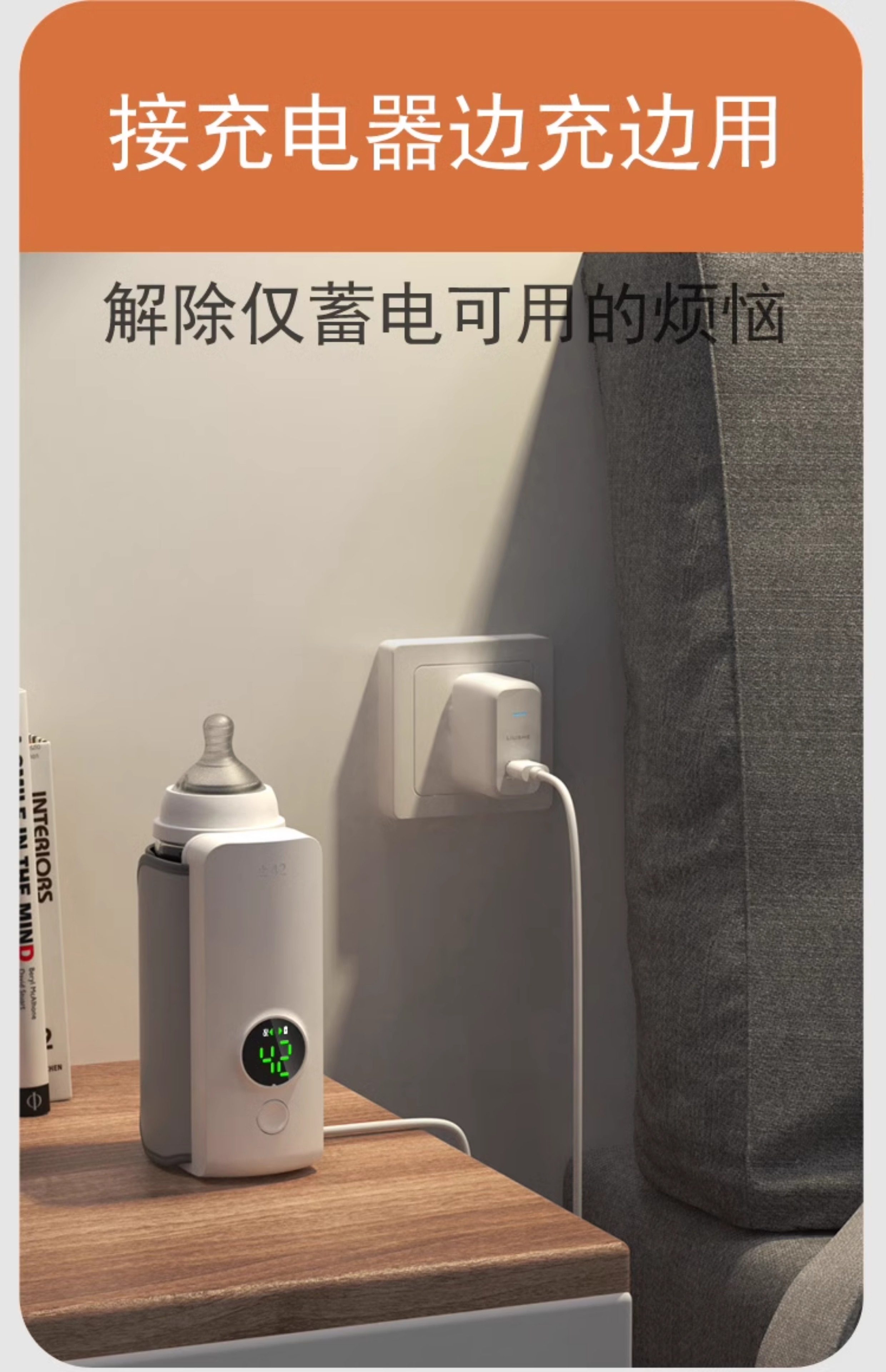 Xeamun Cute Wireless Constant Temperature Milk Warmer Rechargeable Milk Warmer Night Feeding Gadget Bottle Insulation Cover for Preparing Milk on the Go