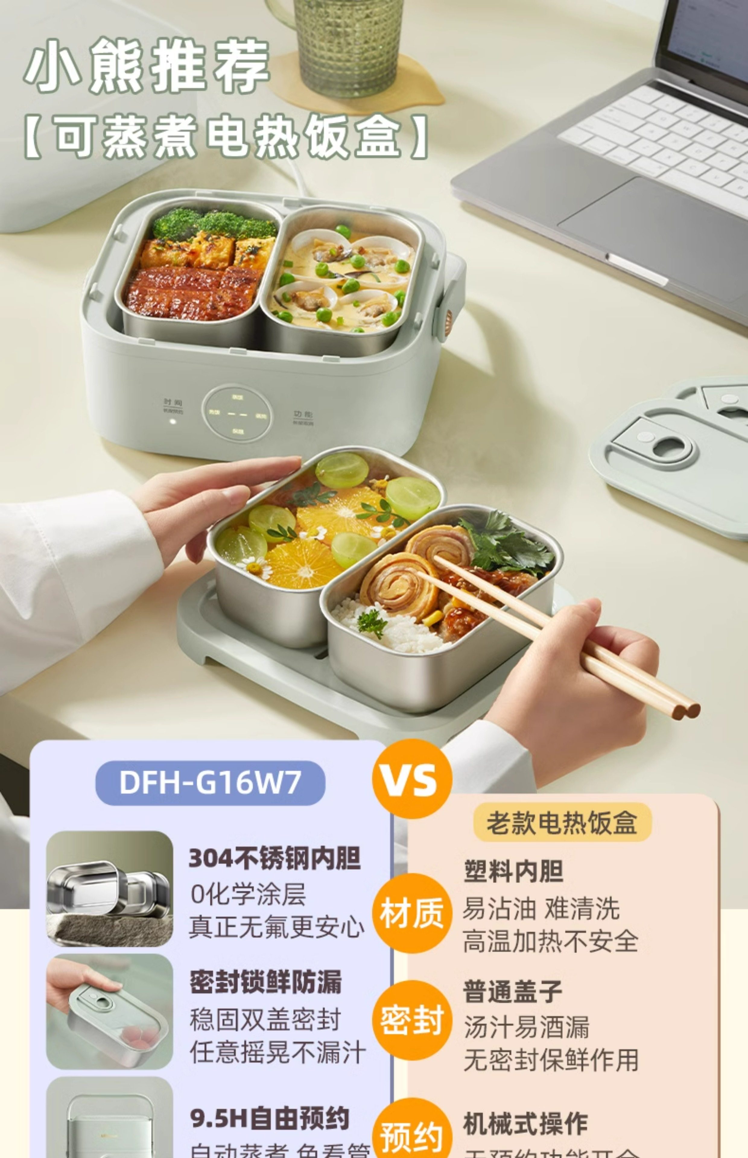 Bear-Shaped Electric Lunch Box That Can Be Steamed and Heated, a Magical Tool for Office Workers to Heat Meals, Self-Heating and Insulated Electric Lunch Box