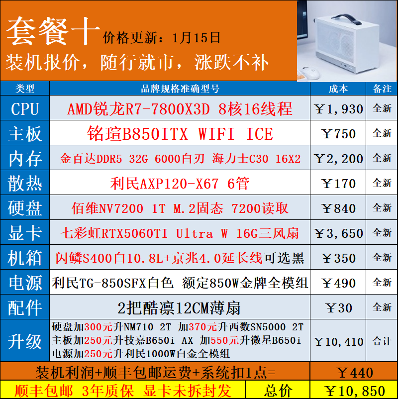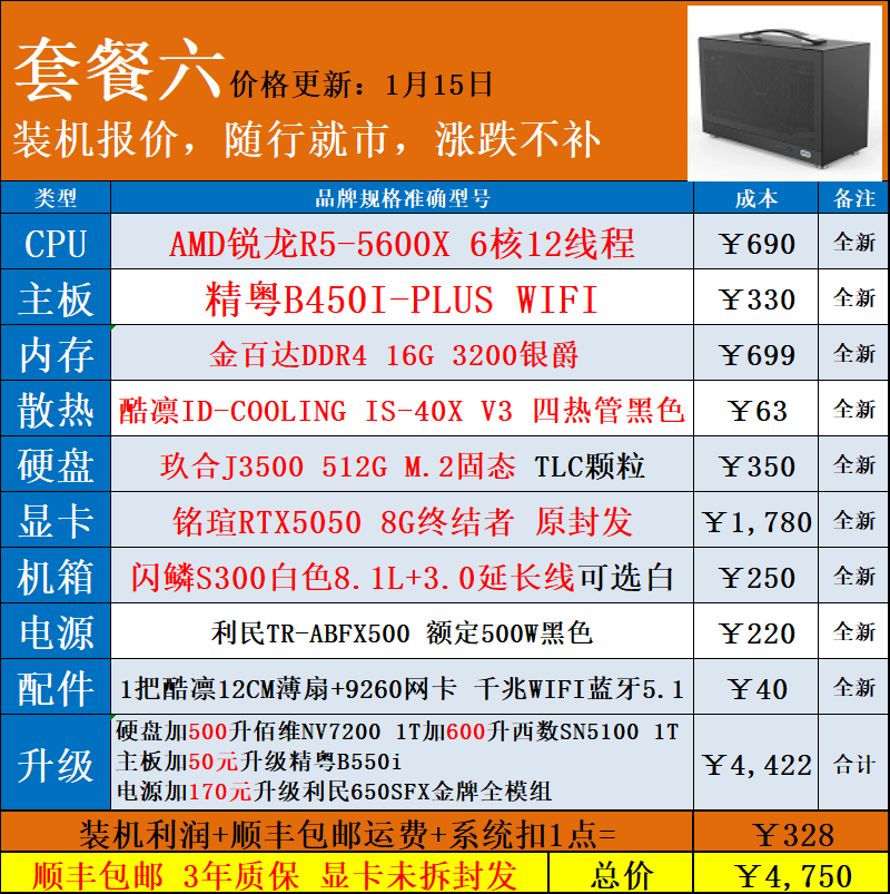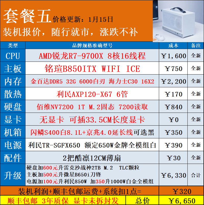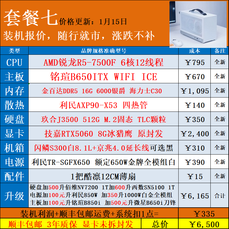 | Package Type | Package 1 5600X+ Without Card,Package 2 5700X+ Without Card,Package Three 7500F+ Without Card,Package 4 9600X+ Without Card,Package 5 9700X+ Without Card,Package 6 5600X+Rtx5050 8g,Package 7 7500F+Rtx5060 8g,Package 8 9600X+Rtx5060Ti 16g,Package Nine 9700X+Rtx5060Ti 16g,Package 10 7800X3D+Rtx5060Ti 16g |