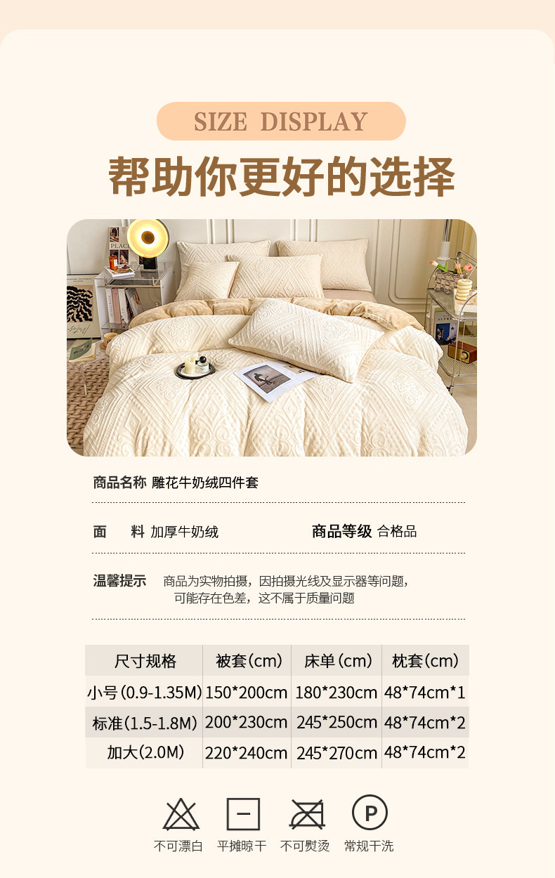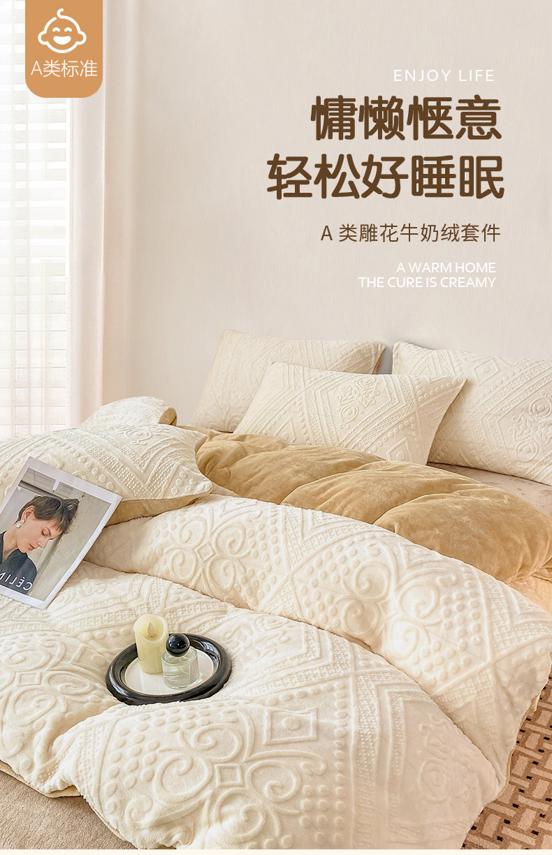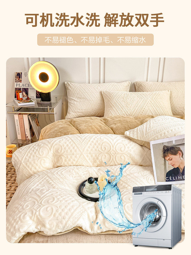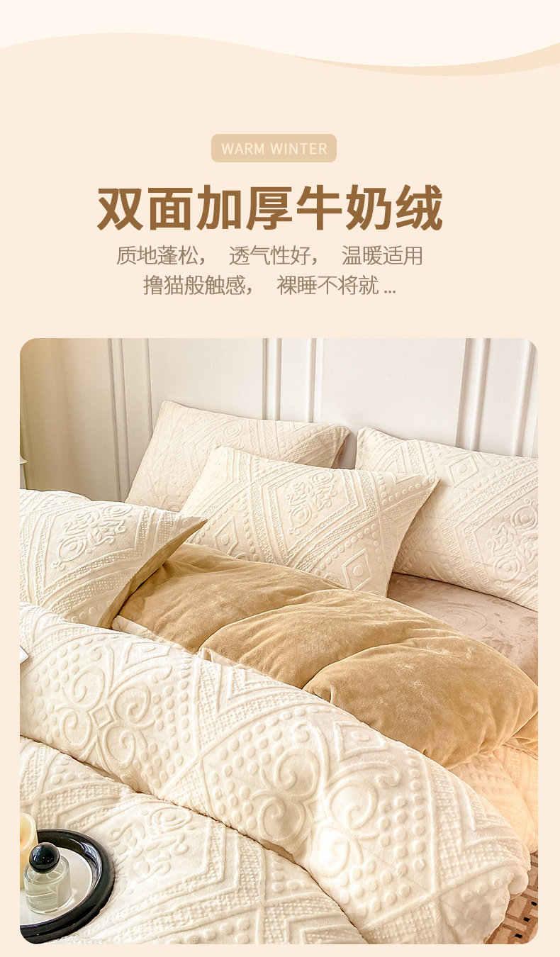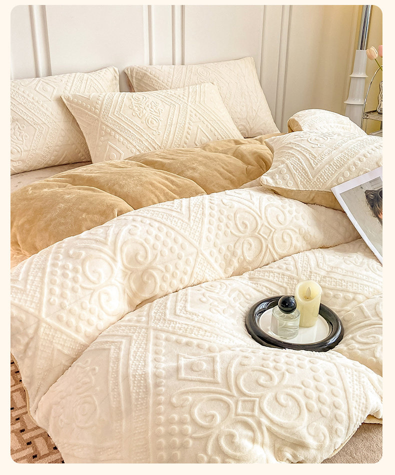 Carved Milk Velvet Four-Piece Bedding Set, Winter Coral Velvet Duvet Cover, Thickened Flannel Bed Sheet, Flannel Fitted Sheet