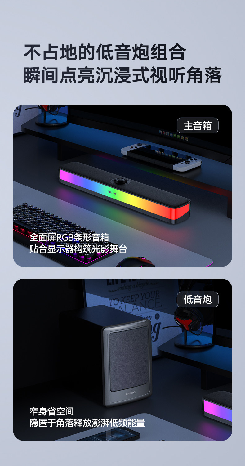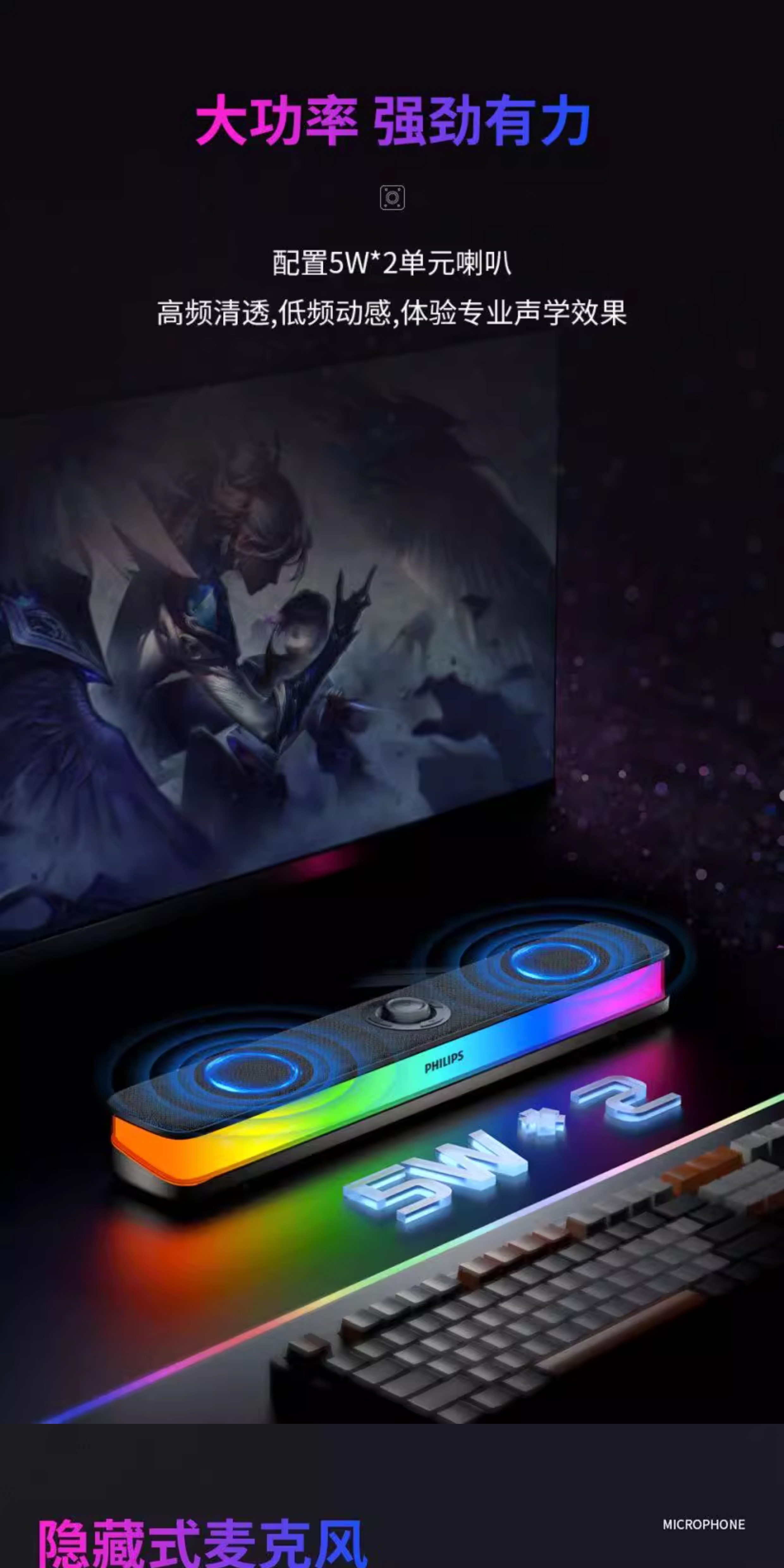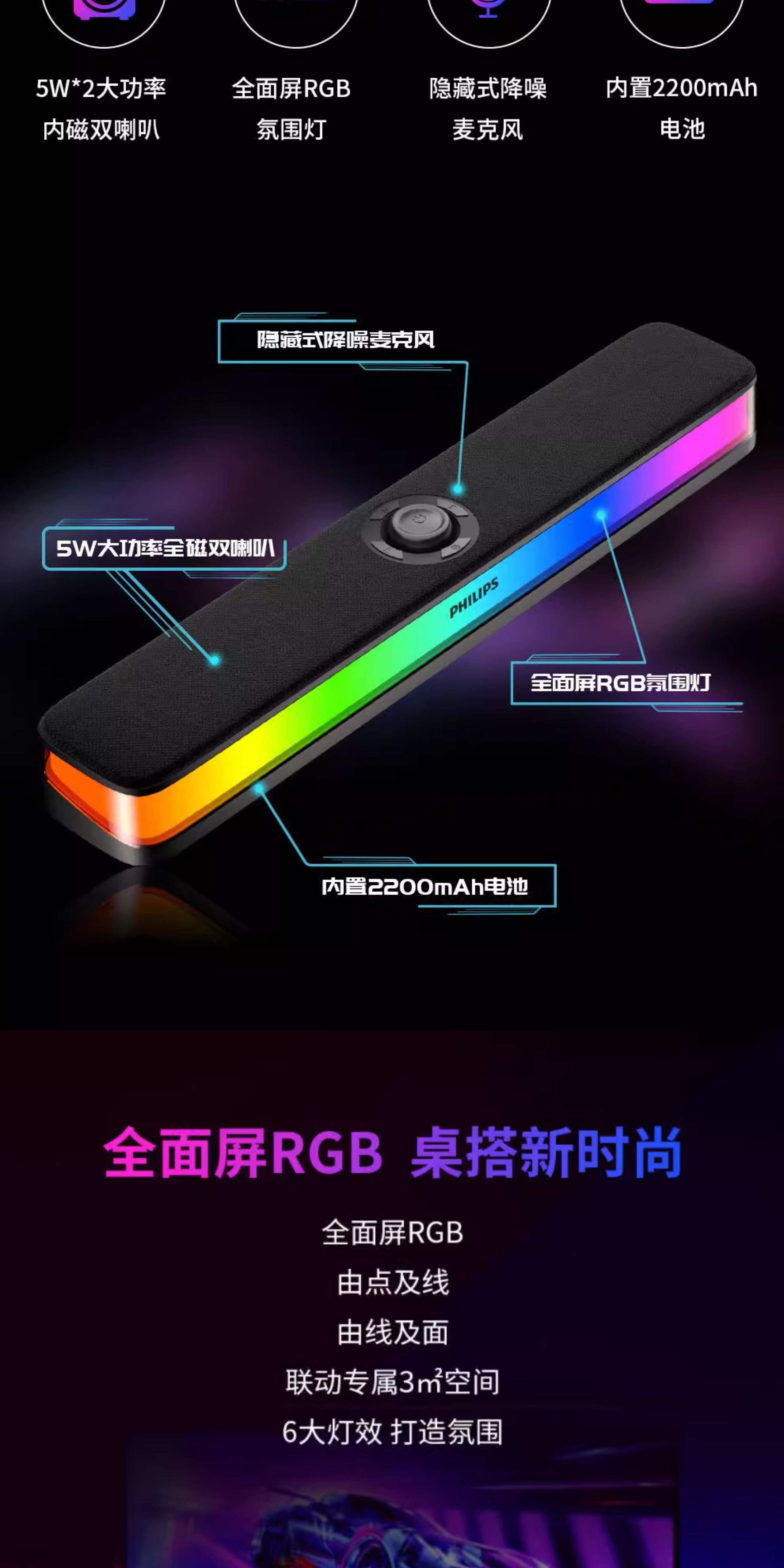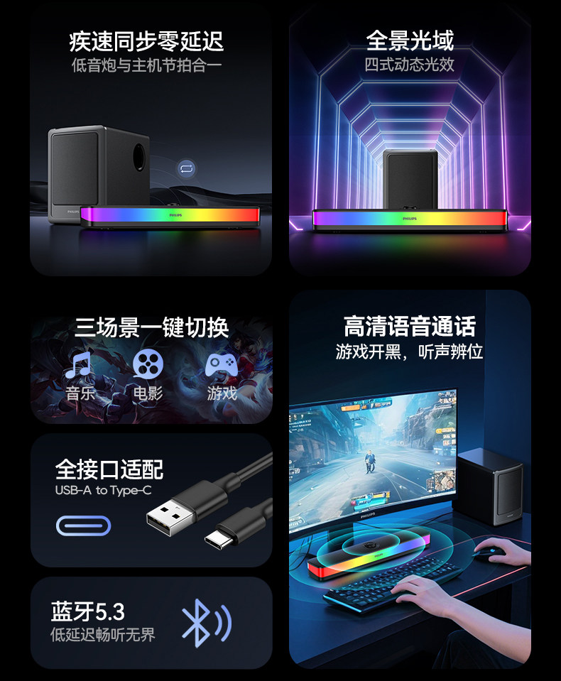 Philips Bluetooth Speaker Full-Screen Rgb Lighting Desktop Speaker Spa6109 Gaming E-Sports with Microphone