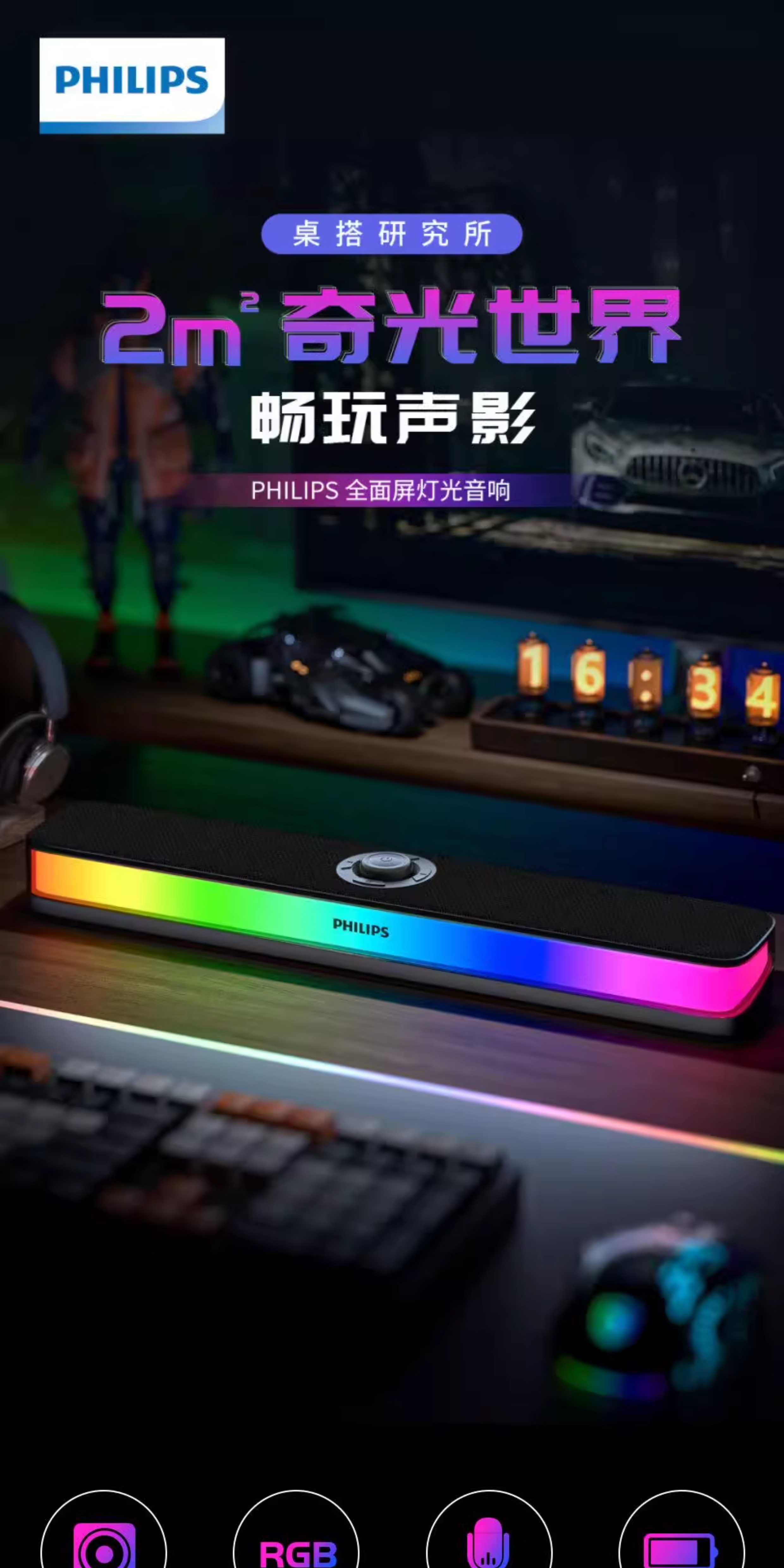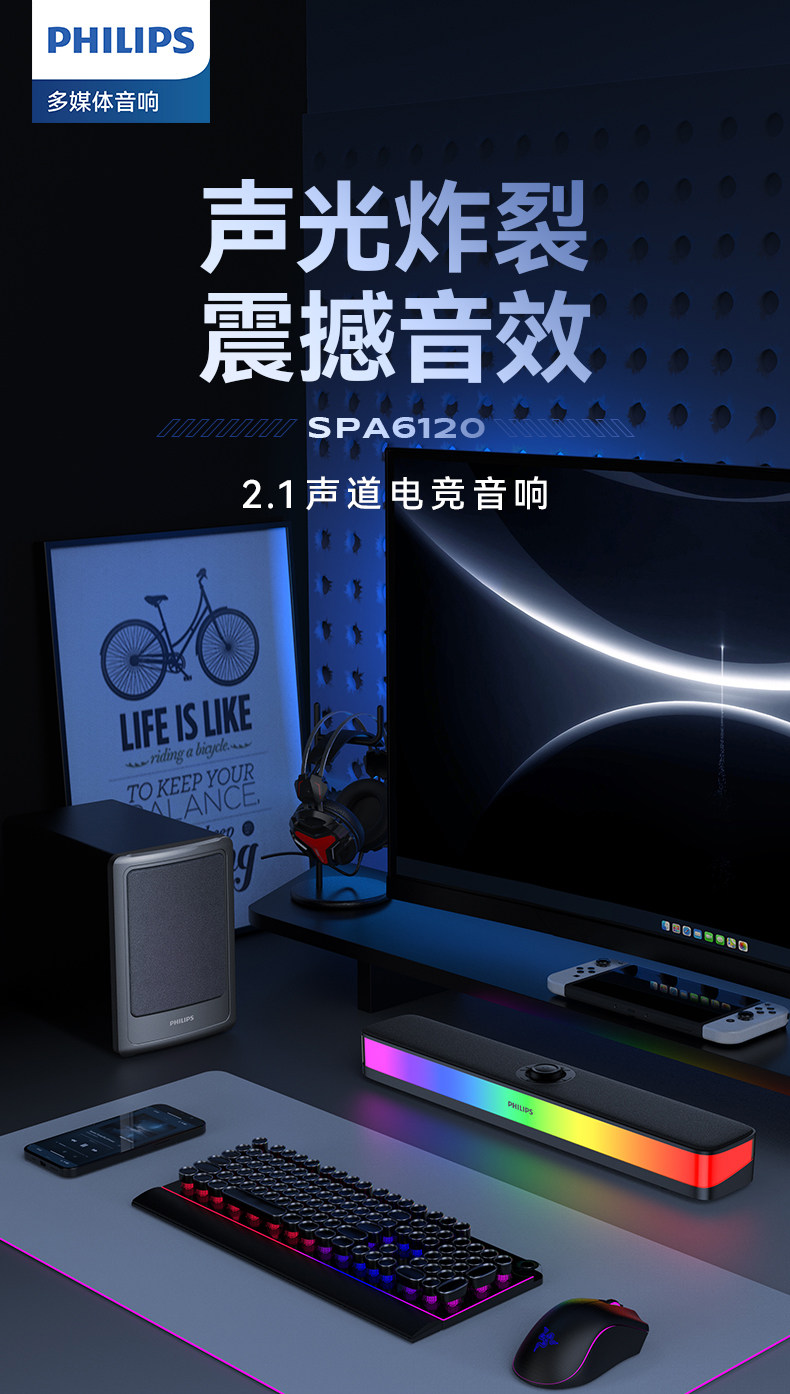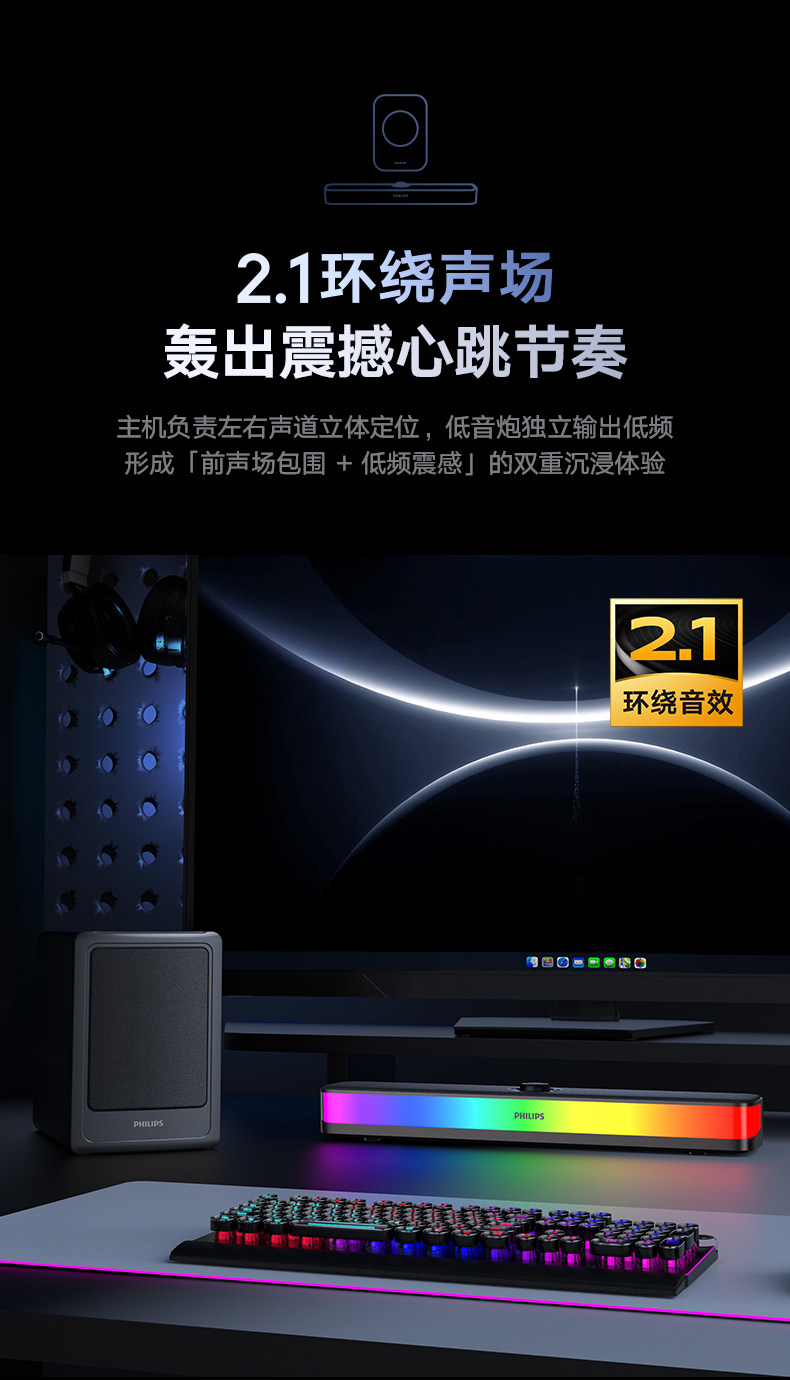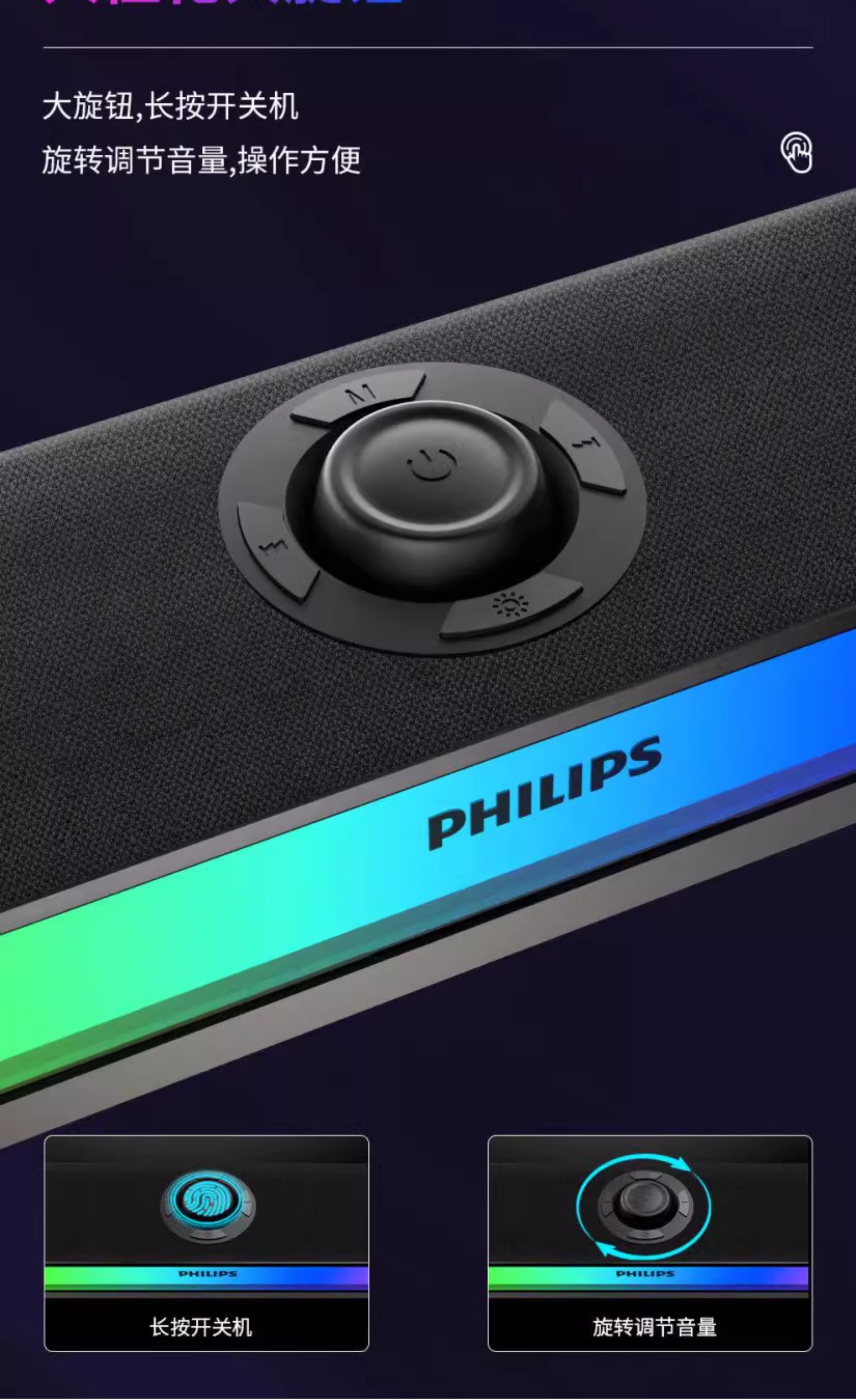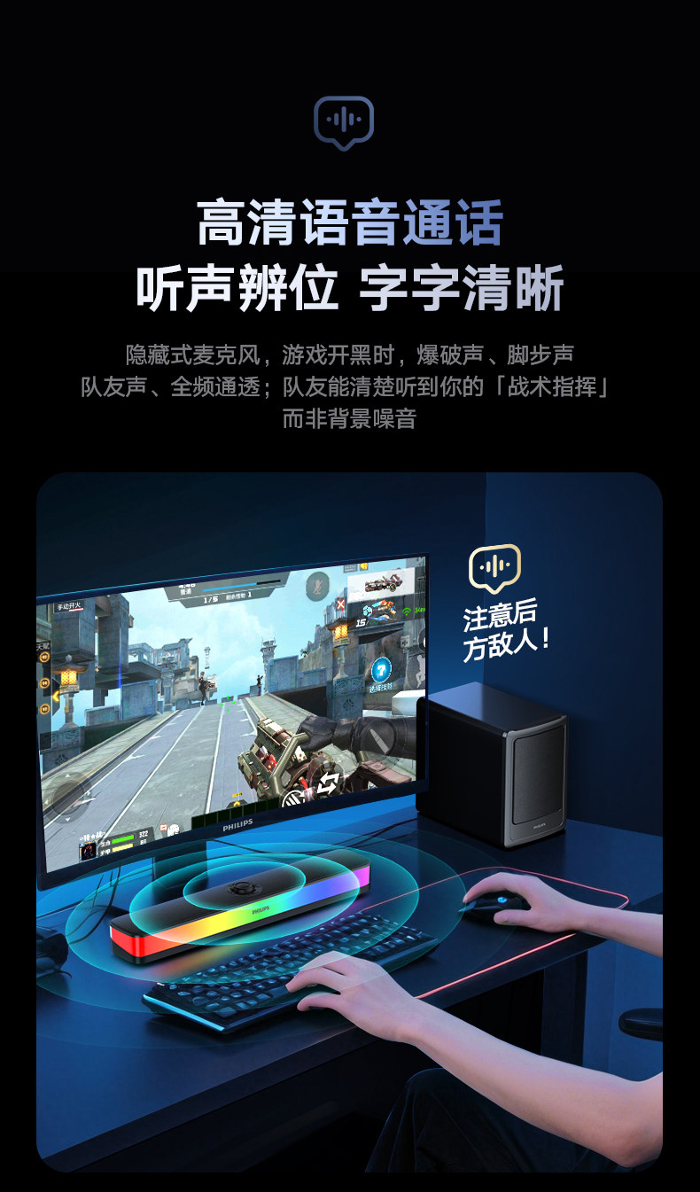 Philips Bluetooth Speaker Full-Screen Rgb Lighting Desktop Speaker Spa6109 Gaming E-Sports with Microphone