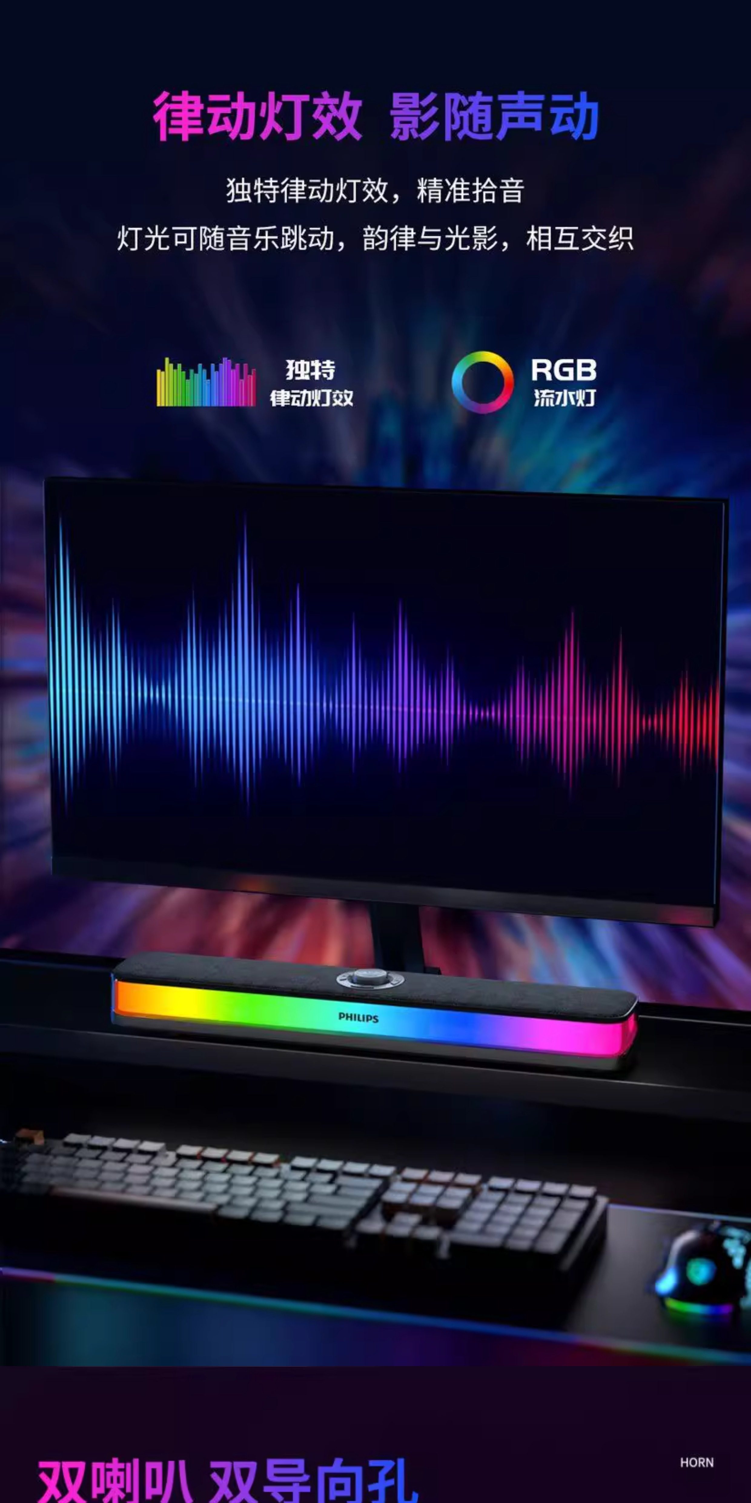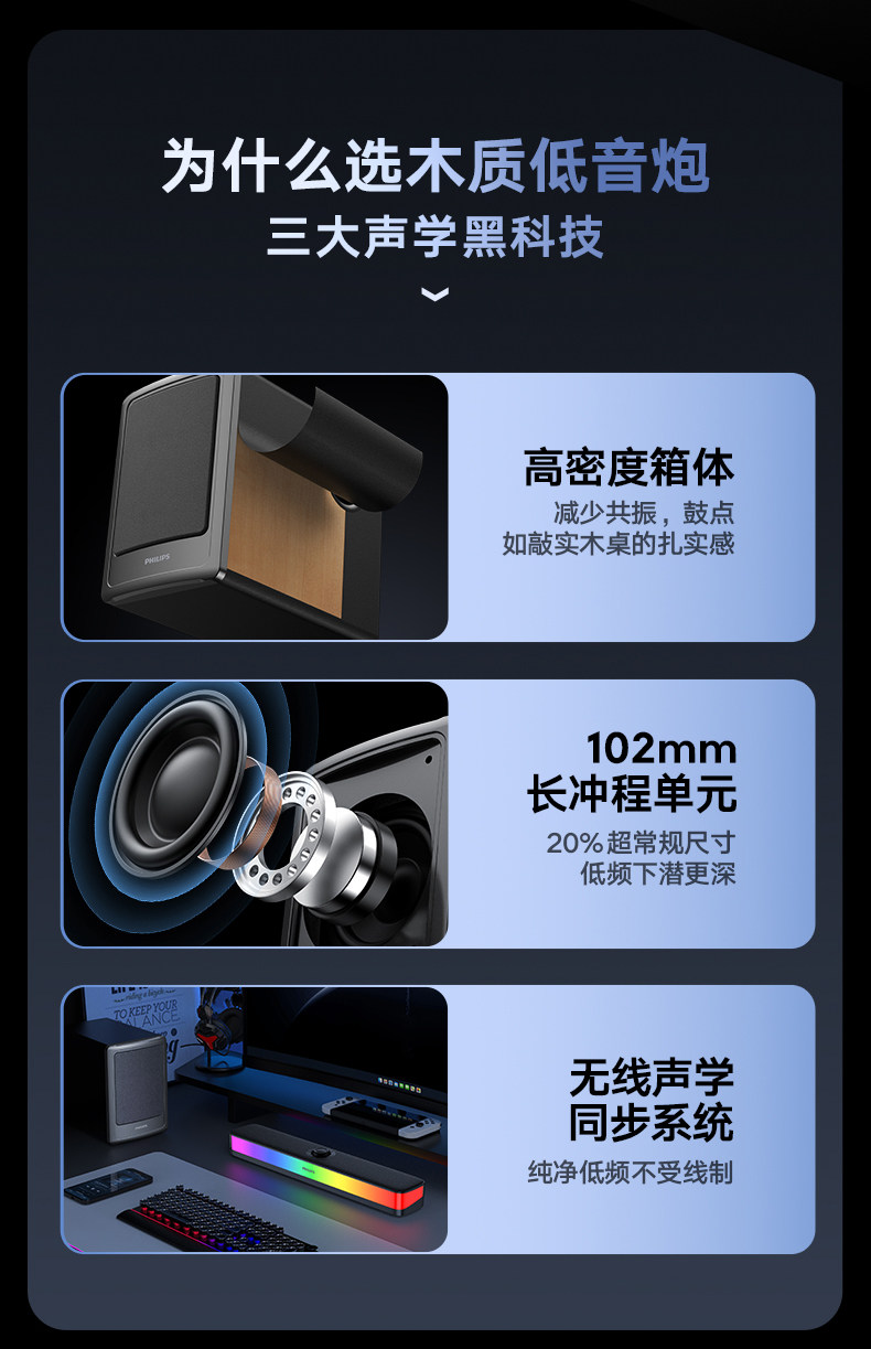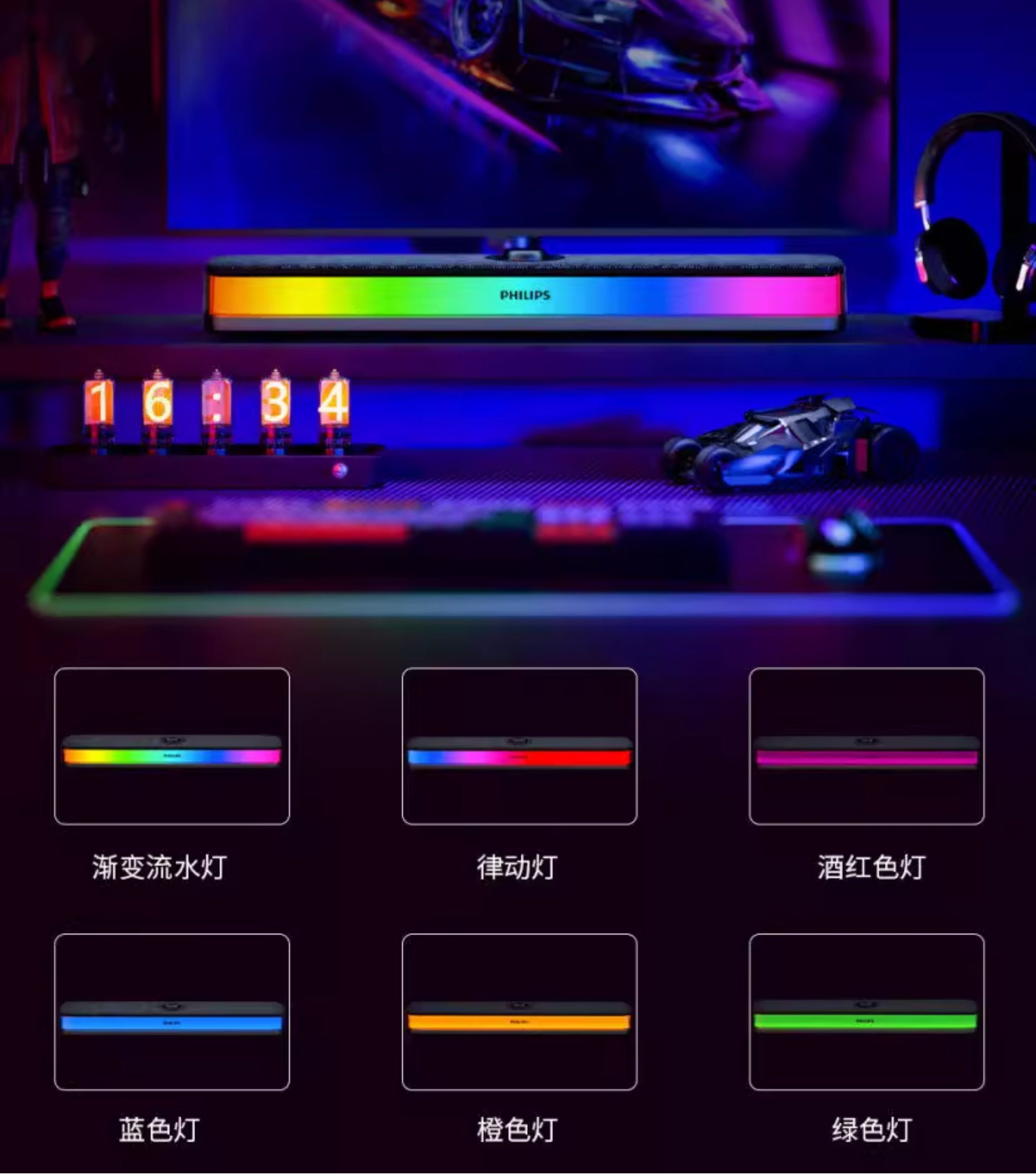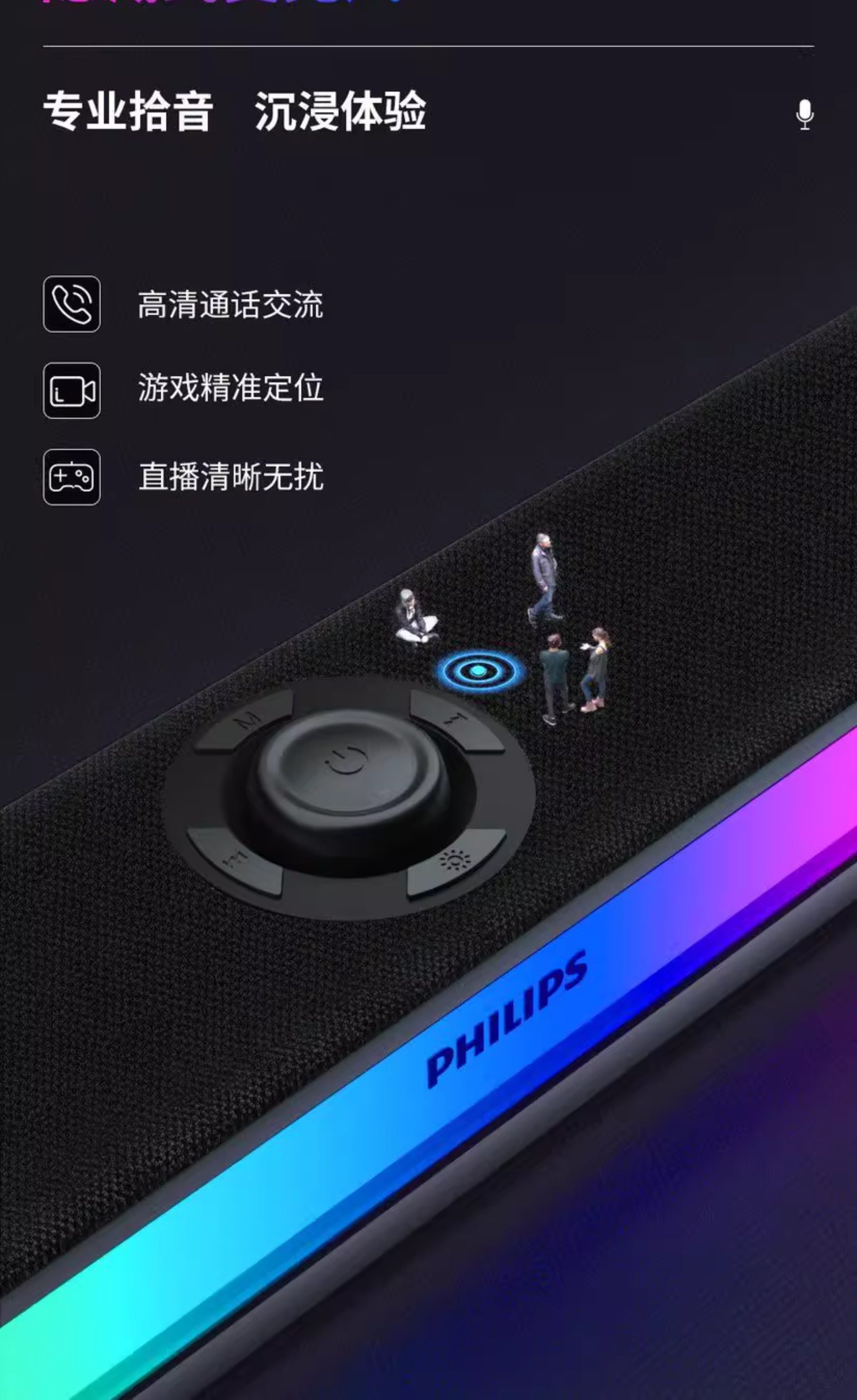 Philips Bluetooth Speaker Full-Screen Rgb Lighting Desktop Speaker Spa6109 Gaming E-Sports with Microphone