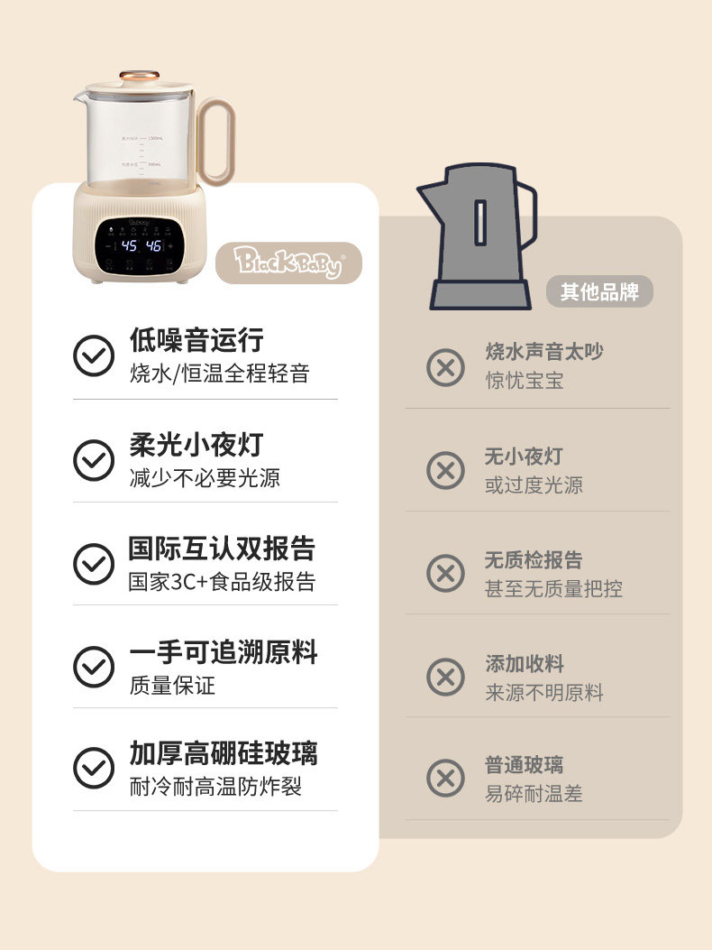 Blackbaby Constant Temperature Water Kettle, Baby-Specific Household Smart Hot Water and Warm Water All-Glass Water Kettle, Milk Making Machine