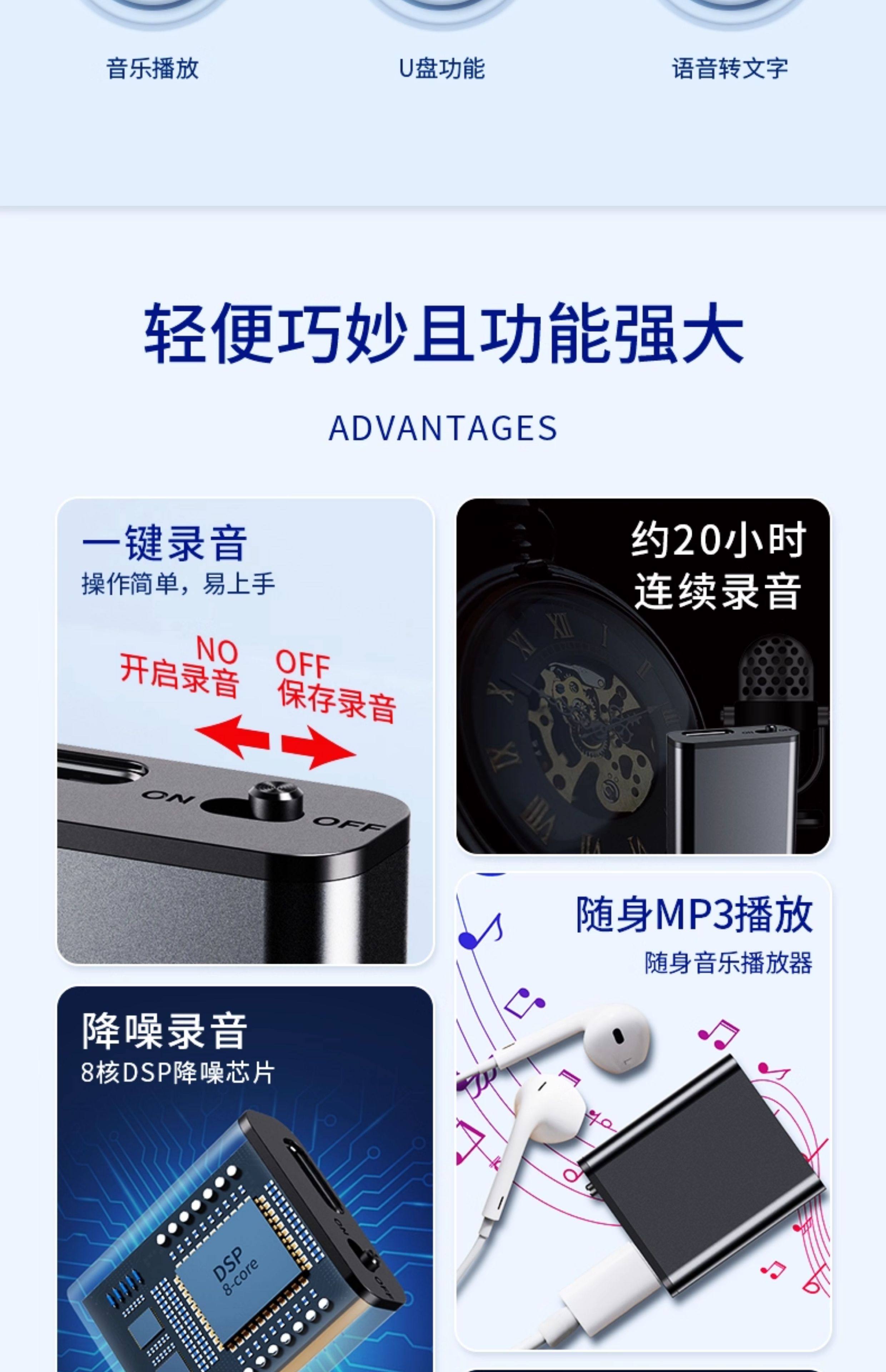 Recording Pen, Small Portable Recording Device, Voice-Activated Recording and Listening Equipment, Professional High-Definition Noise Reduction, Can Convert Voice to Text
