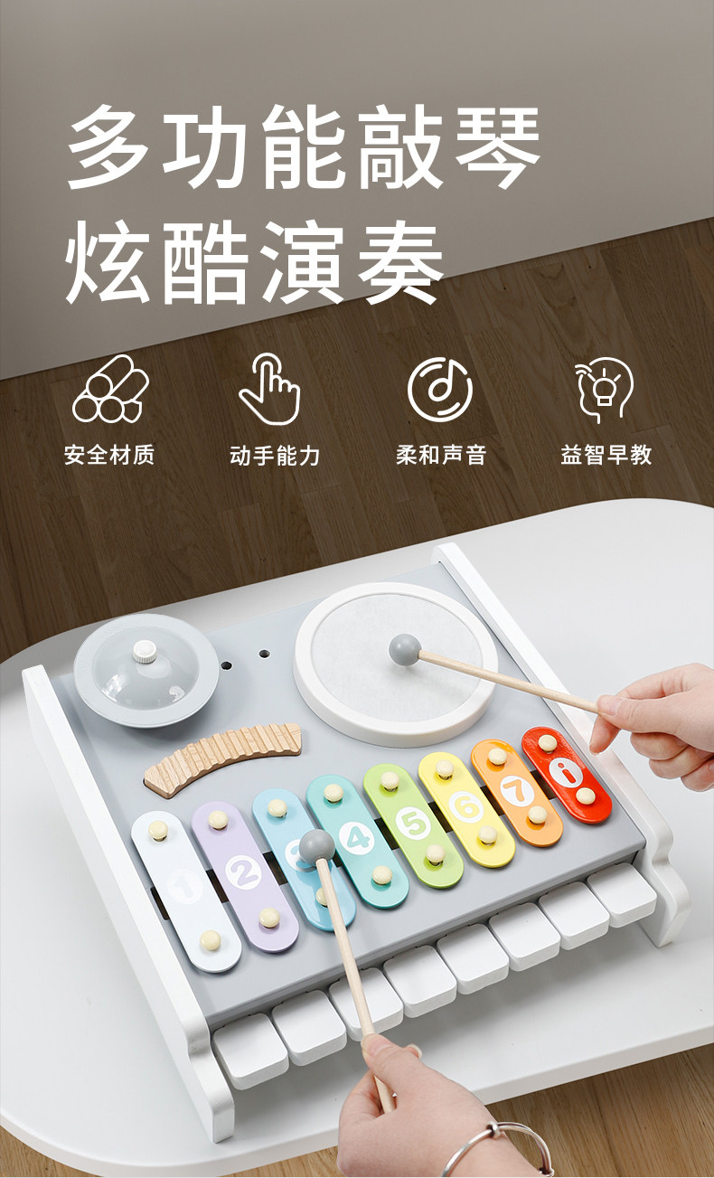 Infants and Young Children's Eight-Tone Hand-Knocking Xylophone Educational Toy Musical Instrument 8-Month-Old Baby Two-In-One Music Piano