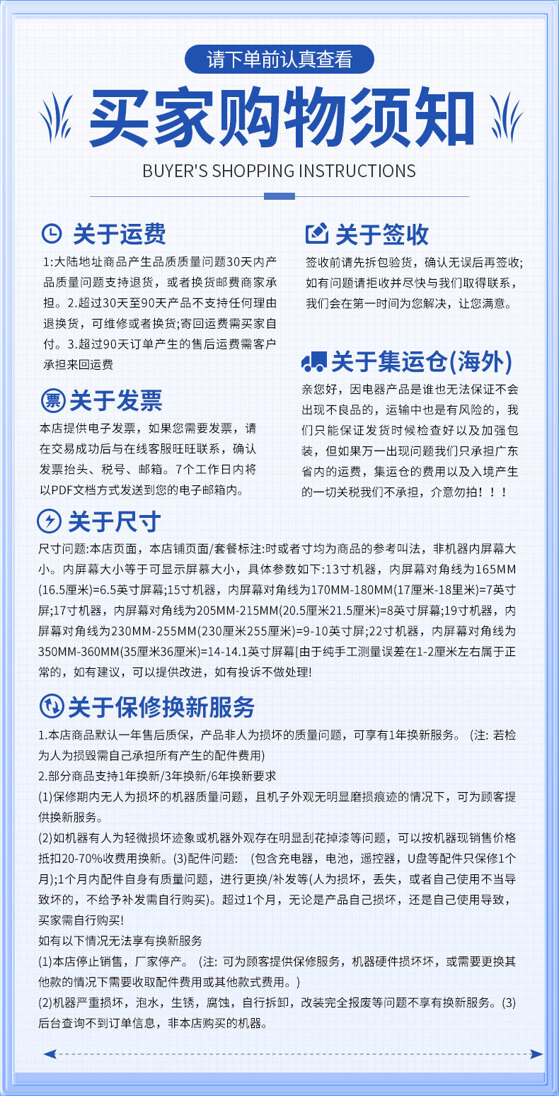 | Color Classification | 15'' [New Generation Octa-Core Touchscreen] + [2Gb Ram + 32Gb Onboard Storage] + [Free Tv Streaming] Standard Configuration,15'' [New Generation Eight-Core Touch]+16G USB Flash Drive+[2g Storage+32G Built-In Storage]+[Free Tv Viewing],15'' [New Generation Eight-Core Touch] + 32g USB Flash Drive + [2g Storage + 32g Built-In Storage] + [Free Tv Viewing],15'' [New Generation Eight-Core Touch] + 64g USB Flash Drive + [2g Storage + 32g Built-In Storage] + [Free Tv Viewing],15'' [New Generation Eight-Core Touch]+128G USB Flash Drive+[2g Storage+32G Built-In Storage]+[Free Tv Viewing],15'' [New Generation Eight-Core Touch]+256G USB Flash Drive+[2g Storage+32G Built-In Storage]+[Free Tv Viewing],19''[New Generation Eight-Core Touch]+[2g Running Memory+32G Built-In Storage]+[Free Tv Viewing] Standard Configuration,19''[New Generation Eight-Core Touch]+16Gu Disk+[2g Running Memory+32G Built-In Storage]+[Free Tv Viewing],19''[New Generation Eight-Core Touch]+32Gu Disk+[2g Running Memory+32G Built-In Storage]+[Free Tv Viewing],19''[New Generation Eight-Core Touch]+64Gu Disk+[2g Running Memory+32G Built-In Storage]+[Free Tv Viewing],19''[New Generation Eight-Core Touch]+128Gu Disk+[2g Running Memory+32G Built-In Storage]+[Free Tv Viewing],19''[New Generation Eight-Core Touch]+256Gu Disk+[2g Running Memory+32G Built-In Storage]+[Free Tv Viewing],22'' [New Generation Octa-Core Touchscreen] + [2Gb Ram + 32Gb Onboard Storage] + [Free Tv Streaming] Standard Configuration,22''[New Generation Eight-Core Touch]+16Gu Disk+[2g Running Memory+32G Built-In Storage]+[Free Tv Viewing],22''[New Generation Eight-Core Touch]+32Gu Disk+[2g Running Memory+32G Built-In Storage]+[Free Tv Viewing],22''[New Generation Eight-Core Touch]+64Gu Disk+[2g Running Memory+32G Built-In Storage]+[Free Tv Viewing],22''[New Generation Eight-Core Touch]+128Gu Disk+[2g Running Memory+32G Built-In Storage]+[Free Tv Watching],22''[New Generation Eight-Core Touch]+256Gu Disk+[2g Running Memory+32G Built-In Storage]+[Free Tv Viewing] |