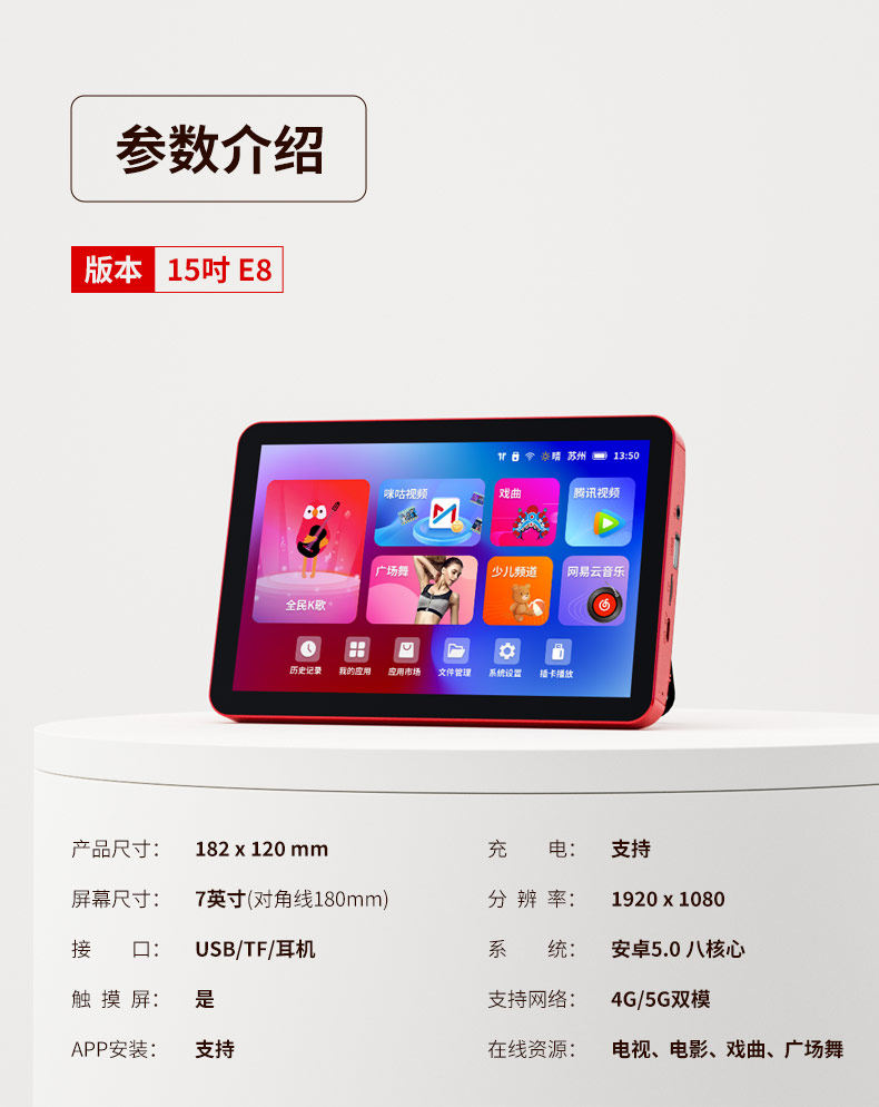 | Function | Bluetooth,Wifi, Watching Movies, Watching Square Dancing |