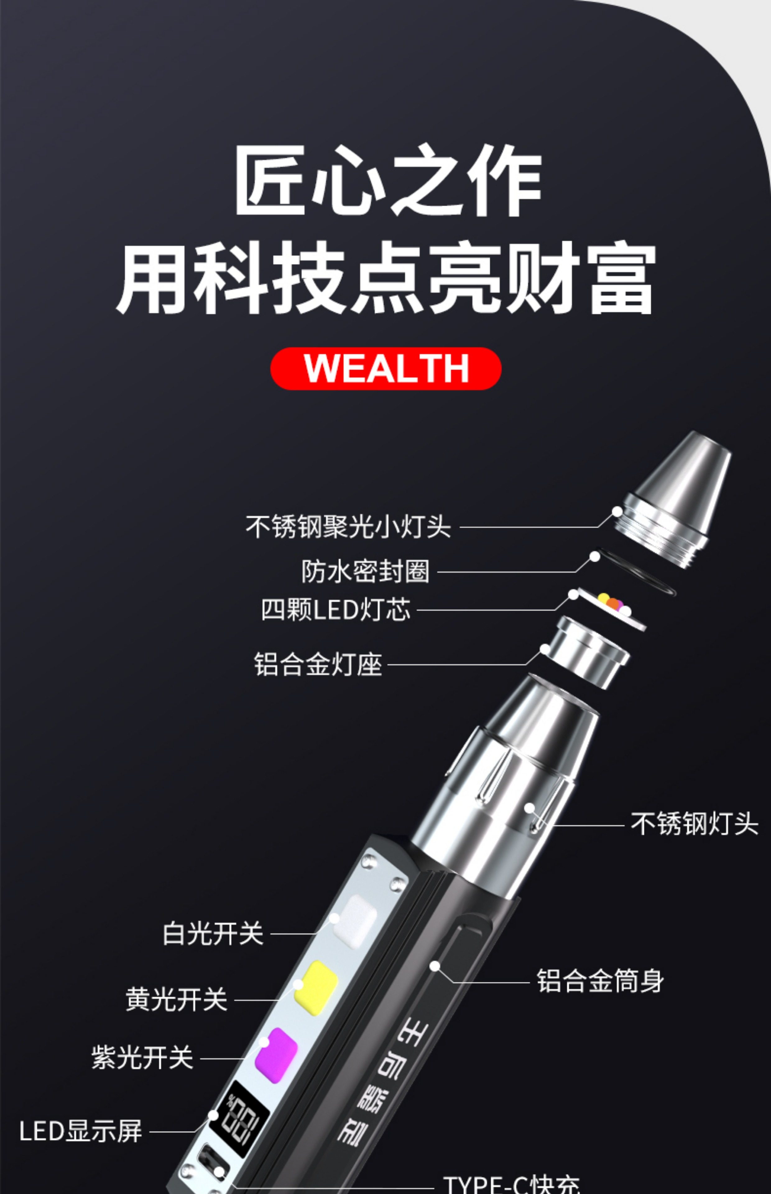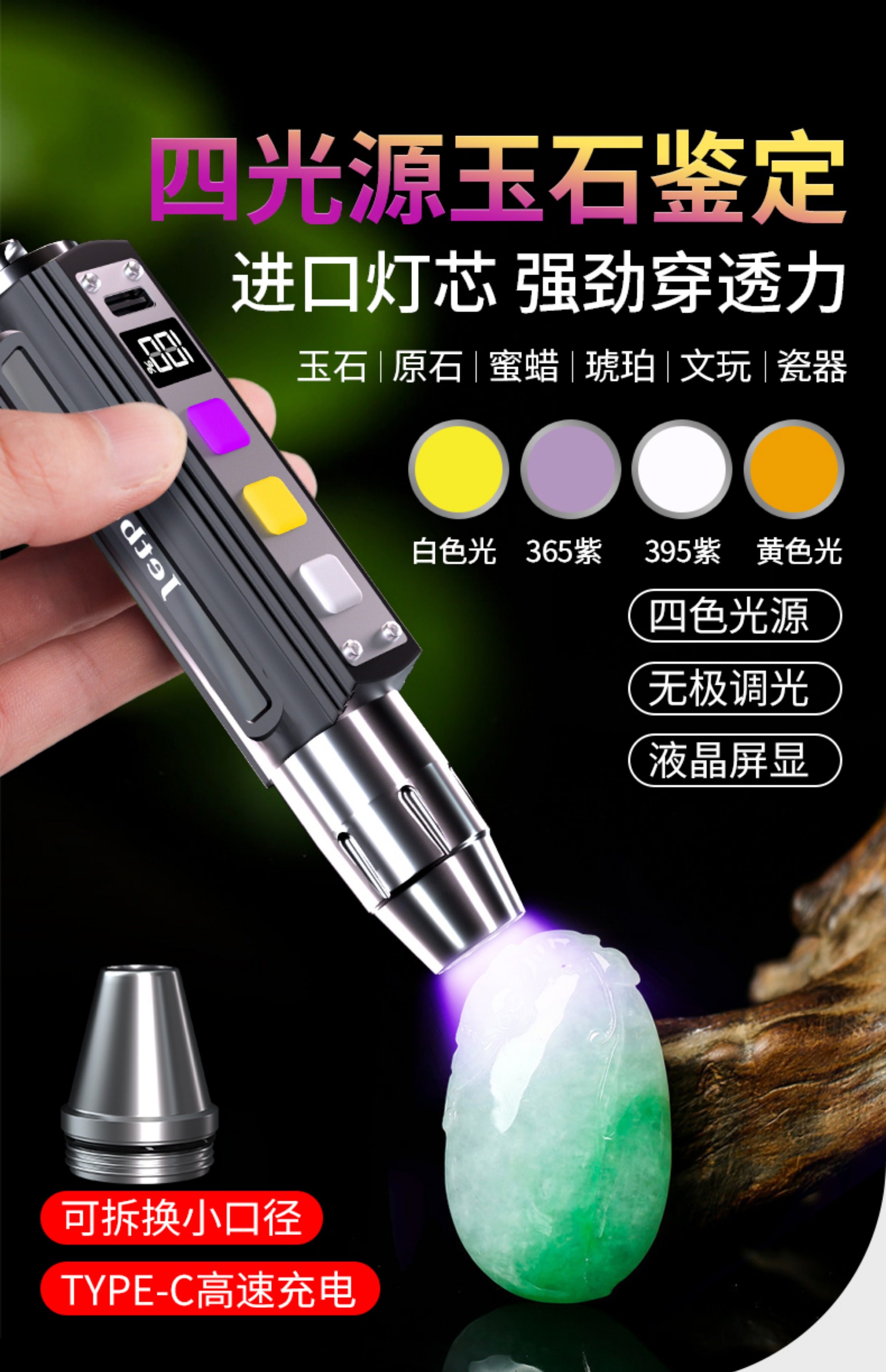 Jetbeam Jade Identification Flashlight, Special Strong Light for Identification, Jade Identification, Money Detection, Tobacco and Alcohol 365 Purple Light