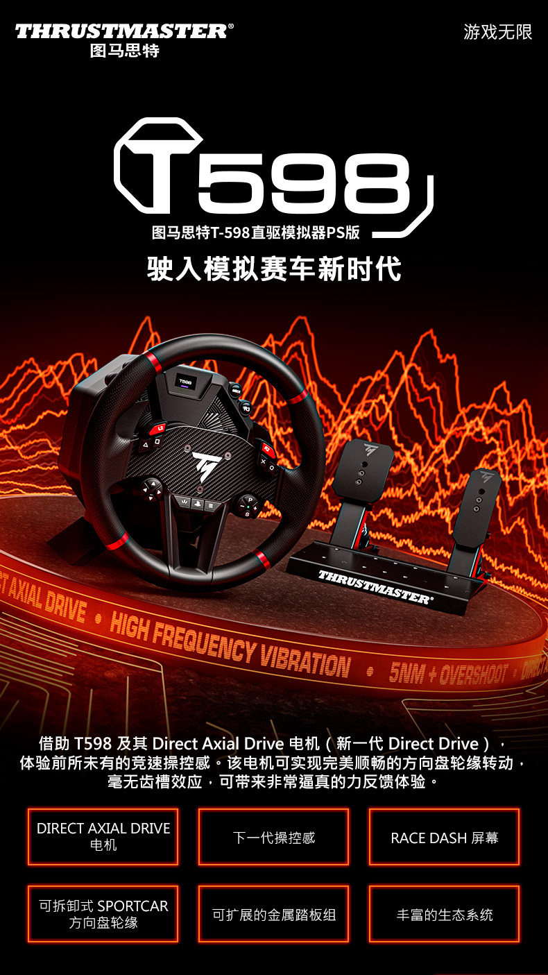 [Ps Authorized Direct Drive] Thrustmaster T598P Second Generation Dad Motor Direct Drive Steering Wheel Simulator Dynamic Torque Compatible with Ps/Pc Thrustmaster Racing Game Steering Wheel