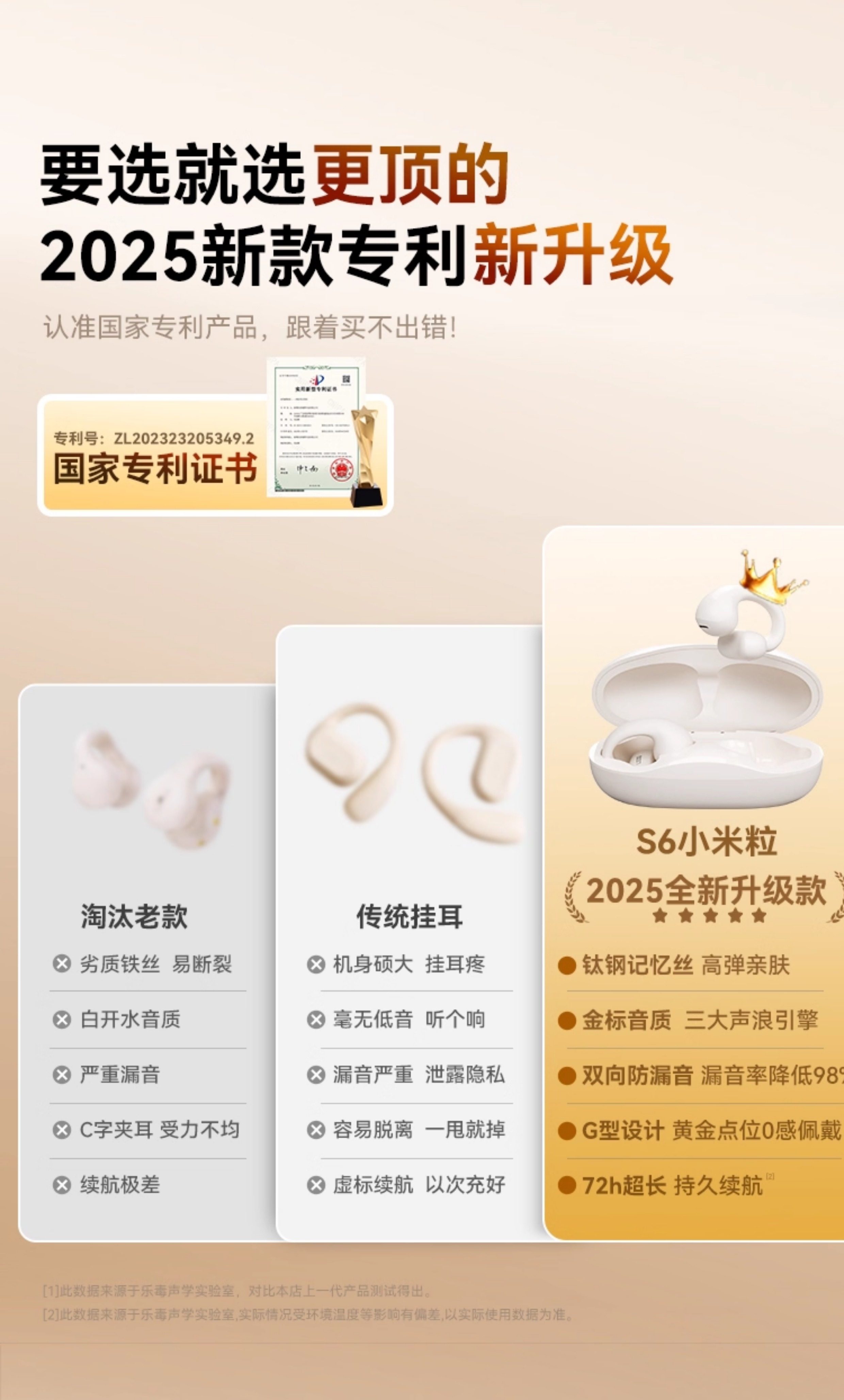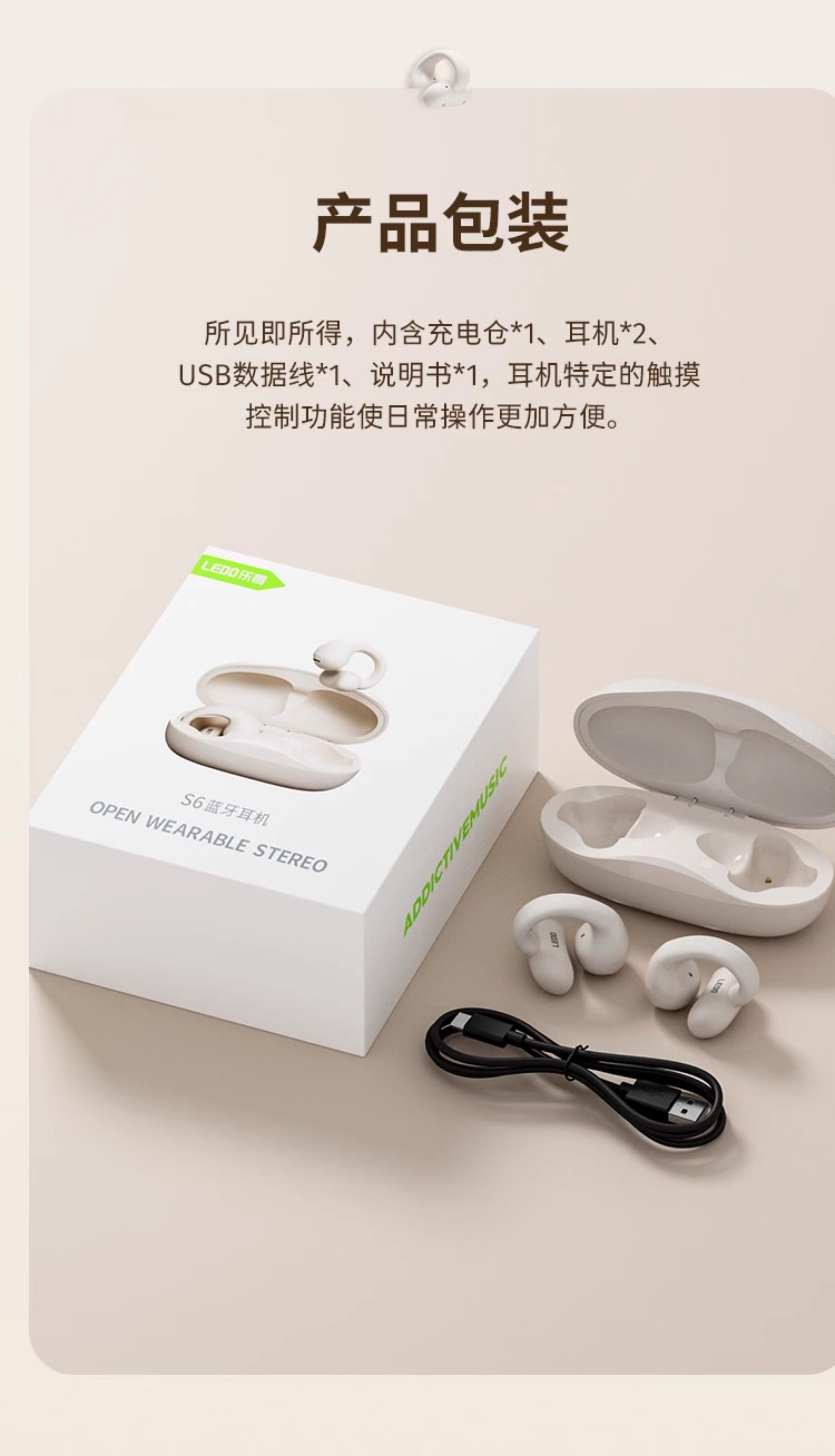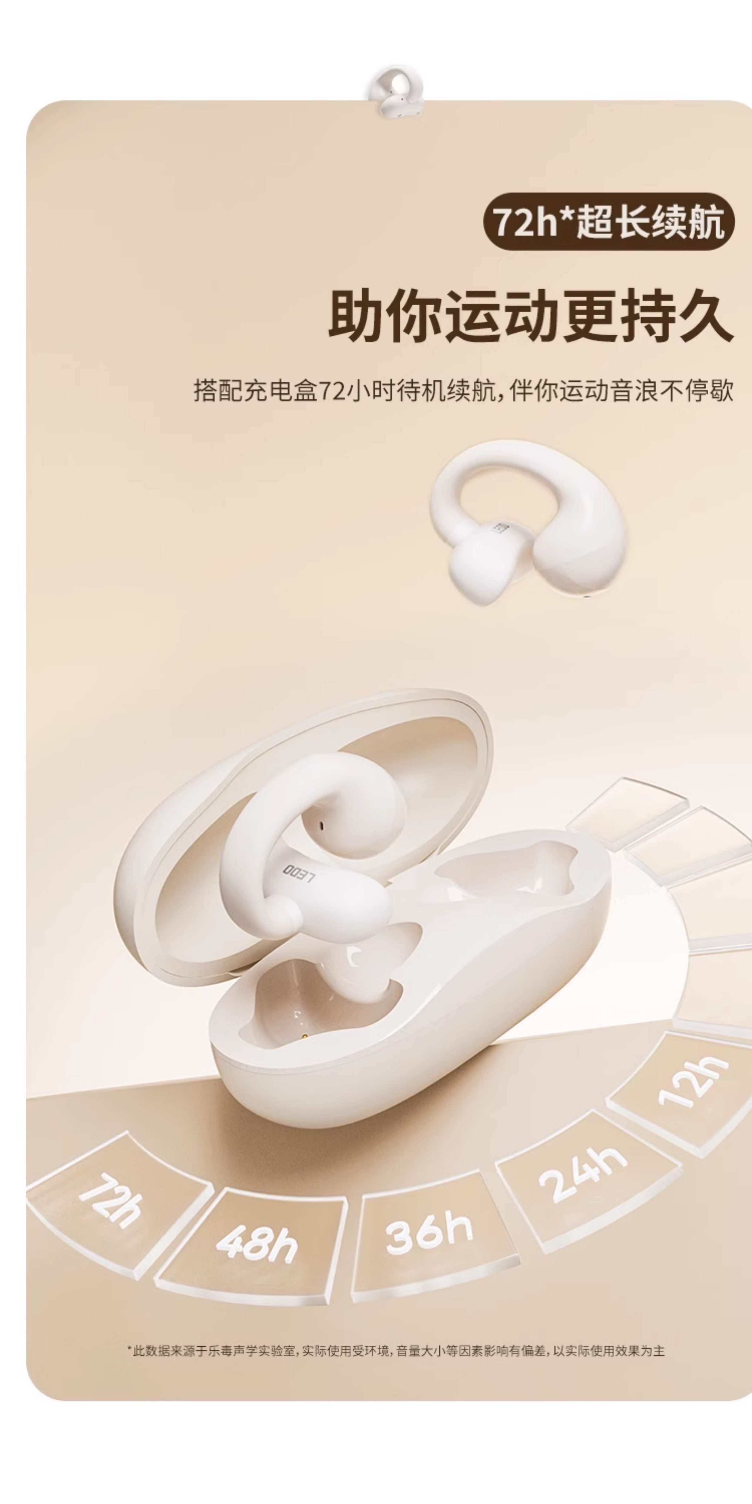 Ledu S6 Bluetooth Headphones Air Bone Conduction Wireless Open Ear Clip 2025 New Model Over-Ear Non-In-Ear High Quality