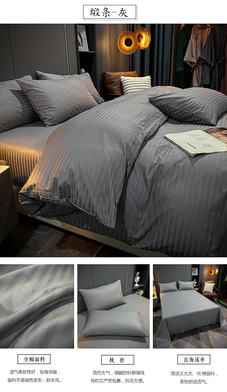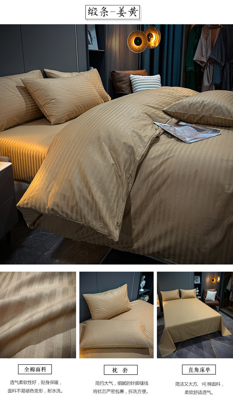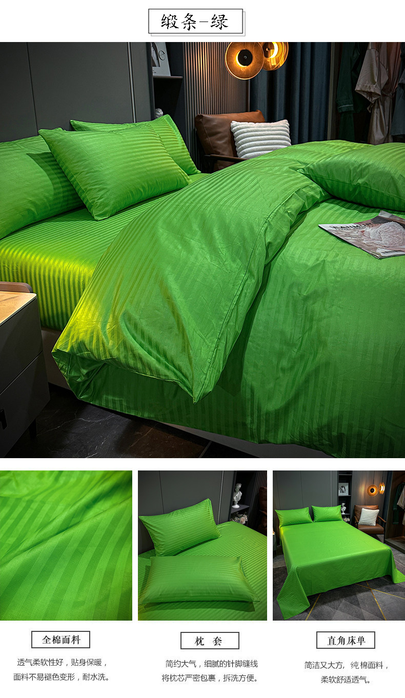 New Five-Star Hotel Four-Piece Set, All-Cotton Guesthouse Satin Green Hotel Bedding, Pure Cotton Bed Sheet and Duvet Cover