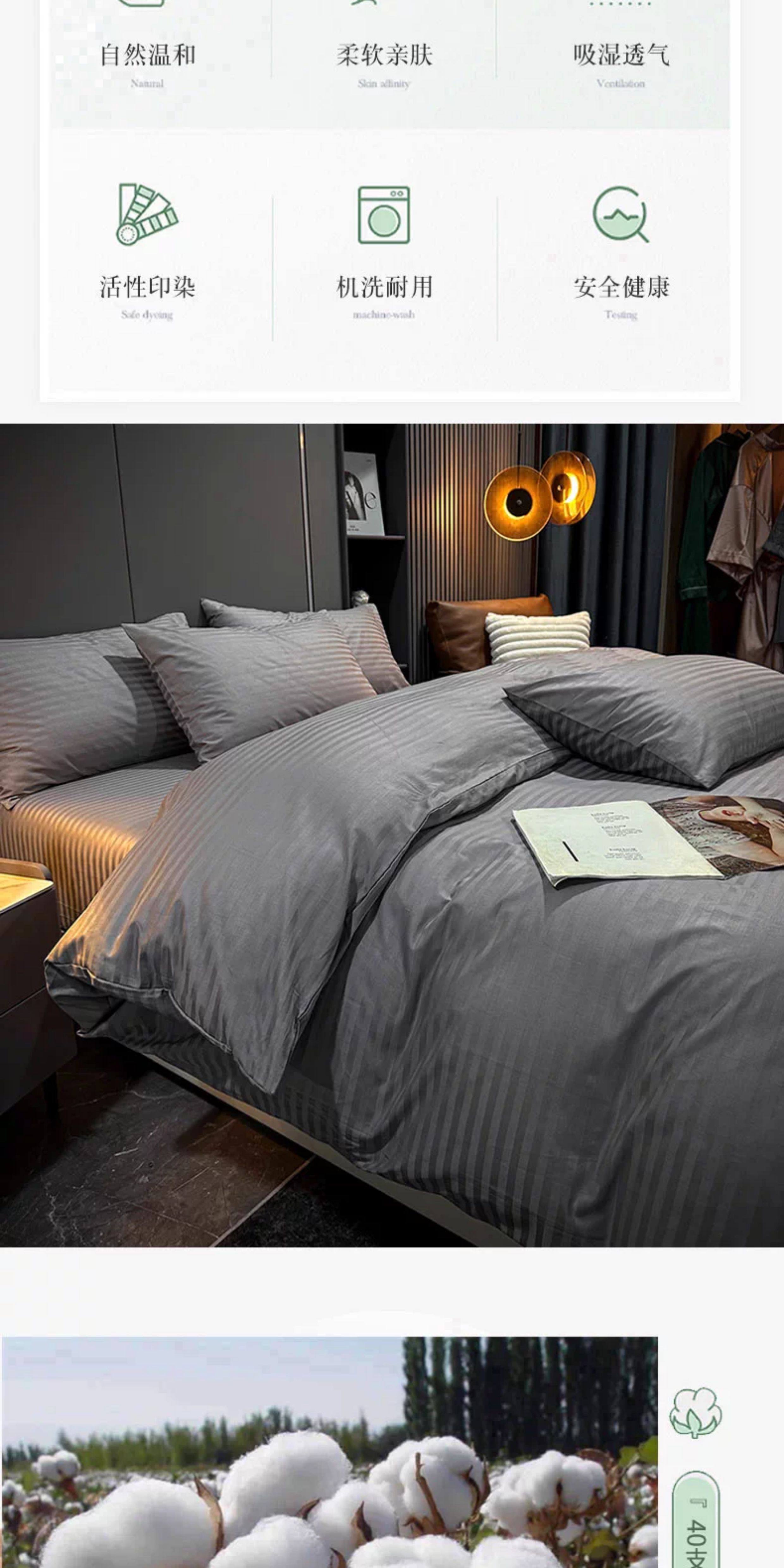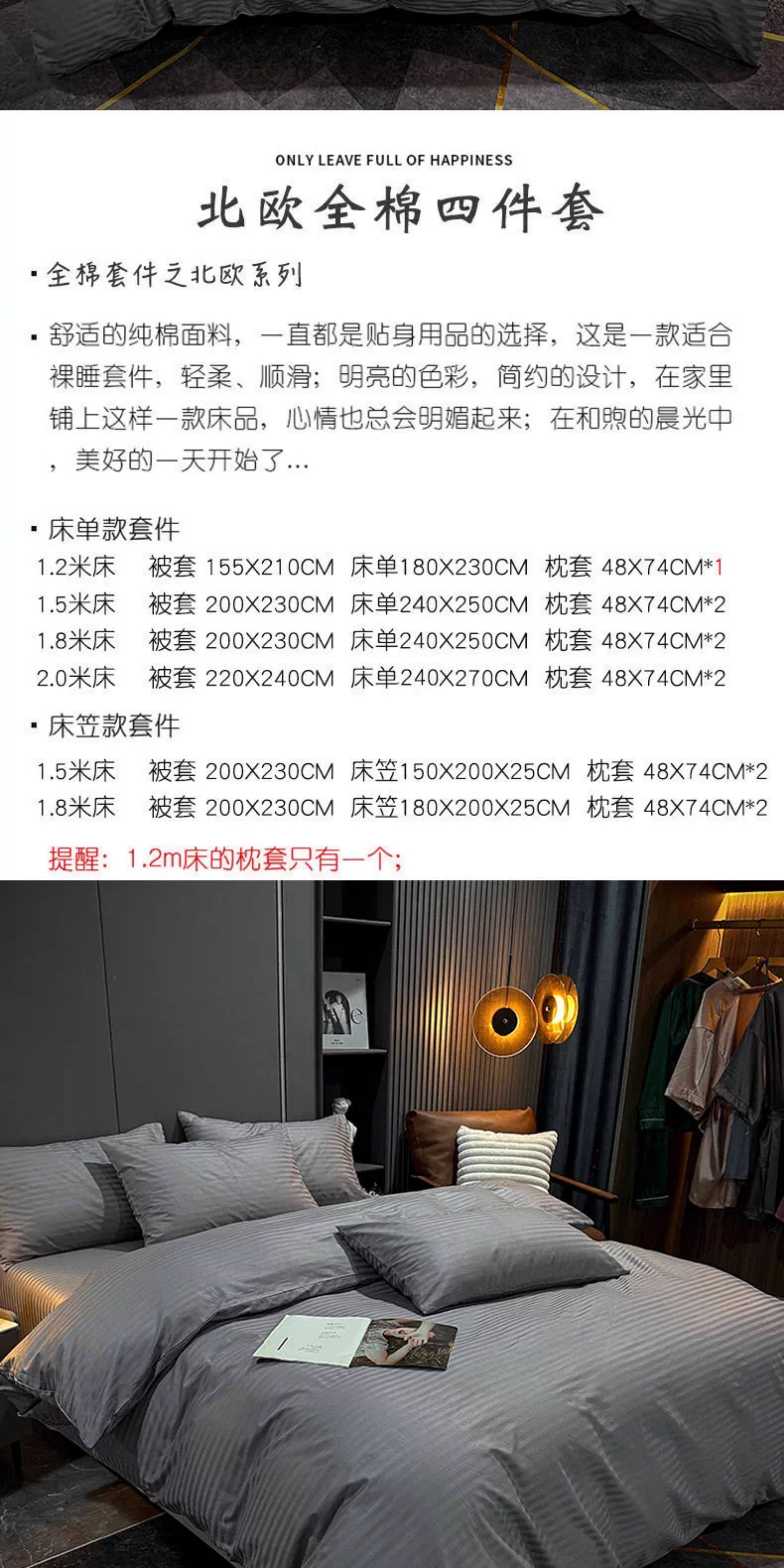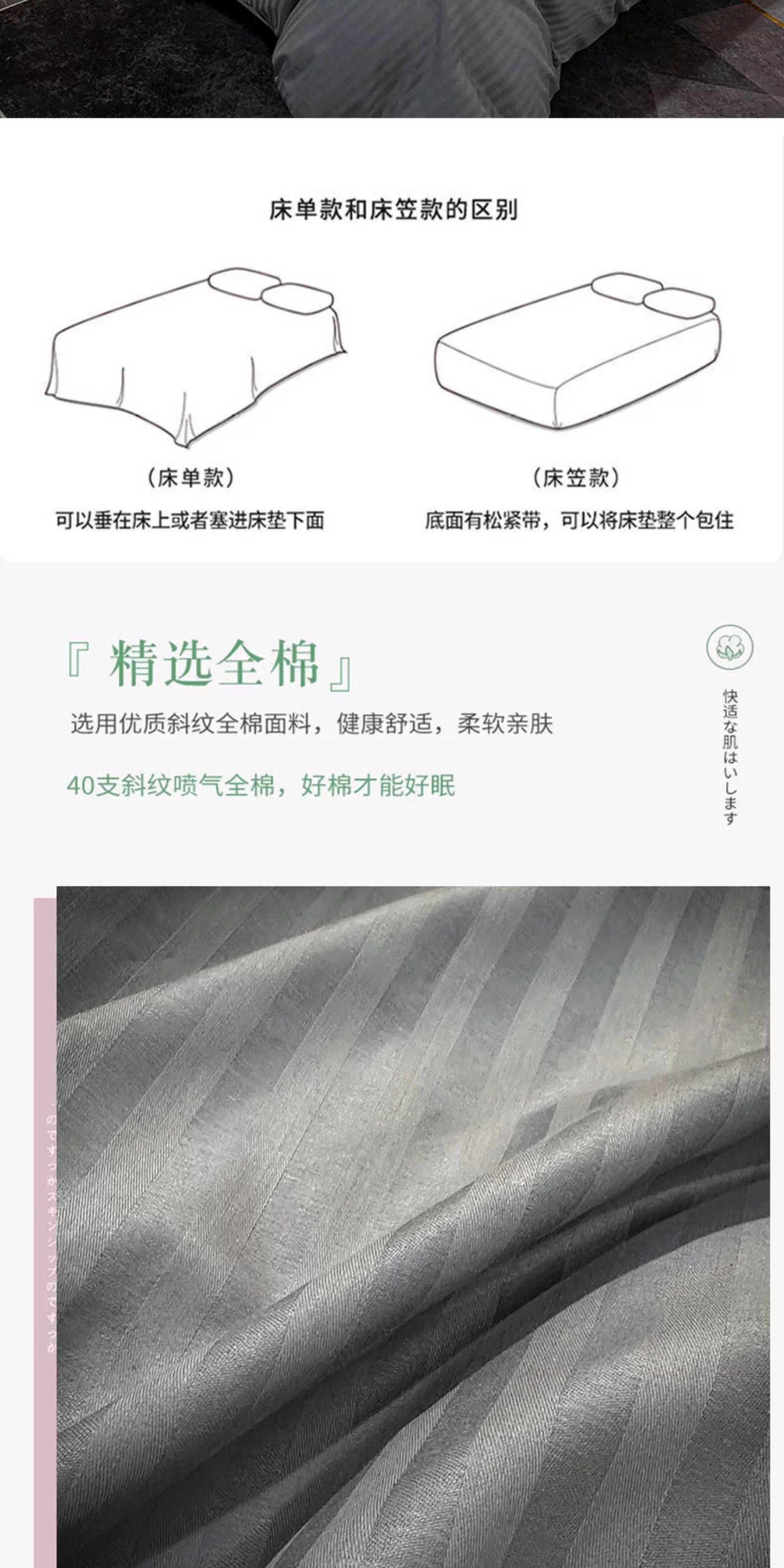 | Applicable Bed Size | 1.2m Bed Sheet Three-Piece Set[Suitable for Quilt 150×200],1.5m Bed Sheet Four-Piece Set[Suitable for Quilt 200×230],1.8m Bed Sheet Four-Piece Set[Suitable for Quilt 200×230],2.0m Bed Sheet Four-Piece Set[Quilt Cover 220×240cm],1.5m Fitted Sheet Set of Four,1.8m Fitted Sheet Set of Four |