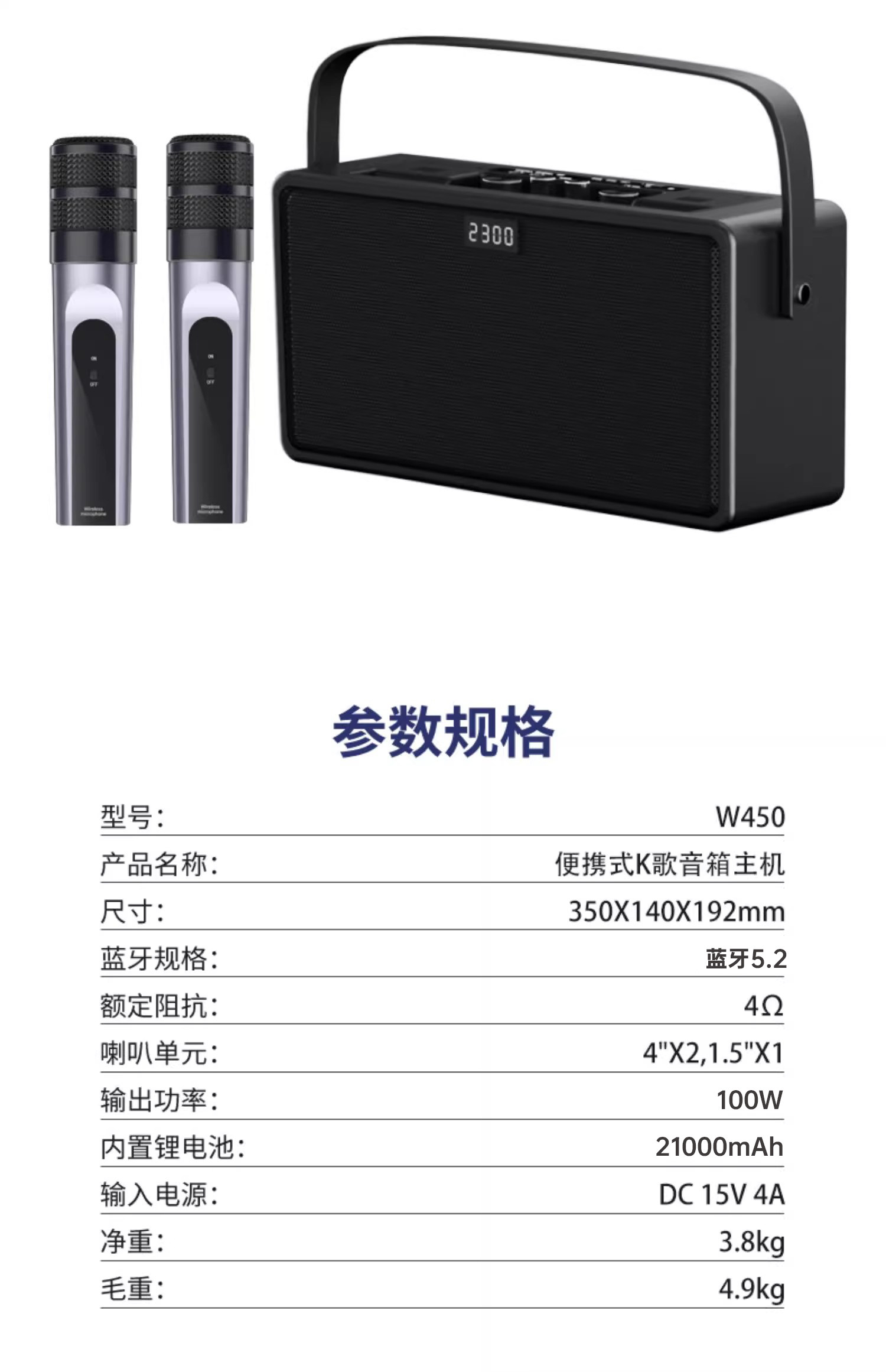 | Color Classification | [Plug-In Model]100W High Power/Dual Microphone/Built-In Sound Card,[Rechargeable Model]100W High Power/Dual Microphone/Built-In Sound Card |