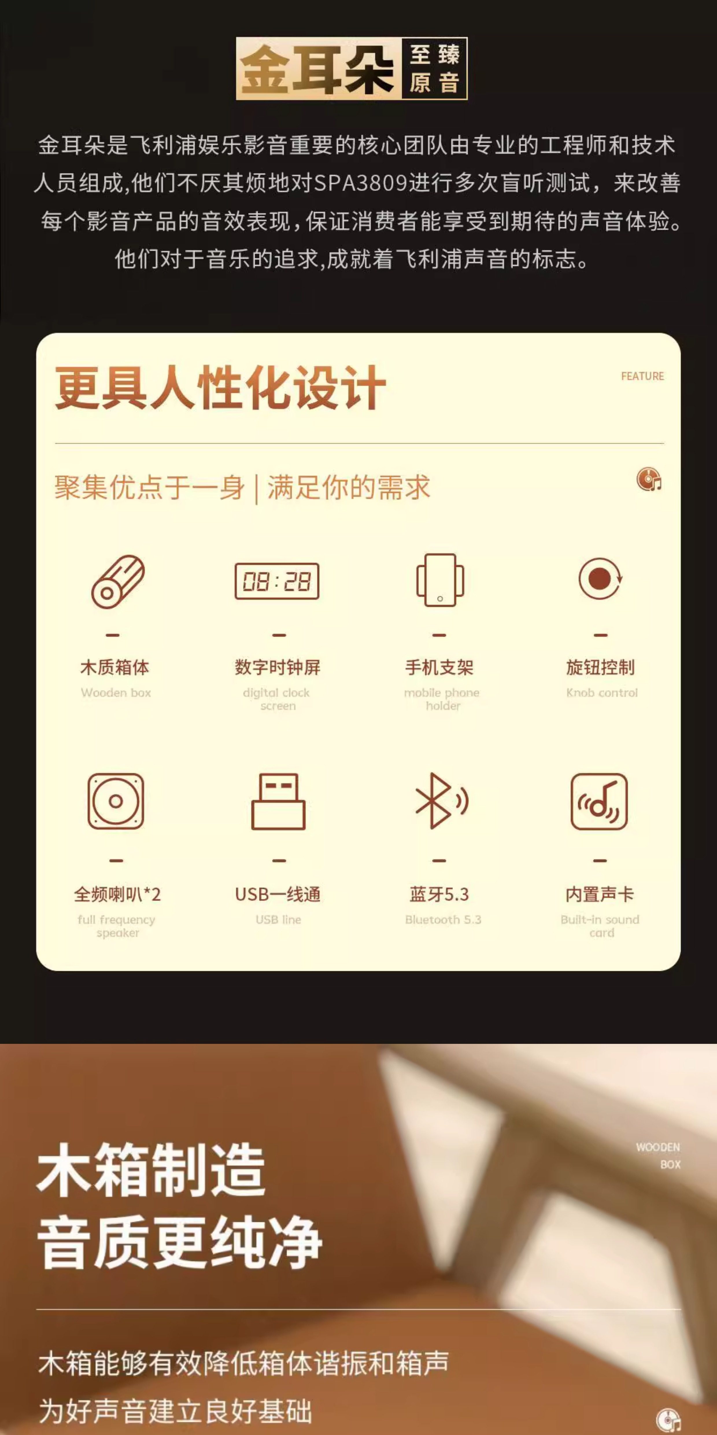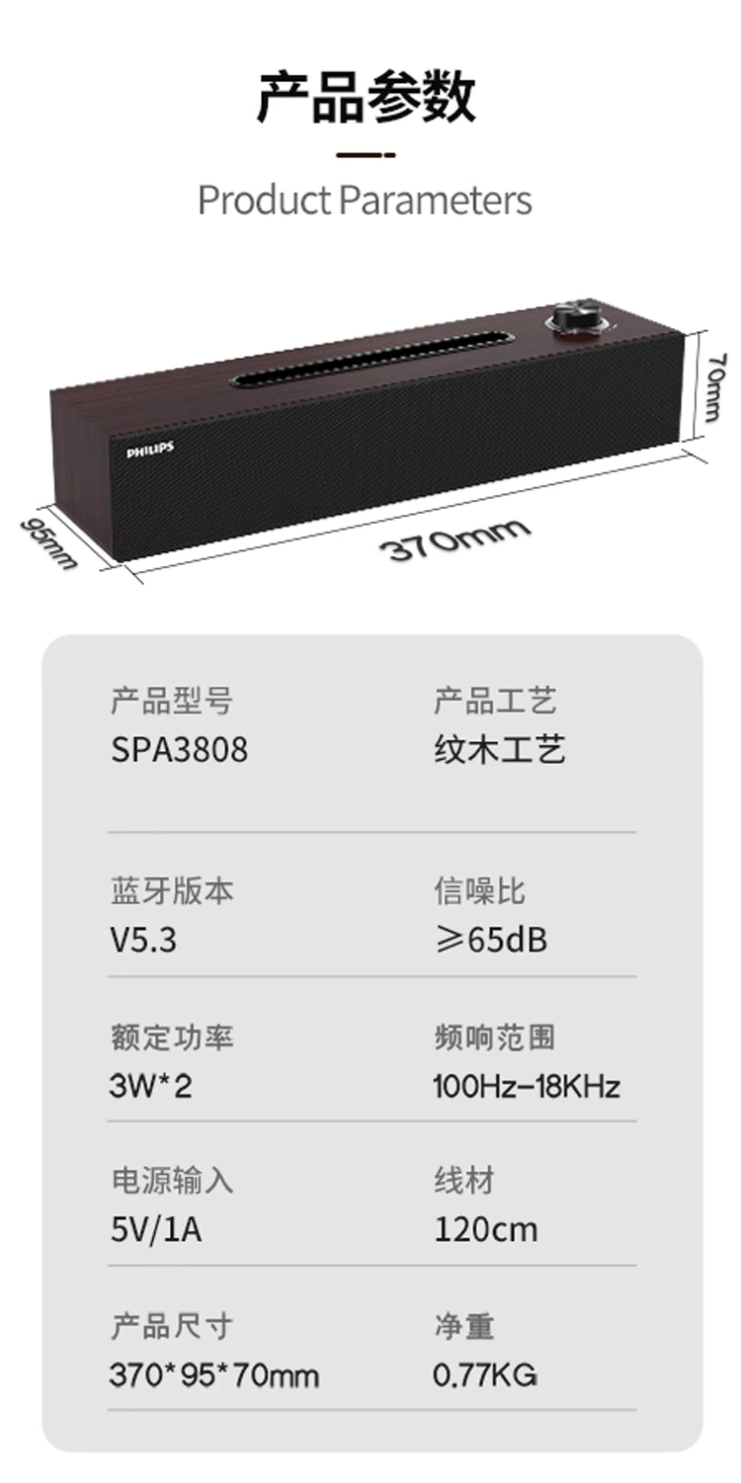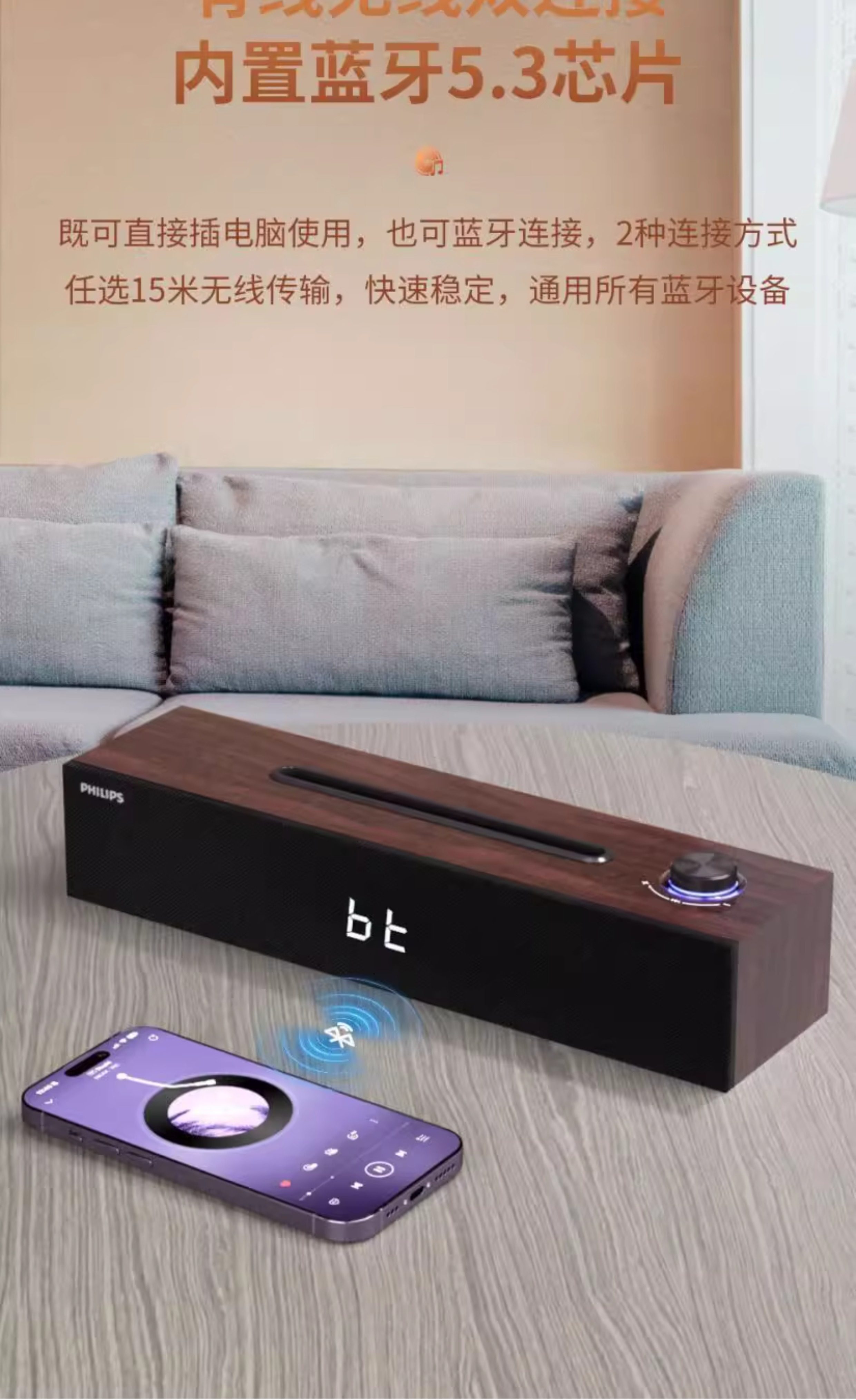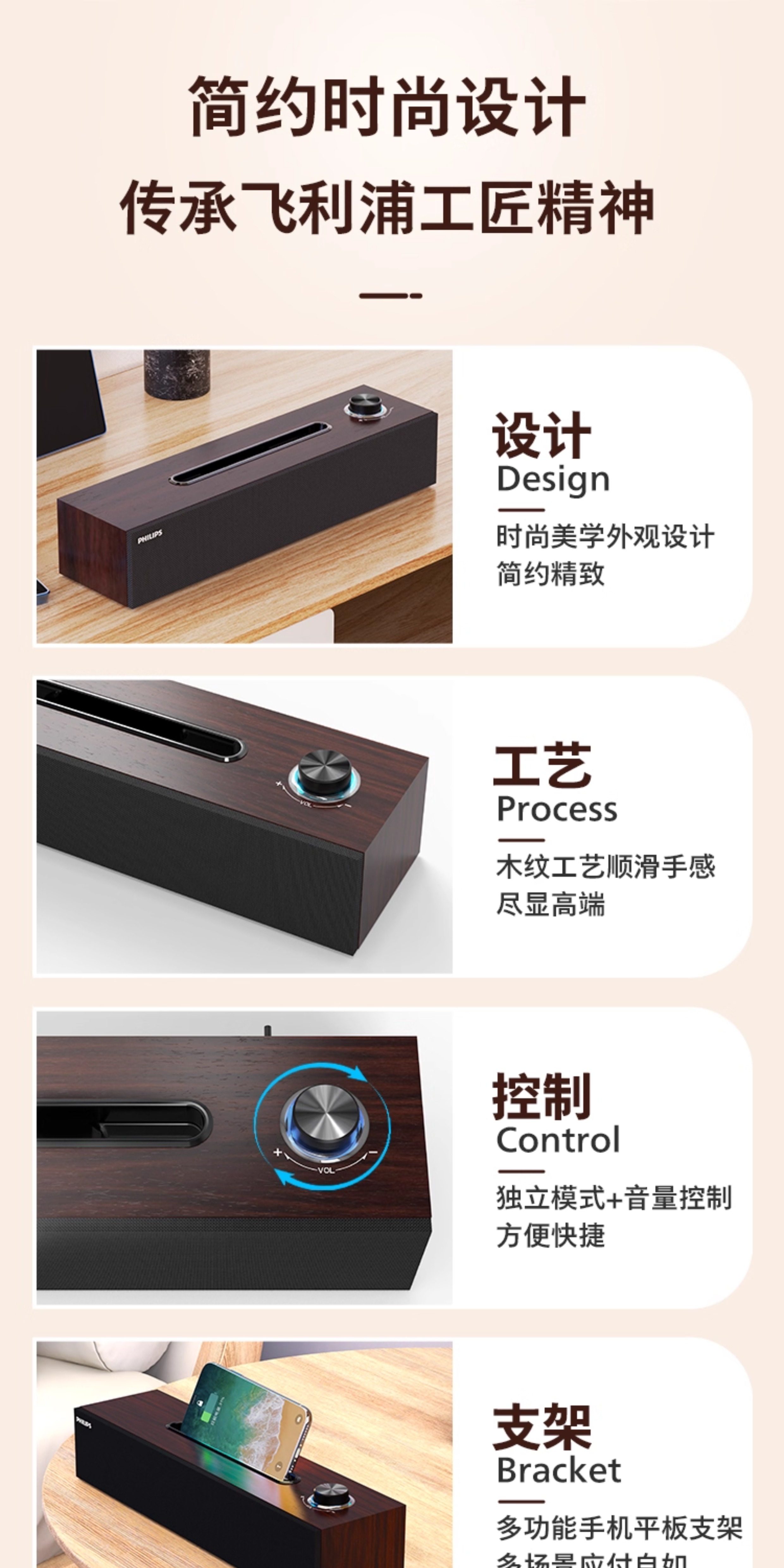 Philips Spa3809 Wooden Speaker Computer Audio Desktop Laptop Desktop Bluetooth Home Mobile Phone Stand