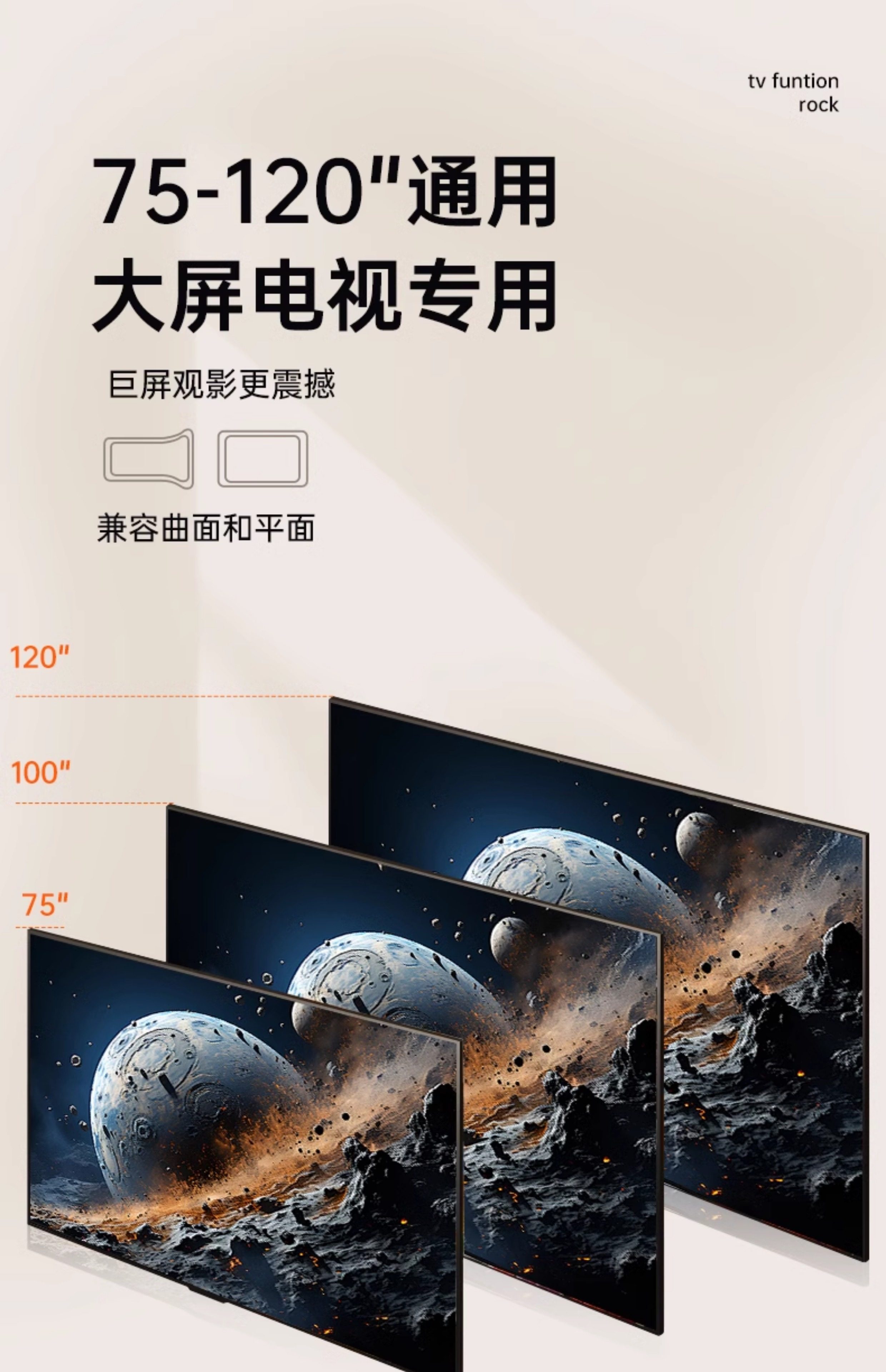 | Color Classification | 2025 New Model[50-80inch]4cm Wall Distance,2025 New Model[32-85inch] 4cm Wall Distance,2025 New Model[32-90inch] 4cm Wall Distance,2025 New Model[55-100inch] 4cm Wall Distance,2025 New Model[55-120inch] 4.5cm Wall Distance,2025 New Model[75-130inch]4cm Large Screen Wall,Suitable For/Mm-Level Fine Adjustment, Four-Sided Gap/Thickness Only 3.6cm,Suitable For/Mm-Level Fine Adjustment, Four-Sided Gap/Thickness Only 3.6cm |