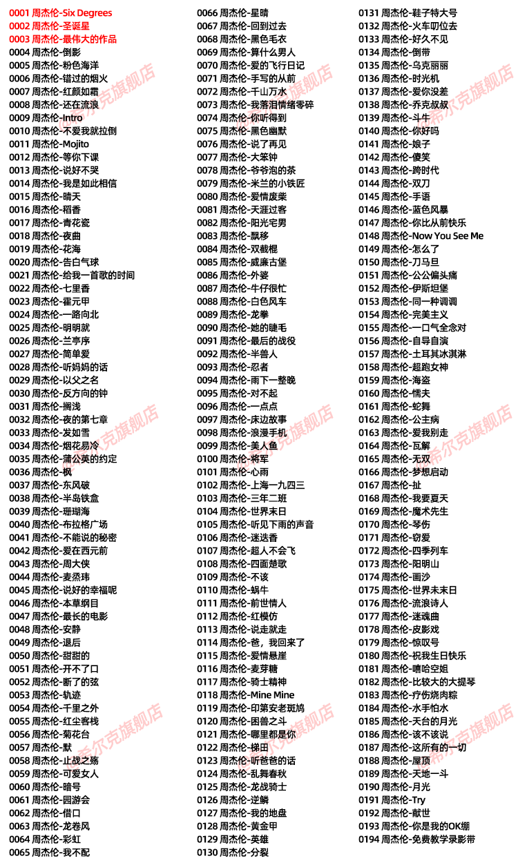 | Color Classification | 1 Package 8Gb [194 Songs/No Video],2 Packages 16Gb [194 Songs + 171 Videos],3 Packages 16Gb [Lossless Hifi Version 194 Songs/No Video],4 Packages 32Gb [Lossless Hifi Version 194 Songs + 171 Videos + 6 Concerts],5-Package 64Gb [Includes All 4 Packages + 600 Popular New Songs],6-Package 32Gb [Choose Your Own 5-Singer Complete Collection, Lossless Hi-Fi Version],7-Package 64Gb [Includes All 4 Packages + 600 Classic Old Songs],8 Packages 16Gb [Lossless Hifi Version: 194 Songs by Jay Chou + 237 Songs by Jj Lin],USB Flash Drive Is Sent by Default! if You Insert a Tf Card/Sd Card, Please Leave a Message~ |