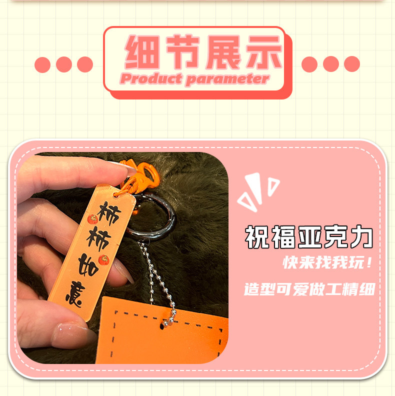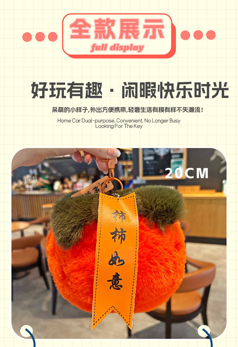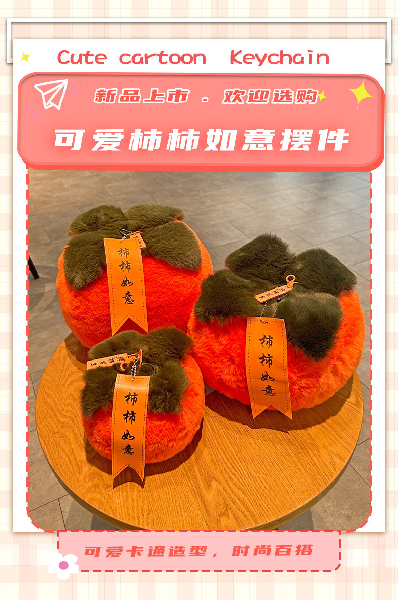 Cute Raccoon Fur Little Persimmon Car Keychain Plush Pendant, Good Luck Persimmon Living Room Hanging Ornament Decoration