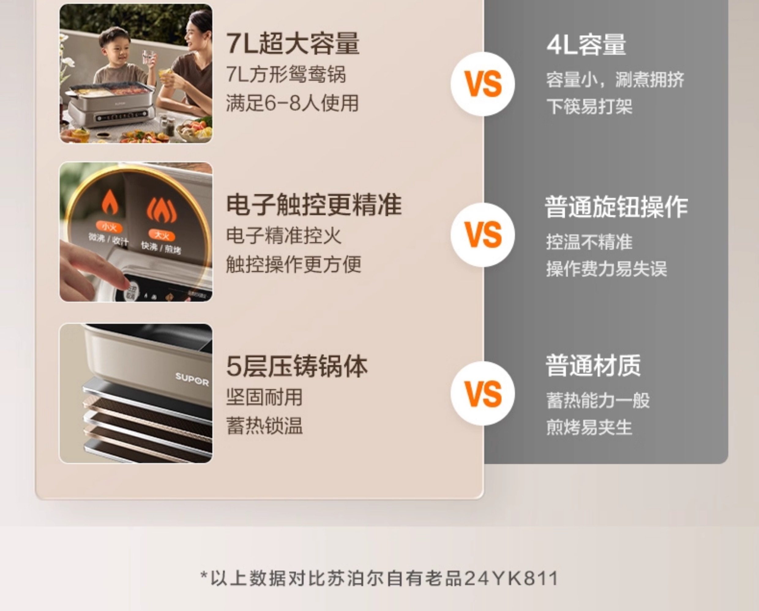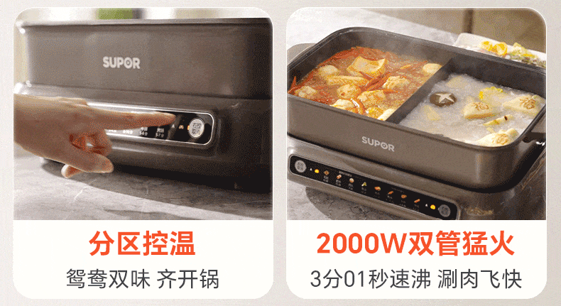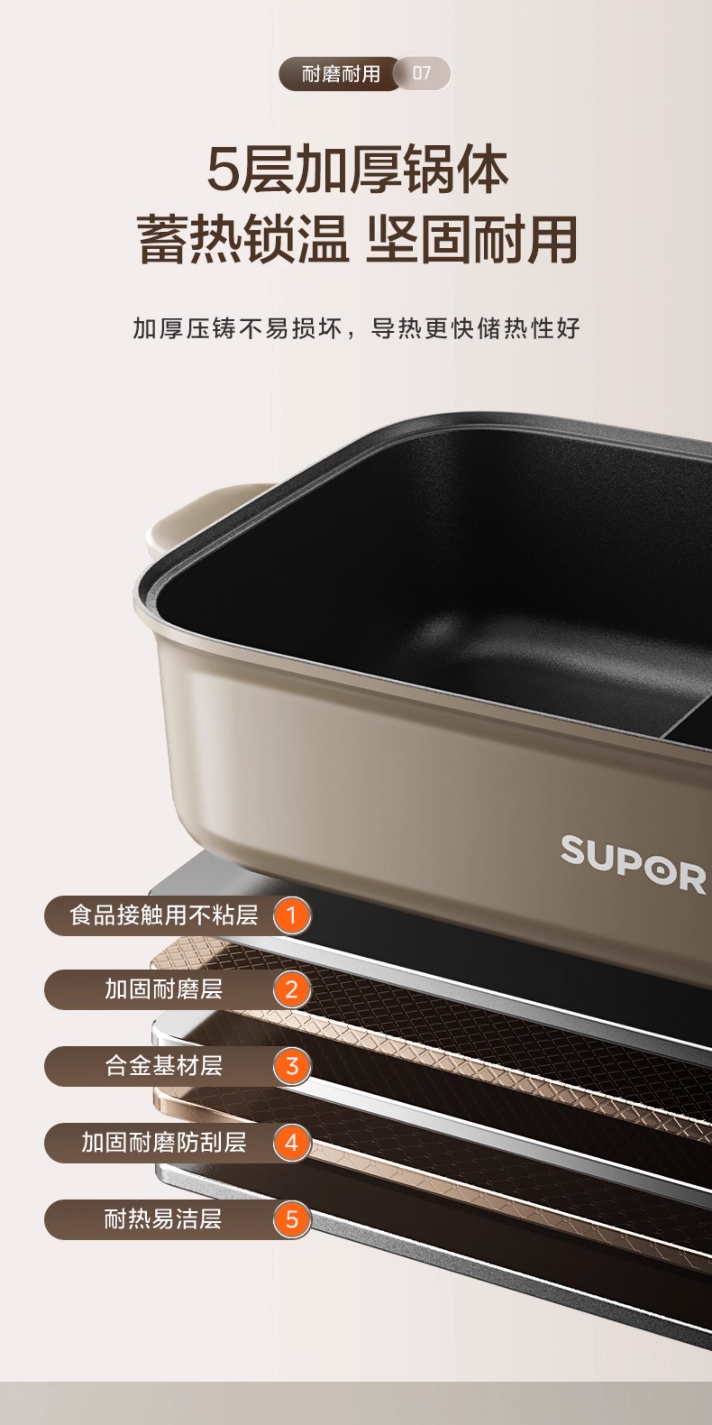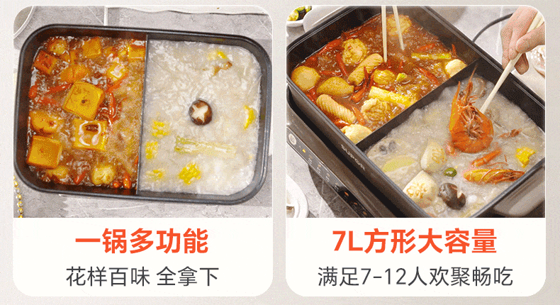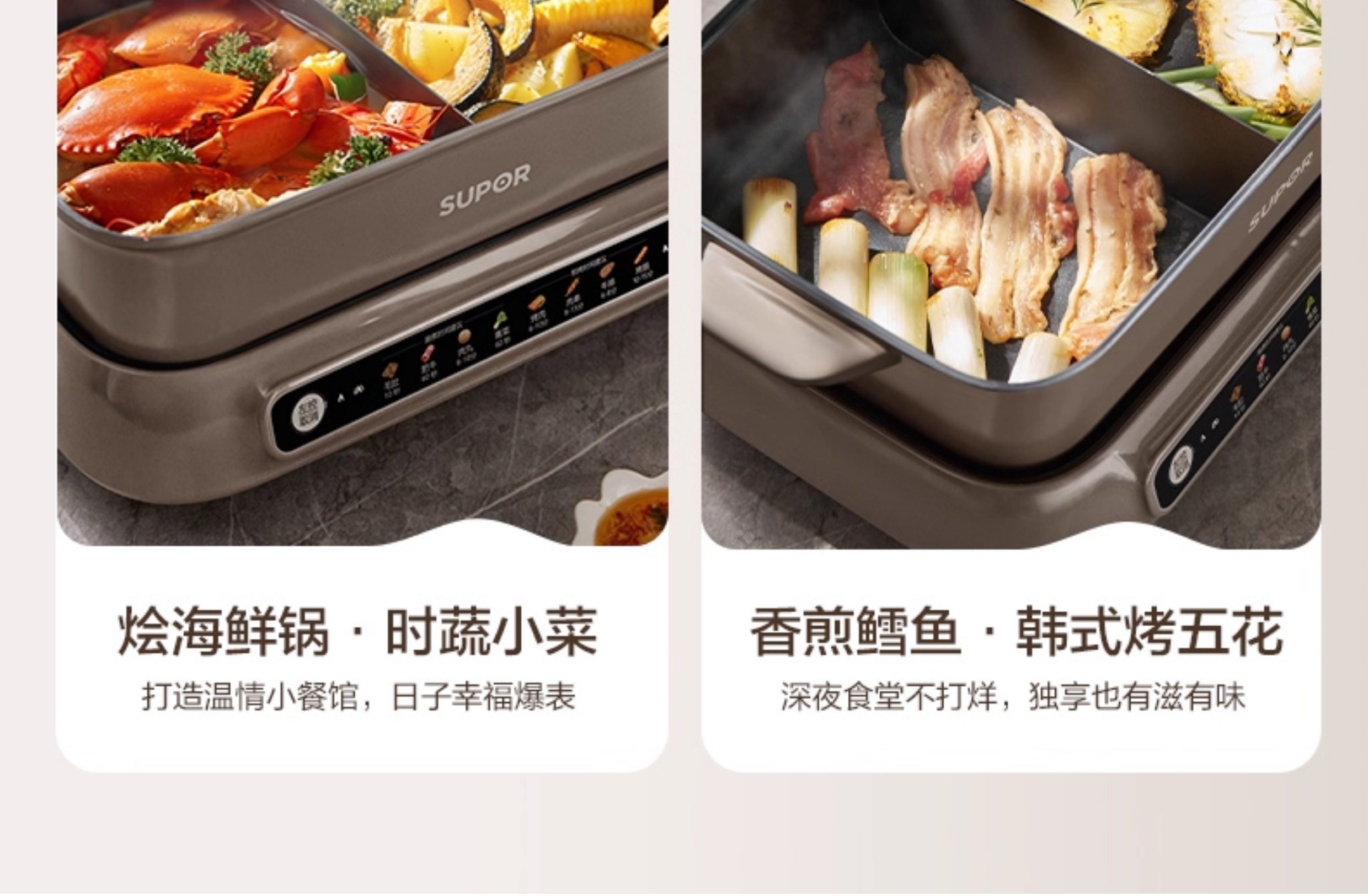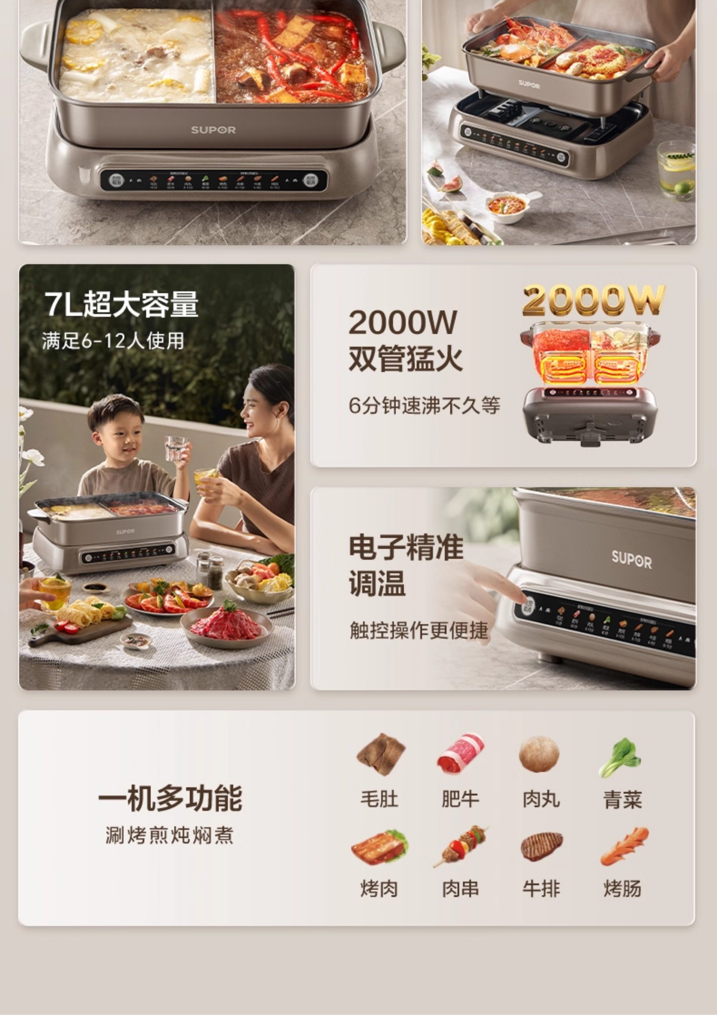 Supor Yuanyang Pot Hot Pot for Home Use, New Model 7L Large Capacity Electric Hot Pot, Multifunctional Grilling, Detachable Integrated Hot Pot