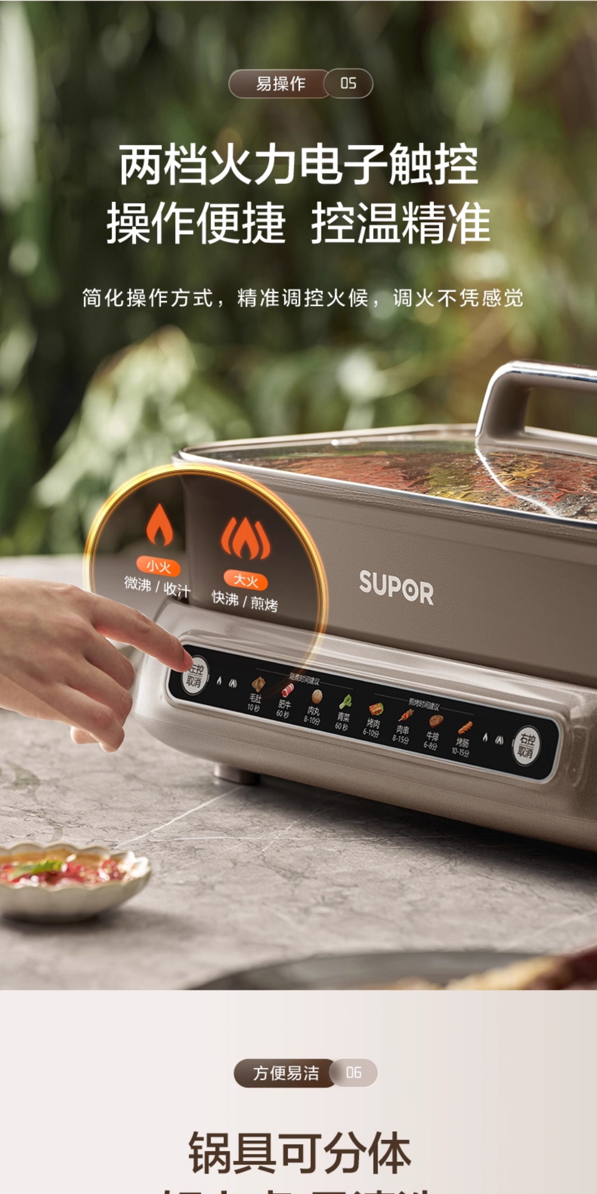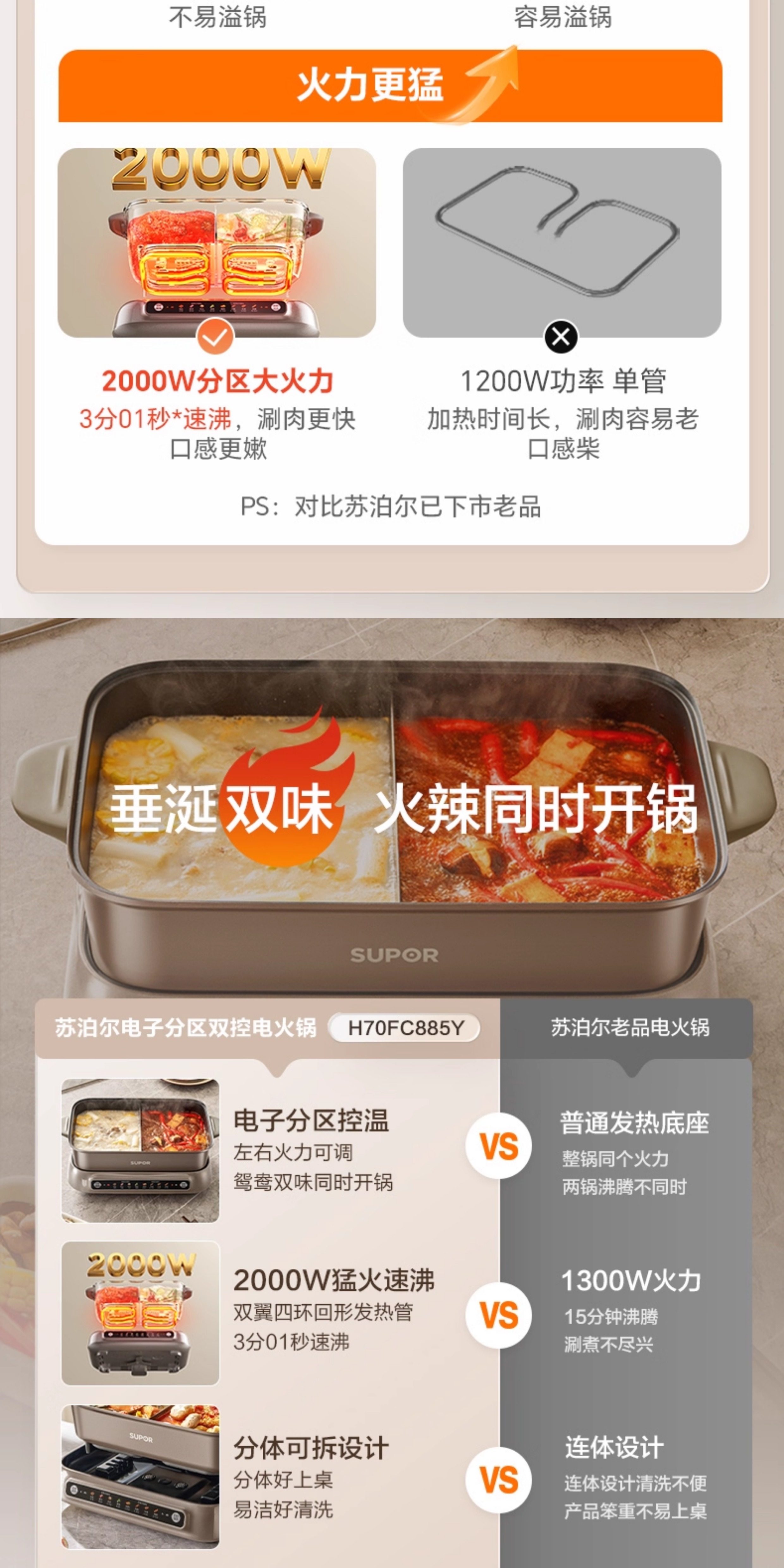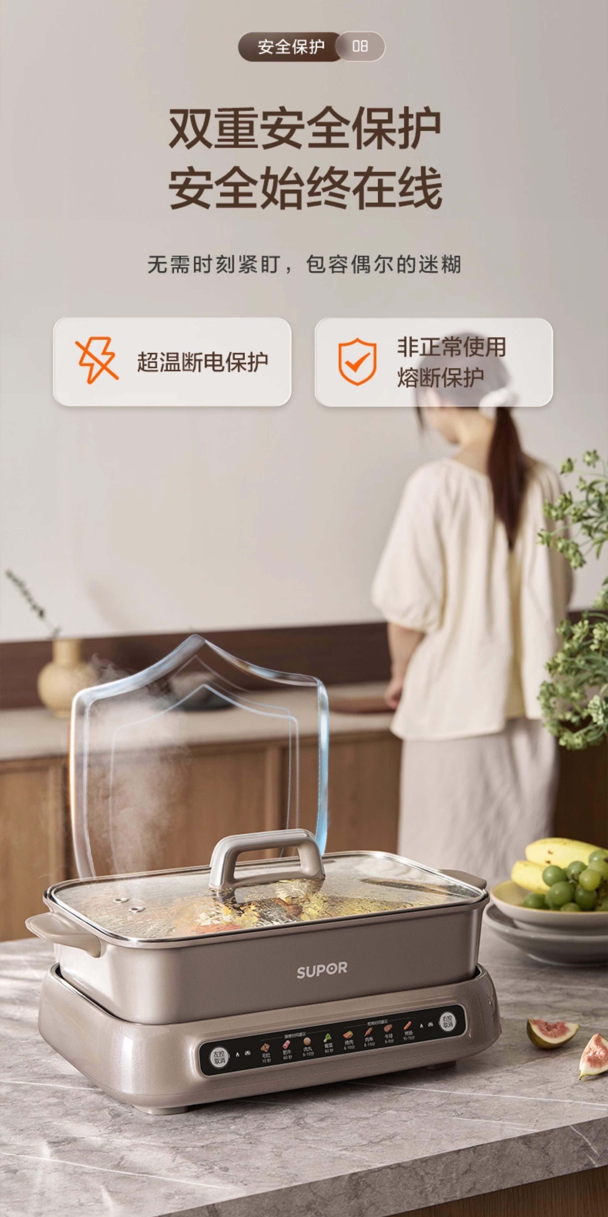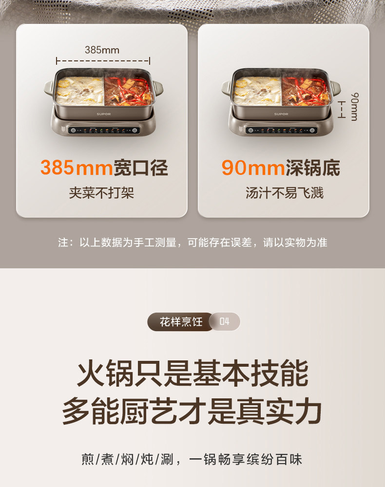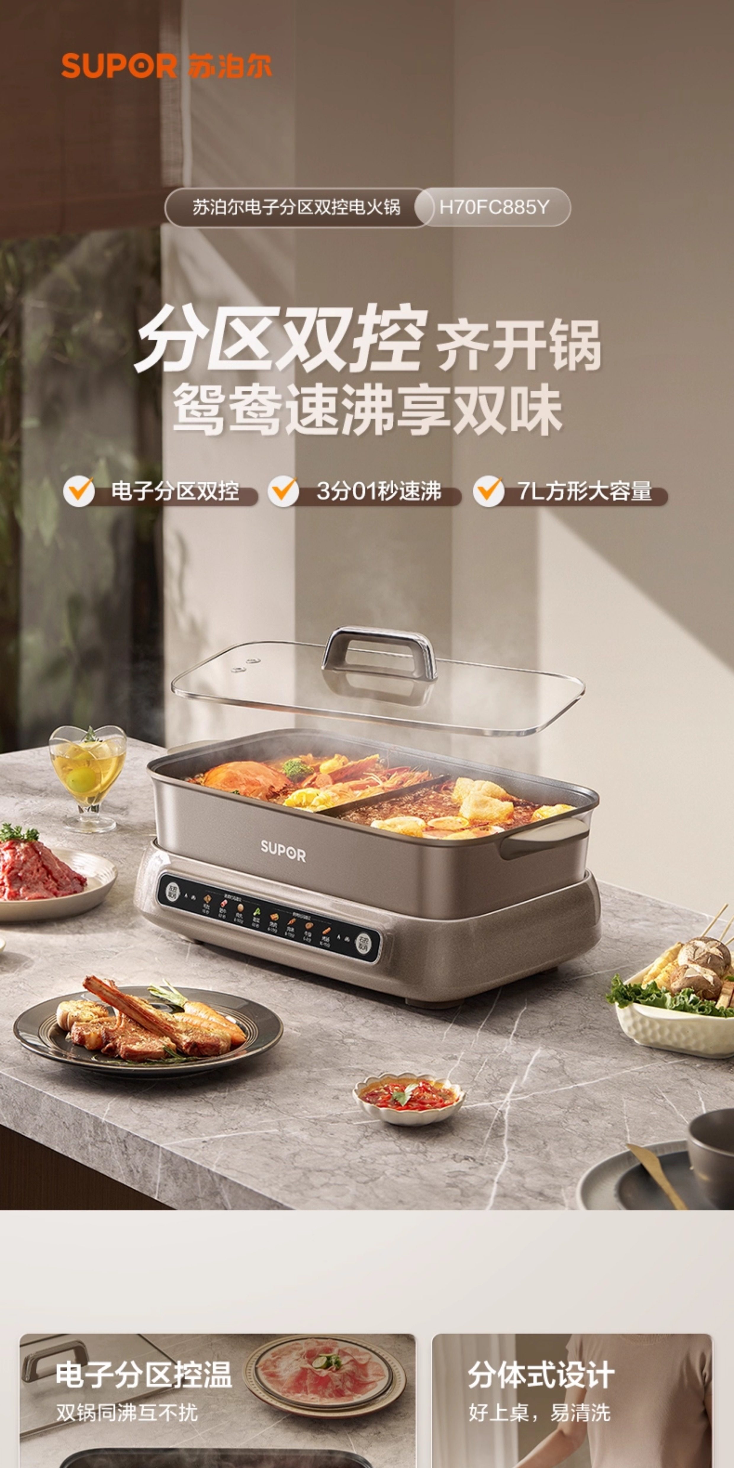 Supor Yuanyang Pot Hot Pot for Home Use, New Model 7L Large Capacity Electric Hot Pot, Multifunctional Grilling, Detachable Integrated Hot Pot