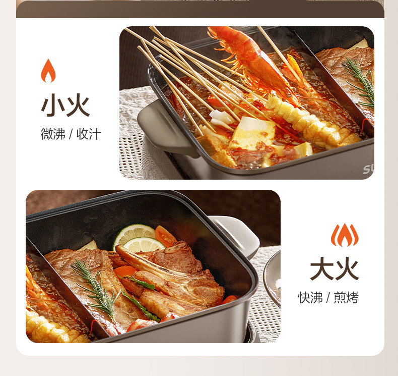 | Electric Heating/Hot Pot Function | Heating,Bake,Stew,Hot Pot,Teppanyaki,Simmer,Fry,Fried,Cook,Fried,Soup,Quick Heat,Steam,Shabu-Shabu,Pancake,Cook Noodles |