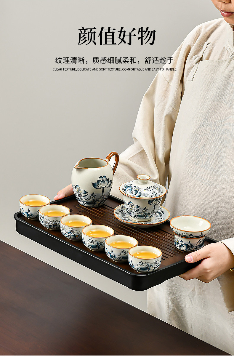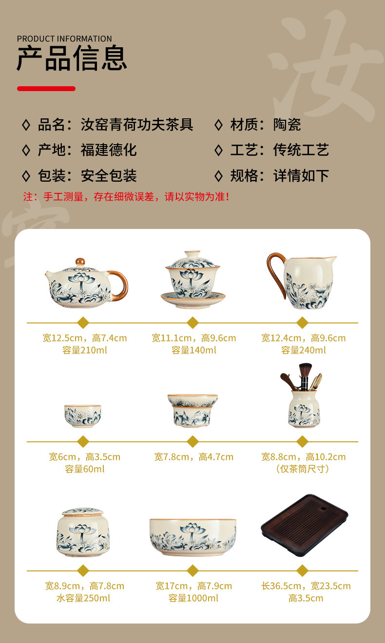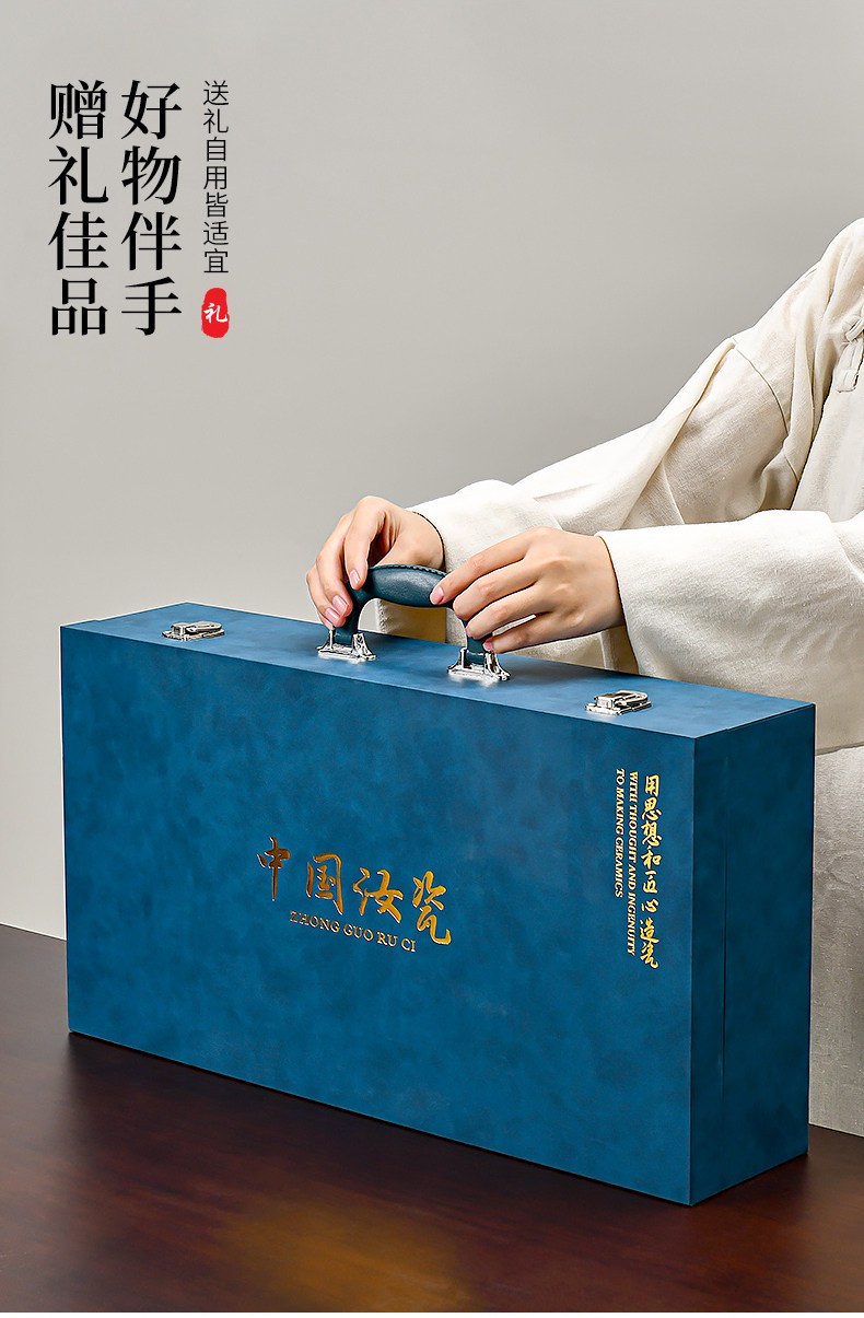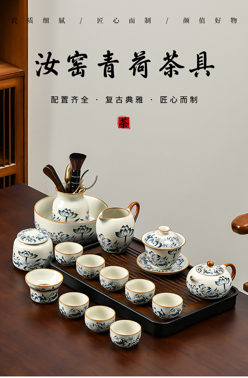 Ruyao Tea Set 2025 New Model for Home Use, High-End Ruyao Porcelain Ceramic Kung Fu Teapot and Teacup Set for Making and Drinking Tea