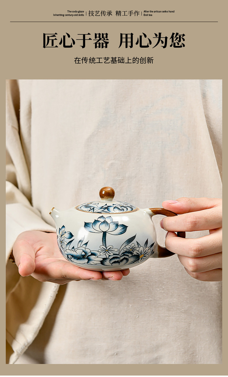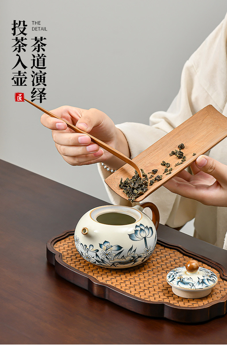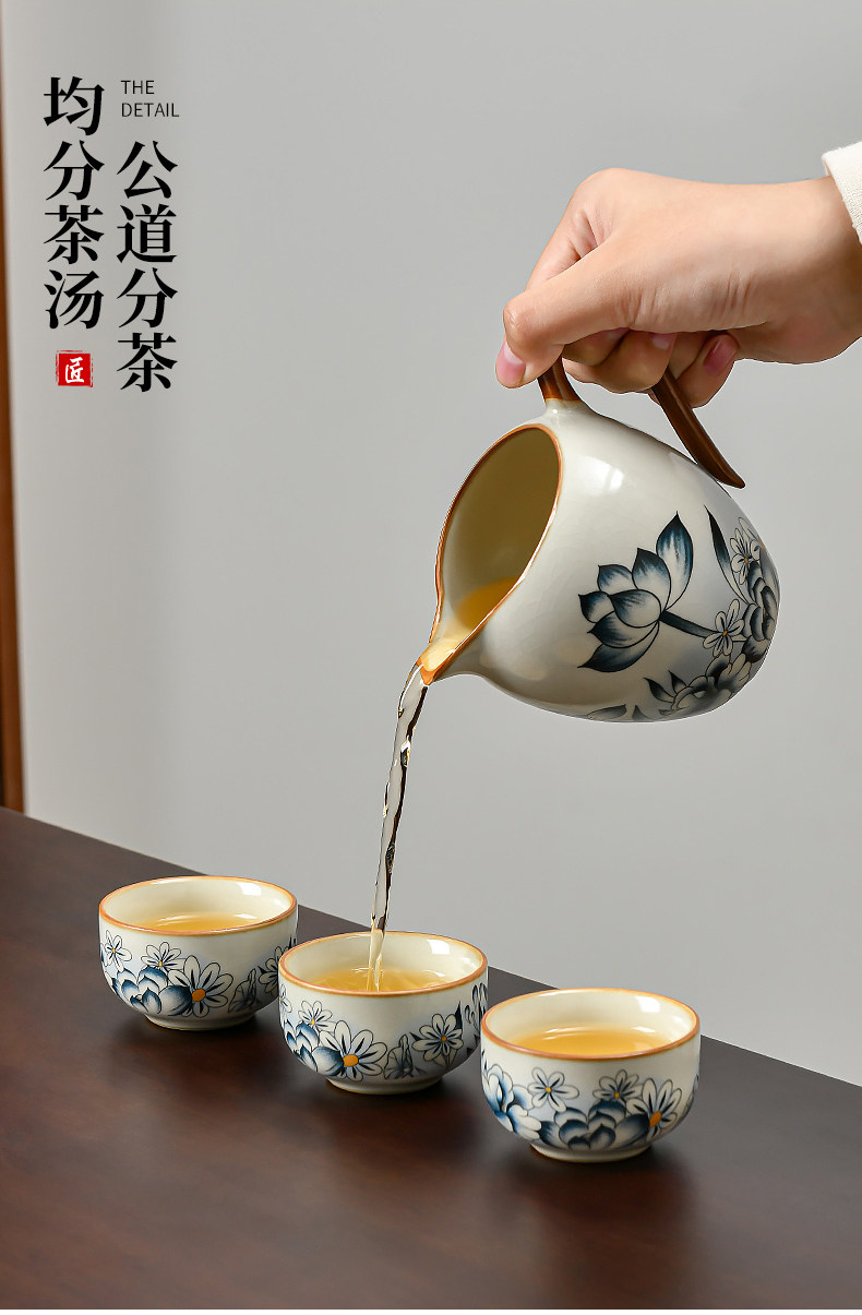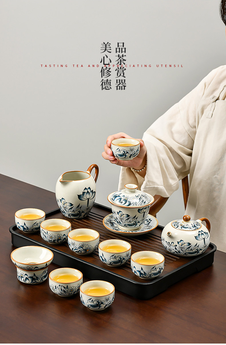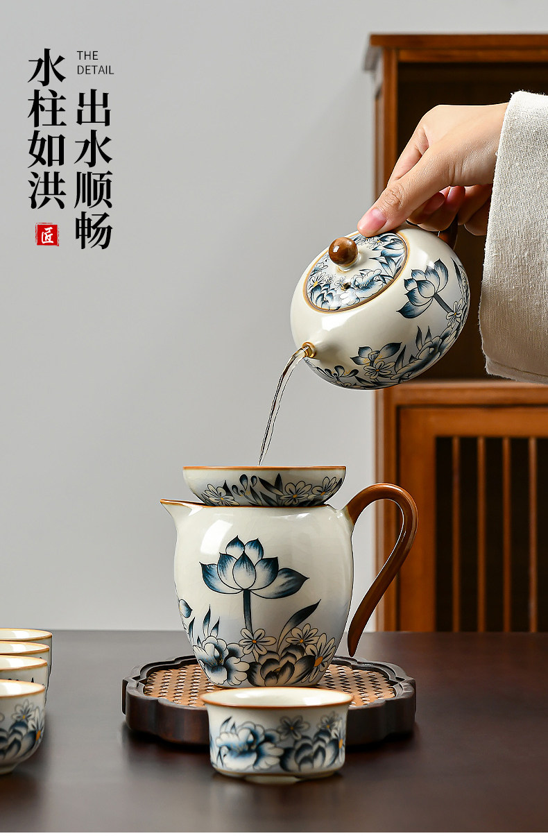 Ruyao Tea Set 2025 New Model for Home Use, High-End Ruyao Porcelain Ceramic Kung Fu Teapot and Teacup Set for Making and Drinking Tea
