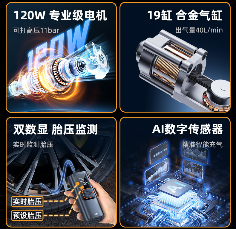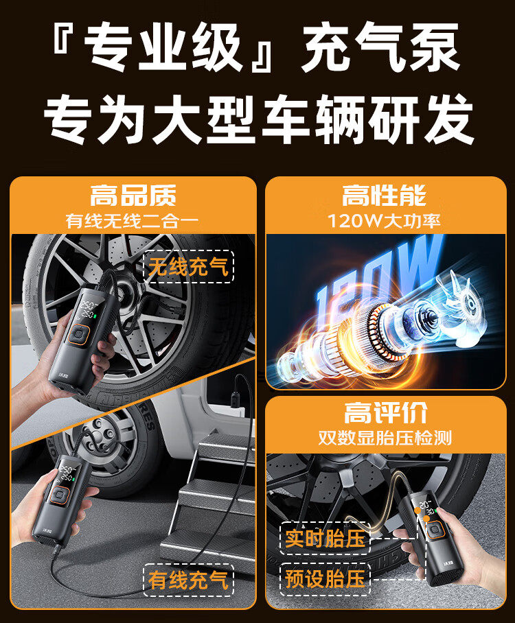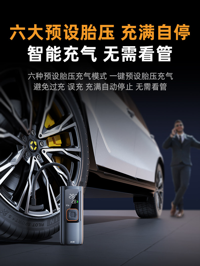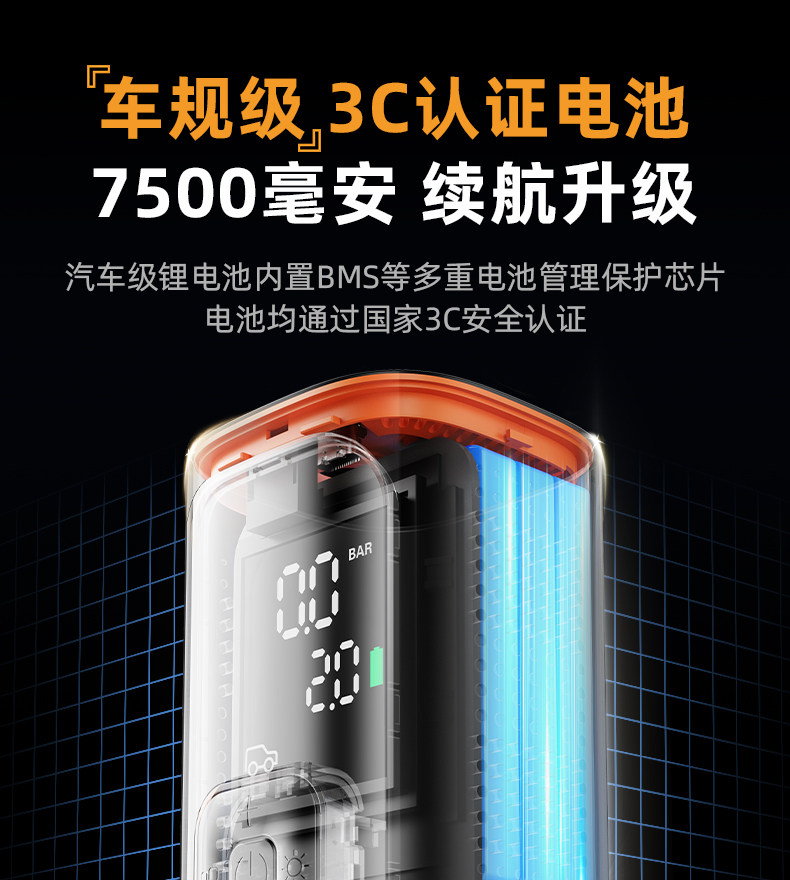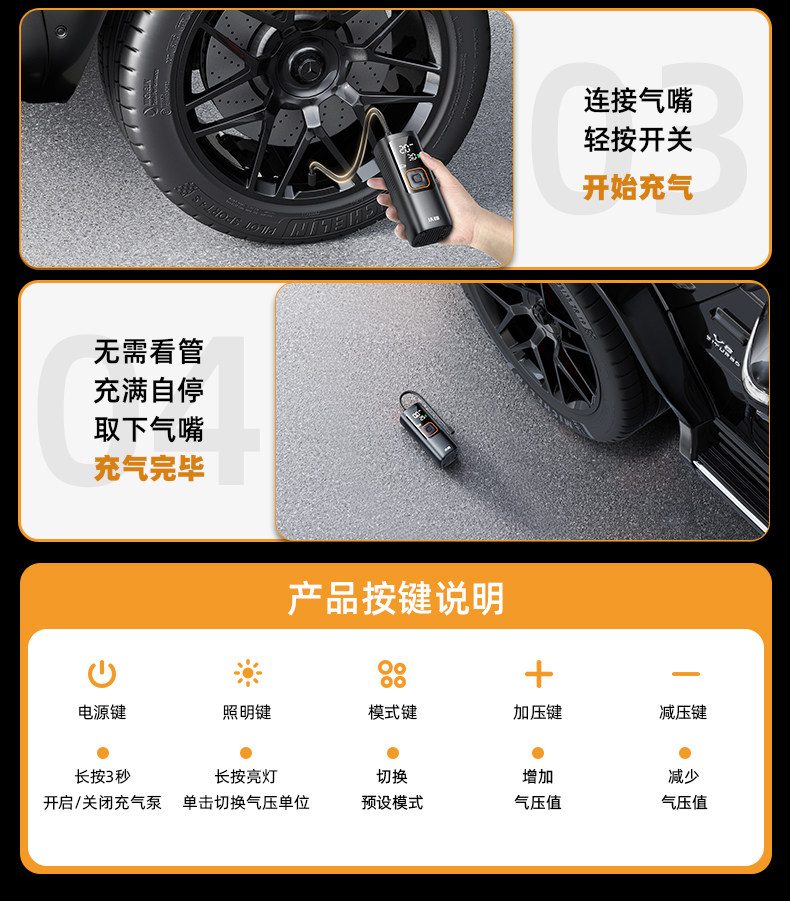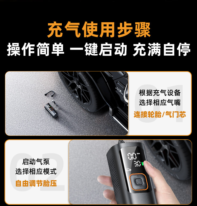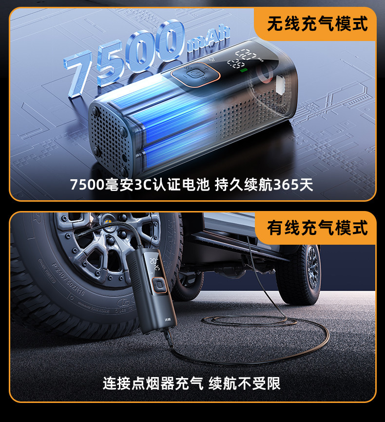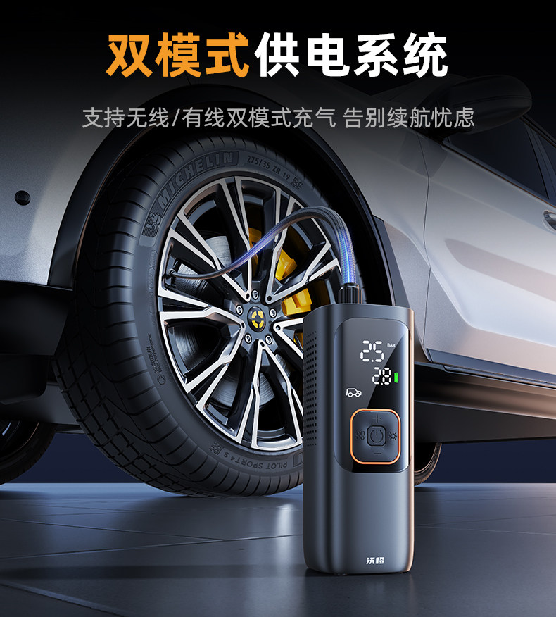 Wocheng Car Air Pump, Wireless Car Air Pump, Dual-Use Wired and Wireless Convenient Electric Air Pump with Tire Pressure Measurement