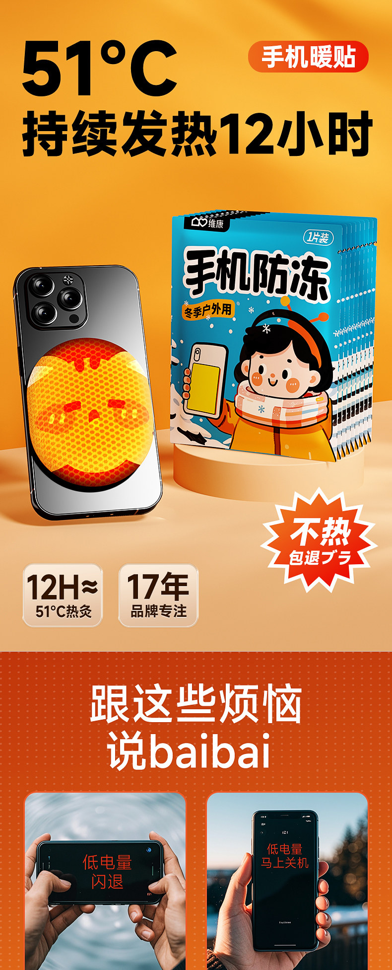 Weikang Mobile Phone Anti-Freeze Warm Patch Outdoor Cold-Resistant Self-Heating Patch Harbin Northeast Travel Winter 1879