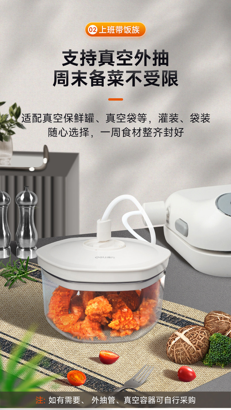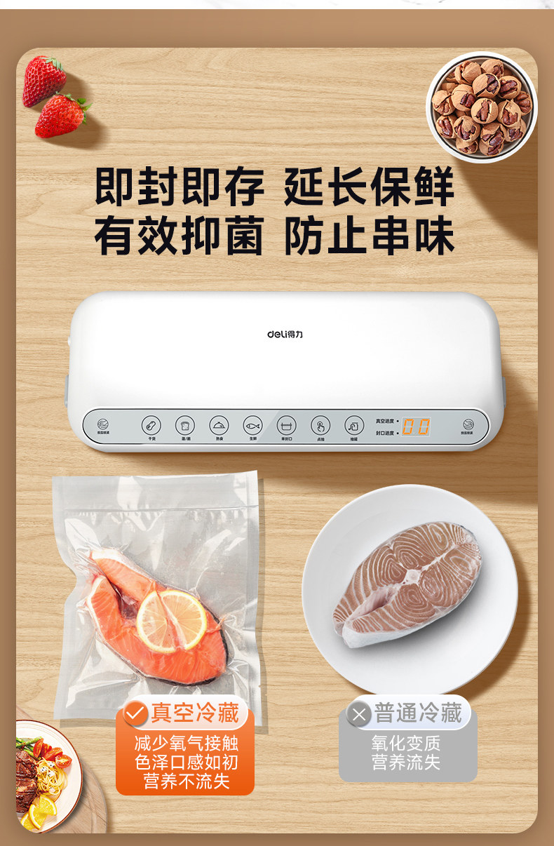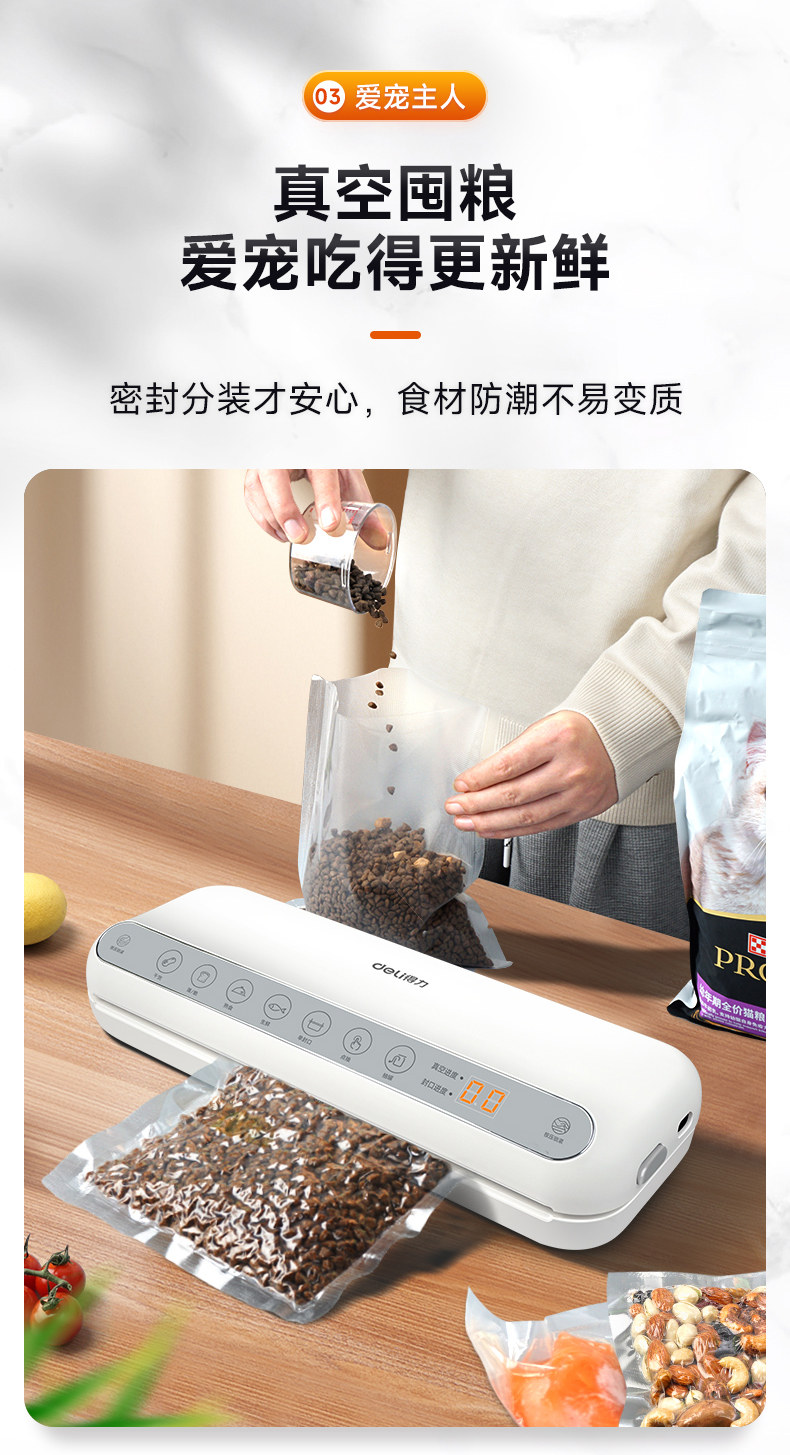 Deli Fully Automatic Vacuum Sealer for Packaging and Sealing Food Bags, Small Household Plastic Sealing Machine for Both Dry and Wet Food Preservation