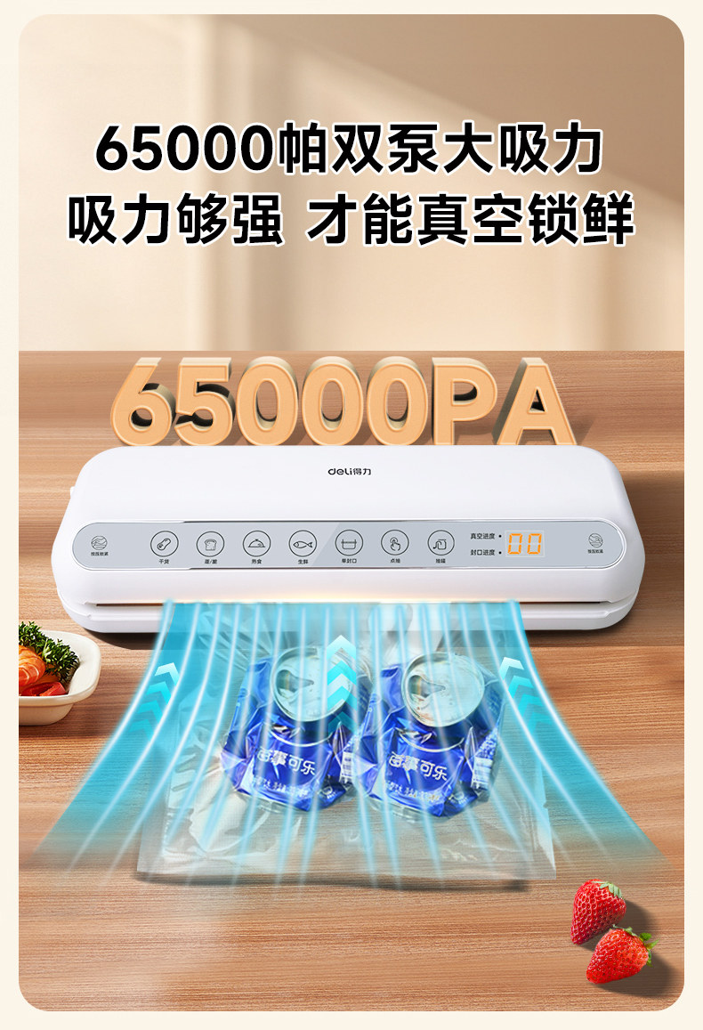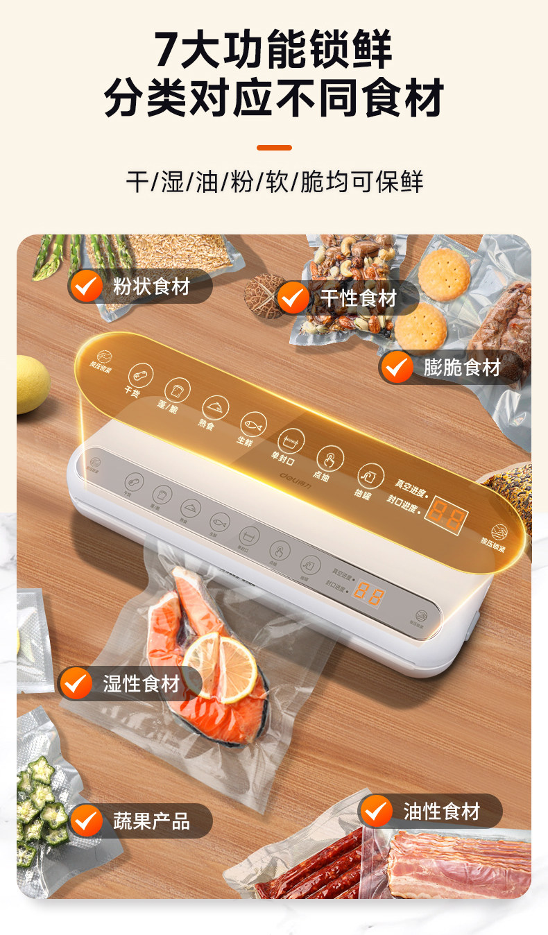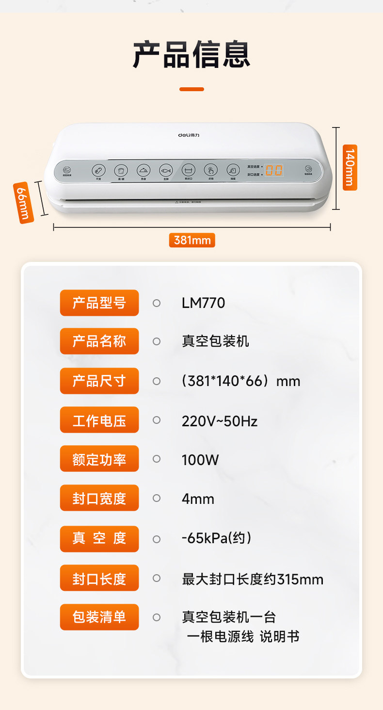 Deli Fully Automatic Vacuum Sealer for Packaging and Sealing Food Bags, Small Household Plastic Sealing Machine for Both Dry and Wet Food Preservation