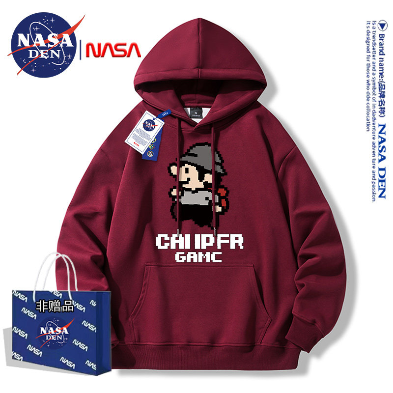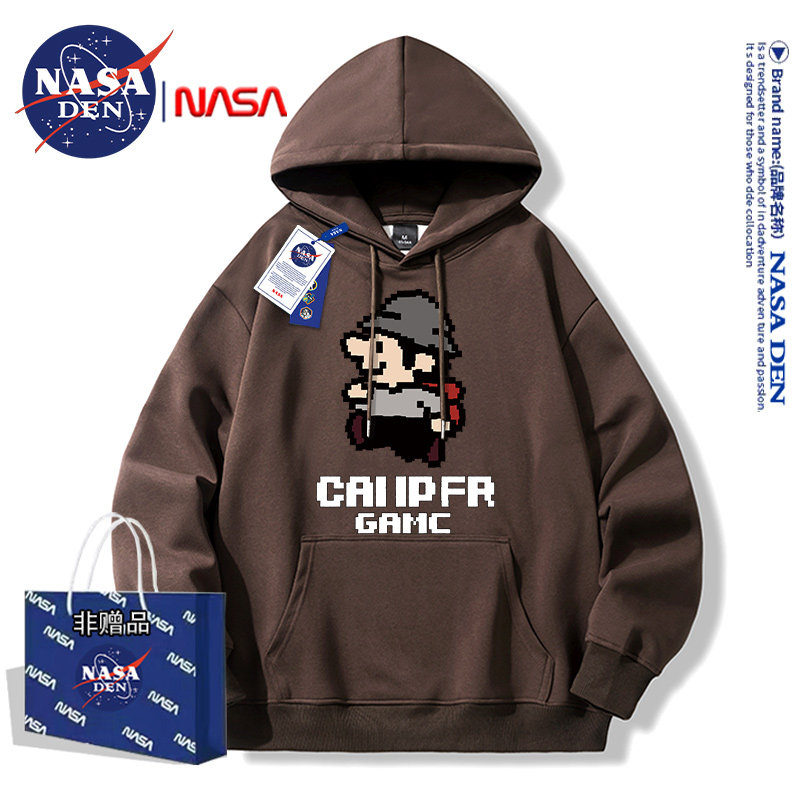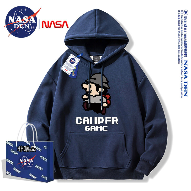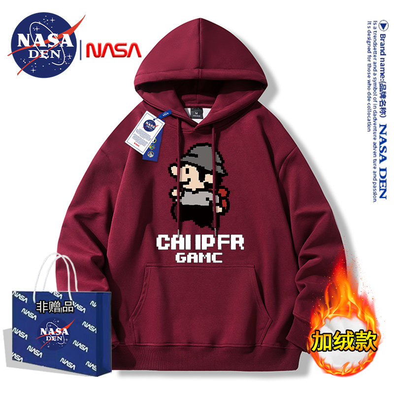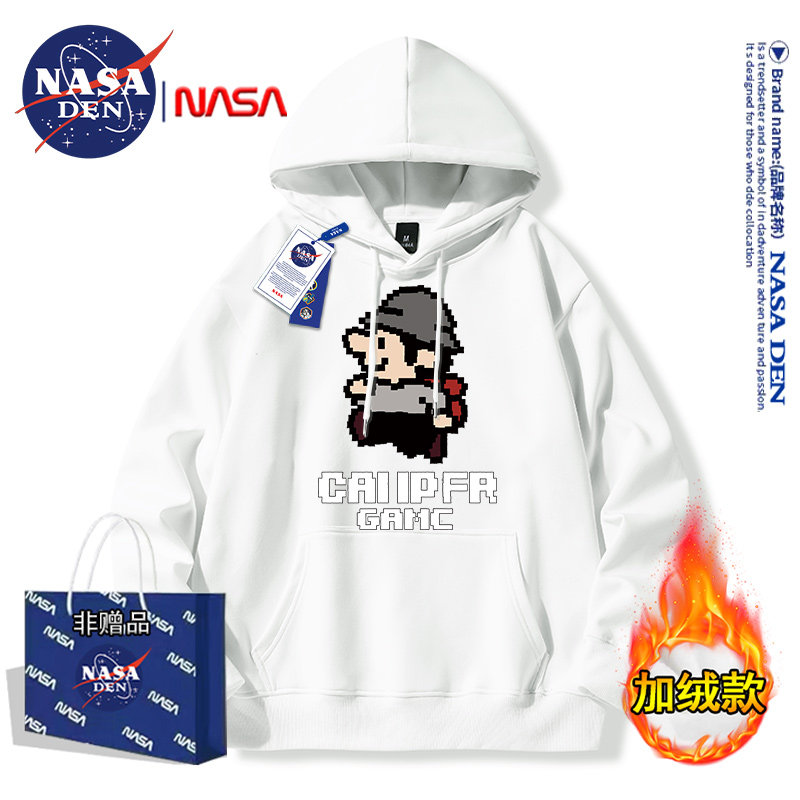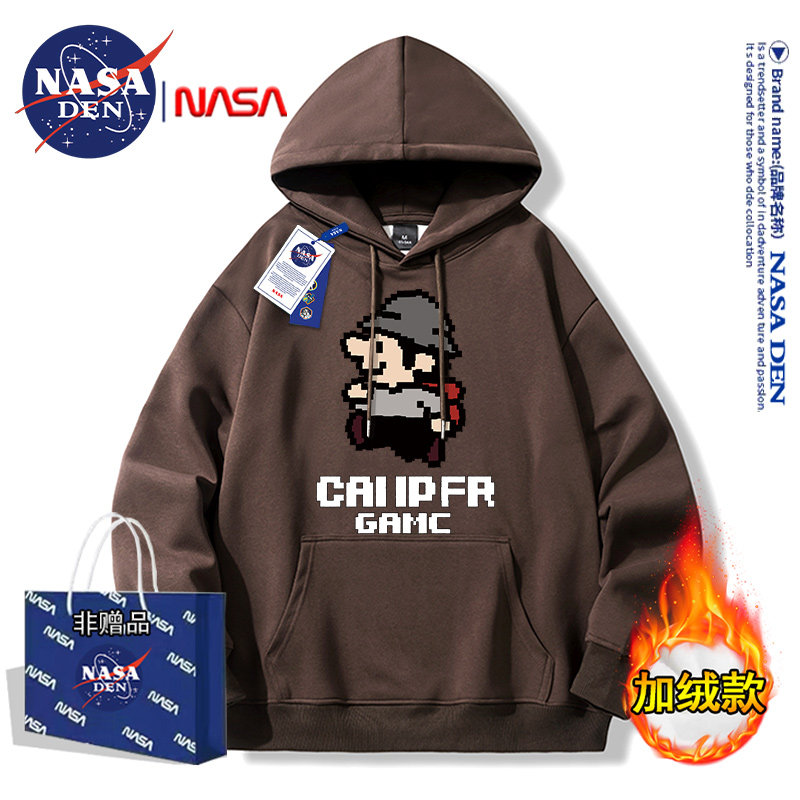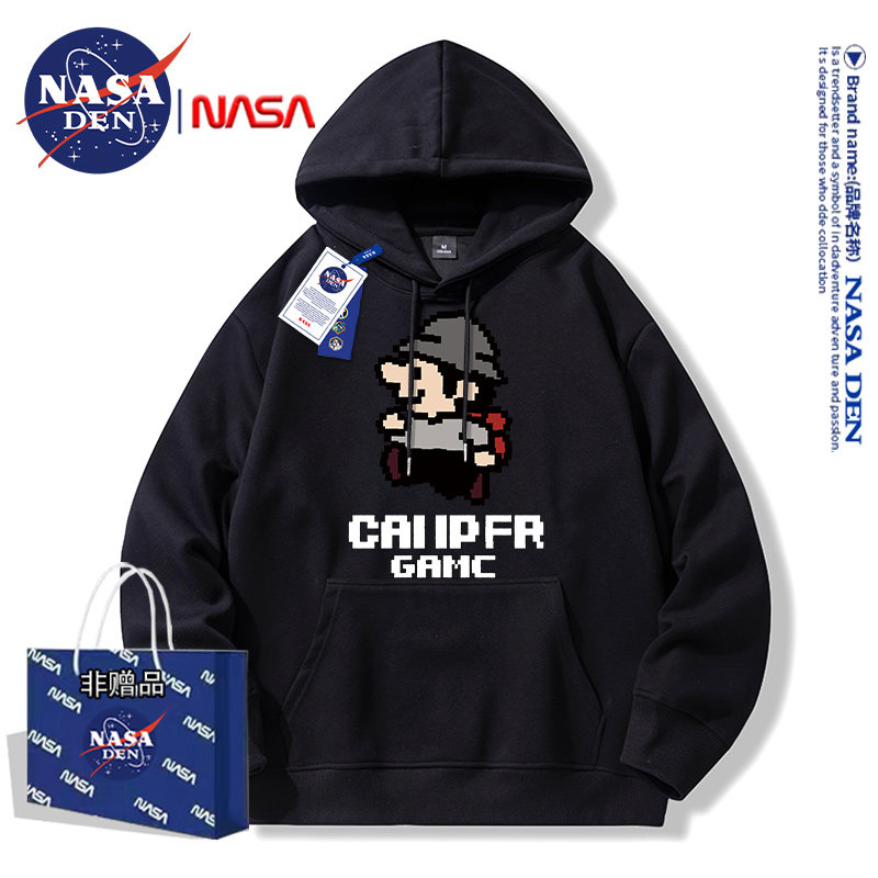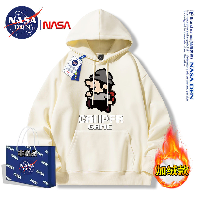 Nasa Co-Branded American-Style Heavyweight Long-Sleeved Hooded Sweatshirt for Men and Women, Autumn and Winter Fleece-Lined Thickened Warm Jacket Top