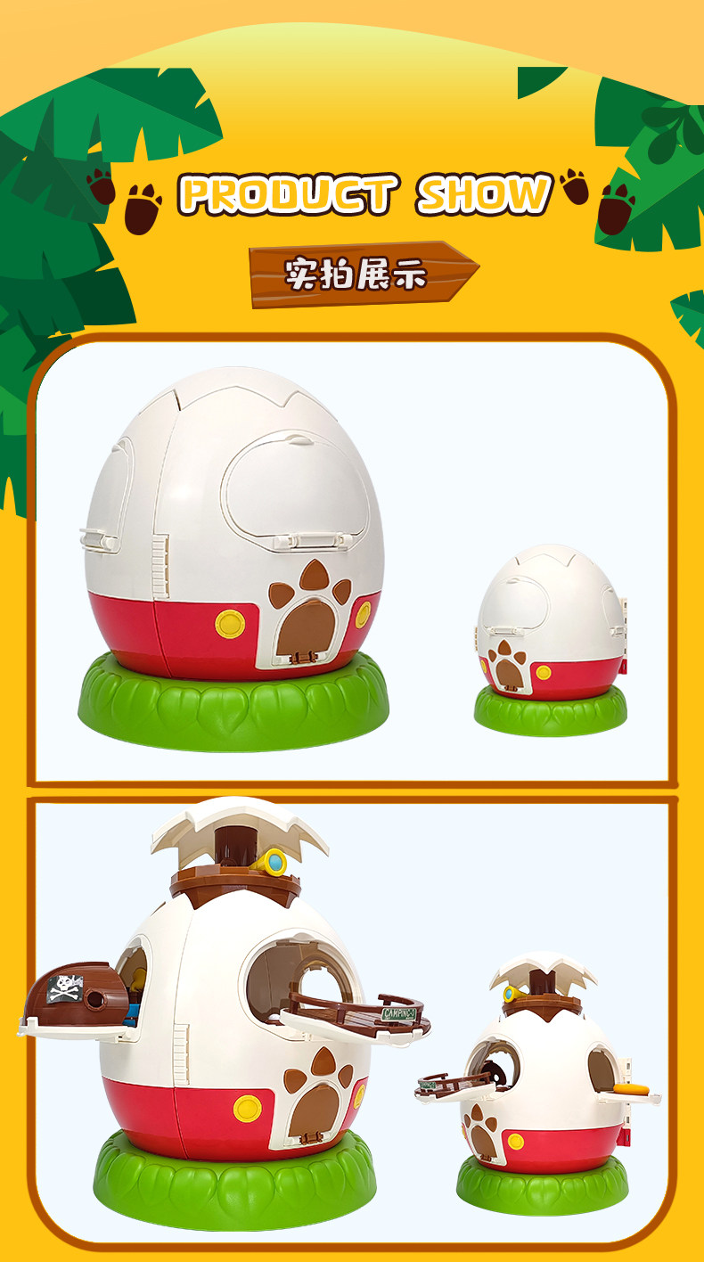 Super Big Egg House Transforming Travel Car Toy Children's Bigfoot Dinosaur Family Sound and Light Egg-Shaped House Set