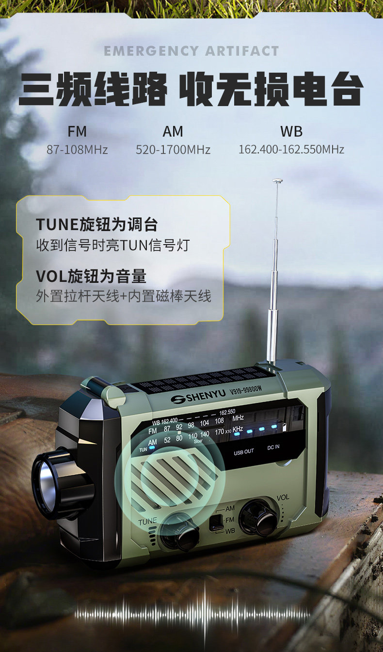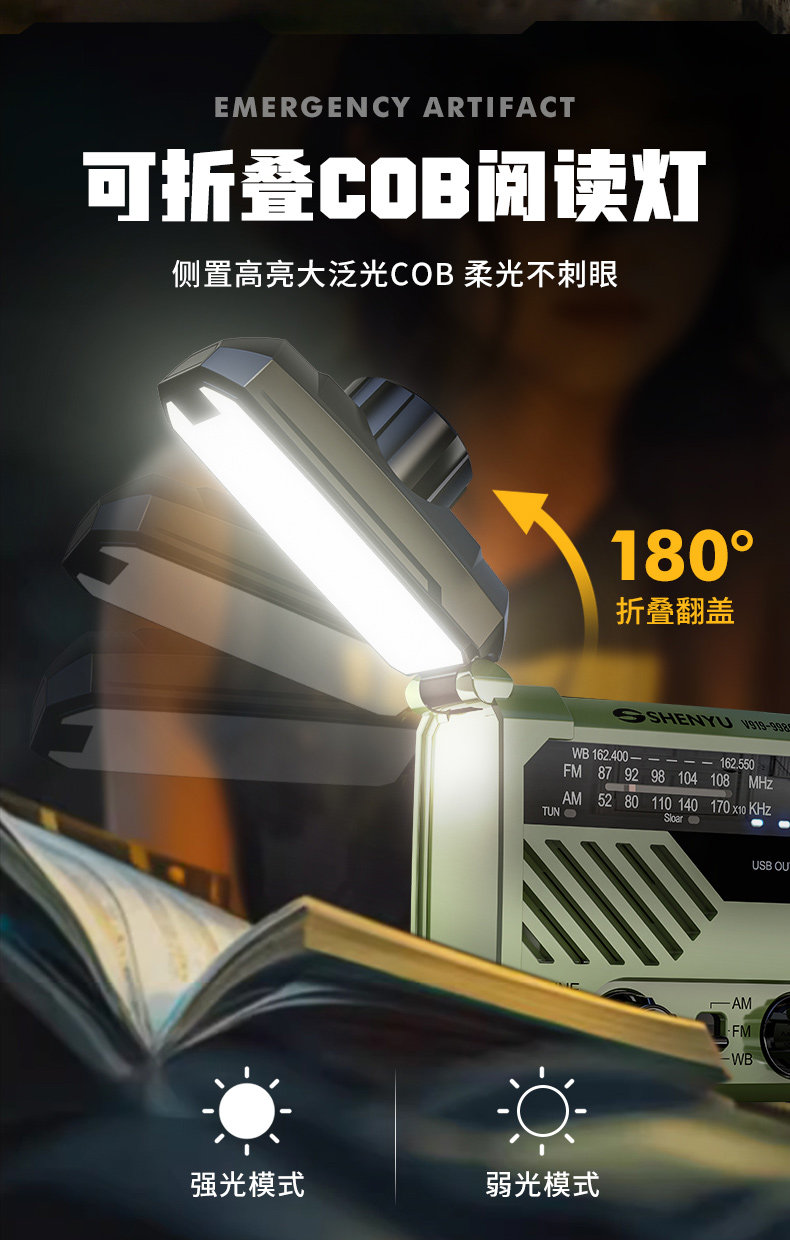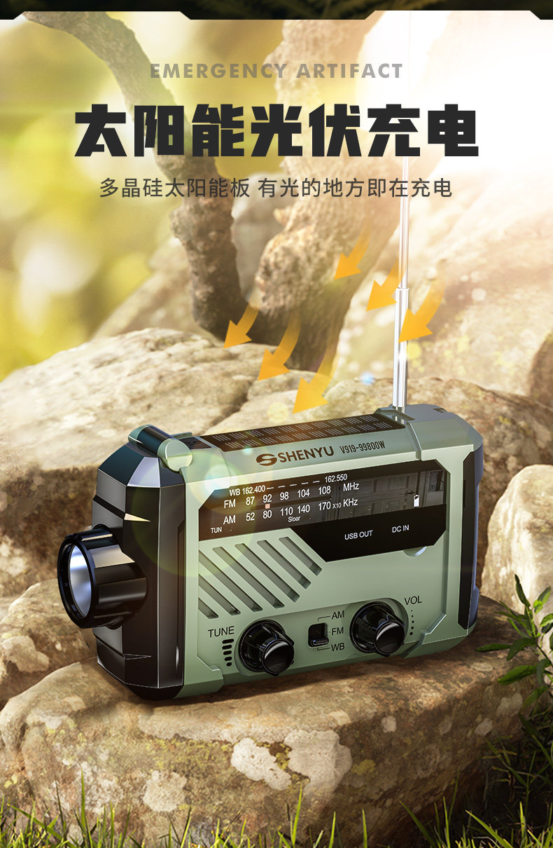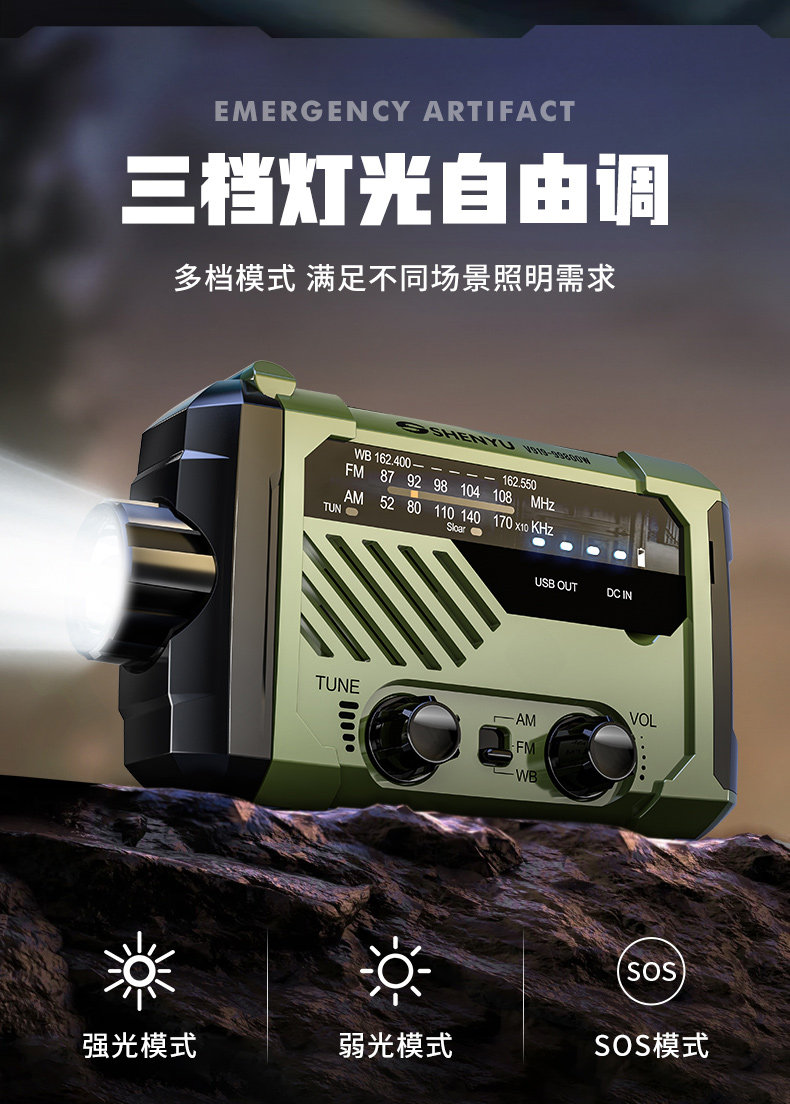 Solar-Powered Hand-Cranked Radio Emergency Flashlight with Strong Light, Ultra-Bright, Multi-Functional Rescue Outdoor Survival Equipment
